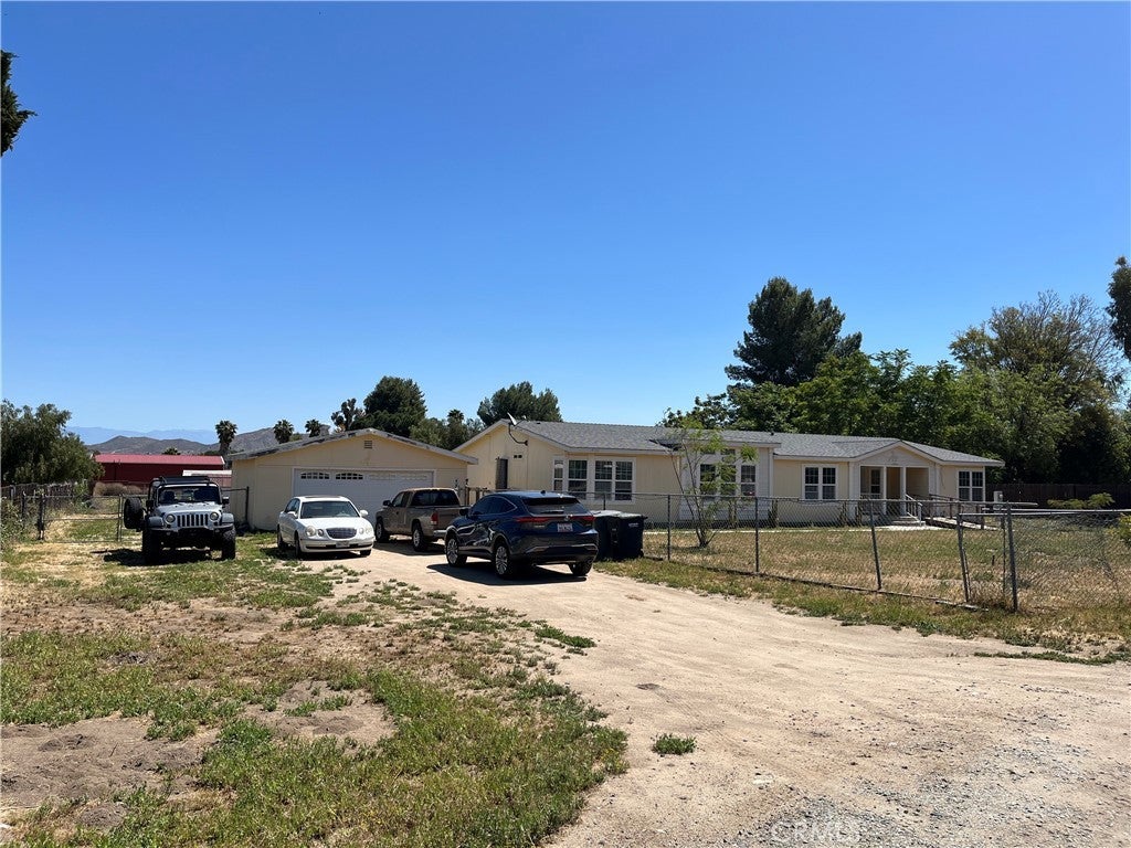 This property is very unique, offering both a large lot and a very large home. The lot is over 1.1 acres of flat, fenced in, and usable area, providing the opportunity for recreational activities, vehicle storage and the potential addition of an ADU. There is an RV hook up area with all utilities: electrical, water and sewer. This is not your typical manufactured home. This spacious home provides almost 2,900 square feet of living space, with an adjacent 2 car garage. There is plenty of area for a home business and/or multigenerational living. Built in 2005 and installed on a permanent foundation in 2006, this property qualifies for conventional financing, and is 433a certified. With 4 large bedrooms and 3 full baths, this home offers two primary bedrooms both with private en-suite bathrooms. Primary bedroom #1 has an attached room for an office or gym. The home has central heat and air and is also on public water and sewer. The entire interior of the home was just repainted. No Mello Roos or HOA. This property is zoned for equestrian uses. Access to property is from a private gravel road.
