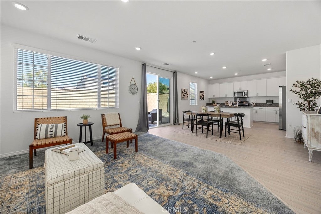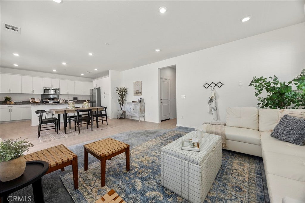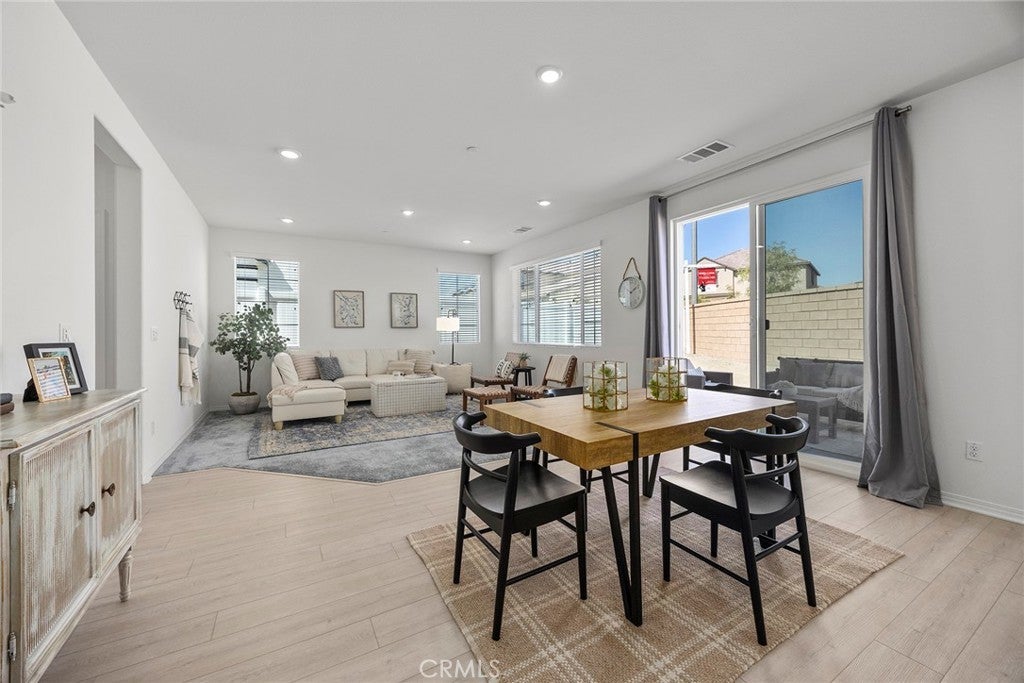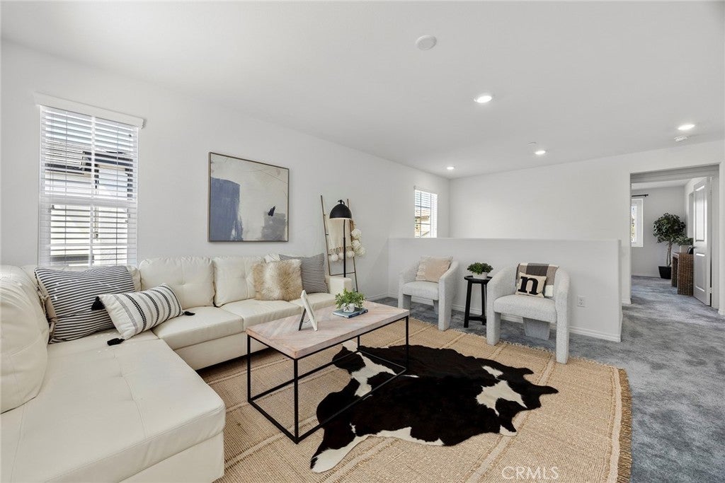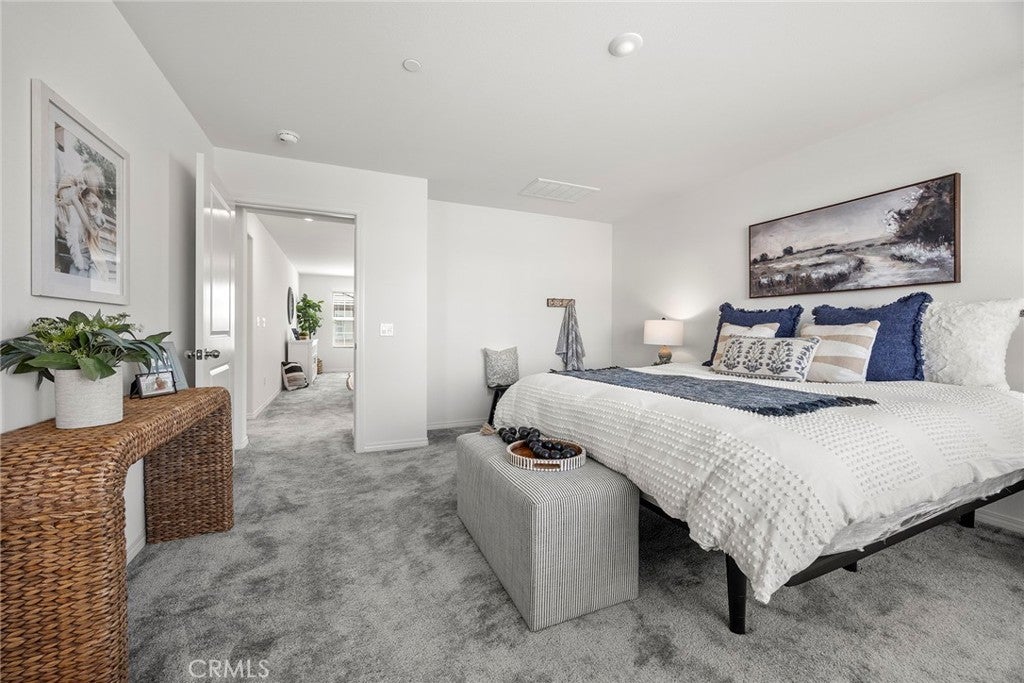Welcome to The Cove at River Ranch! Built in 2024, this energy efficient home features Residence Four - the largest floor plan available at The Cove-offering 3 bedrooms, 2.5 bathrooms, and a modern design layout spanning 1,937SF. The open concept layout is filled with natural light and includes a spacious great room and an upstairs loft ideal for a home office, playroom, or secondary living area. All bedrooms are conveniently located upstairs, along with a full bathroom featuring a shower/tub combination, perfect for family and guests. The owner's suite provides a peaceful retreat with dual sinks, a built-in vanity desk, a large walk-in shower and a generous walk-in closet. A great feature of this home is the oversized laundry room located upstairs providing plenty of space and built-in shelving for storage and organization. Interior finishes include a combination of carpet and durable vinyl flooring, offering both comfort and practicality. The kitchen is equipped with ample cabinet space, recessed lighting throughout and sleek granite countertops, perfect for cooking and entertaining. Built with sustainability in mind, the home includes a tankless water heater, leased solar panels and low-flow faucets to help conserve water. The large driveway is shared for access only with one neighboring home - shared parking is not included - and leads to a welcoming front porch, ideal for your morning coffee or relaxing in the evening. Located in a vibrant community, River Ranch offers resort style amenities including a sparkling pool, soothing spa, clubhouse and sports court, perfect for year-round recreation and relaxing. Shopping at Renaissance Marketplace is just moments away and with easy freeway access to I-210, I-215 and I-15 to make commuting simple. Don't miss the opportunity to make this home your own- schedule a showing today!