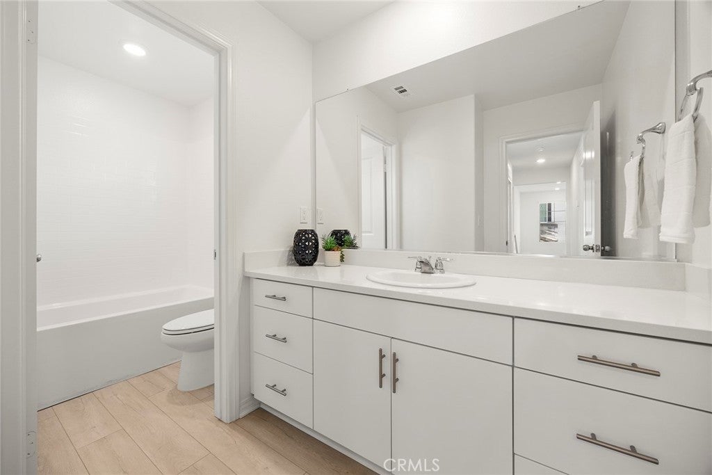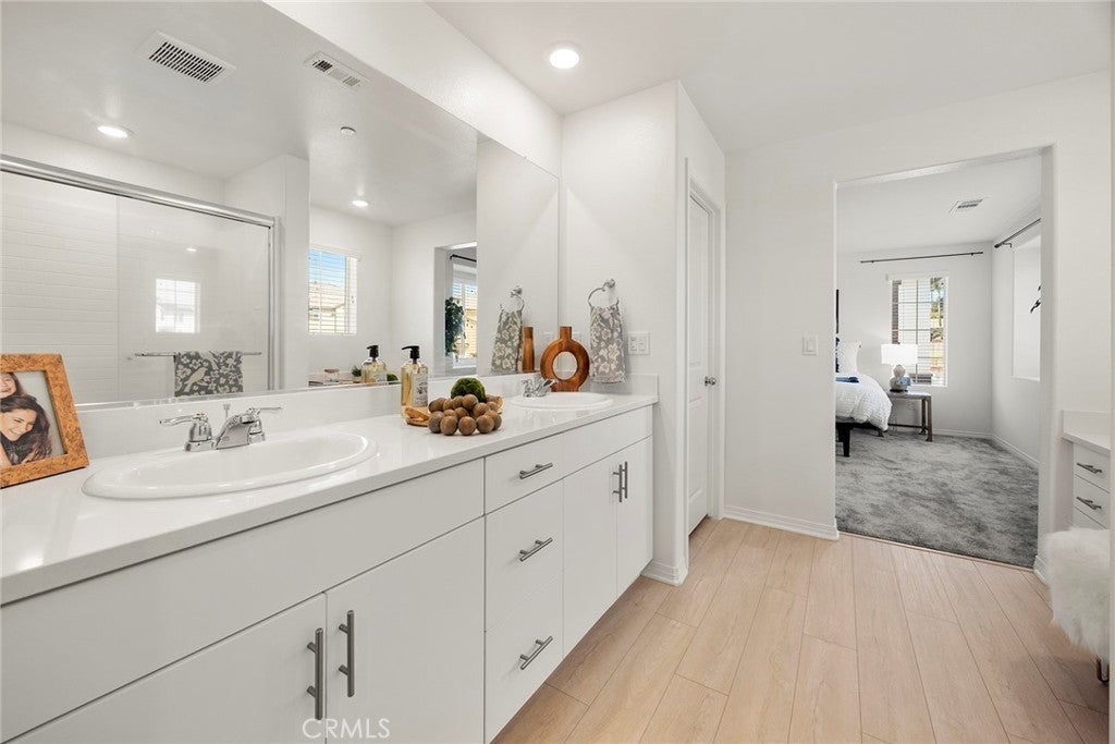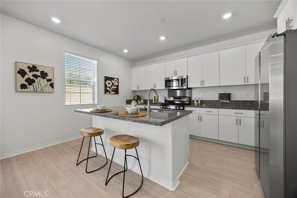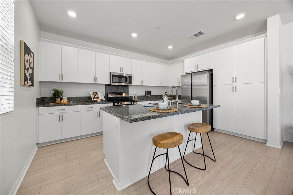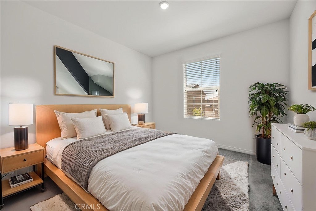 Welcome to The Cove at River Ranch! Built in 2024, this energy efficient home features Residence Four - the largest floor plan available at The Cove-offering 3 bedrooms, 2.5 bathrooms, and a modern design layout spanning 1,937SF. The open concept layout is filled with natural light and includes a spacious great room and an upstairs loft ideal for a home office, playroom, or secondary living area. All bedrooms are conveniently located upstairs, along with a full bathroom featuring a shower/tub combination, perfect for family and guests. The owner's suite provides a peaceful retreat with dual sinks, a built-in vanity desk, a large walk-in shower and a generous walk-in closet. A great feature of this home is the oversized laundry room located upstairs providing plenty of space and built-in shelving for storage and organization. Interior finishes include a combination of carpet and durable vinyl flooring, offering both comfort and practicality. The kitchen is equipped with ample cabinet space, recessed lighting throughout and sleek granite countertops, perfect for cooking and entertaining. Built with sustainability in mind, the home includes a tankless water heater, leased solar panels and low-flow faucets to help conserve water. The large driveway is shared for access only with one neighboring home - shared parking is not included - and leads to a welcoming front porch, ideal for your morning coffee or relaxing in the evening. Located in a vibrant community, River Ranch offers resort style amenities including a sparkling pool, soothing spa, clubhouse and sports court, perfect for year-round recreation and relaxing. Shopping at Renaissance Marketplace is just moments away and with easy freeway access to I-210, I-215 and I-15 to make commuting simple. Don't miss the opportunity to make this home your own- schedule a showing today!