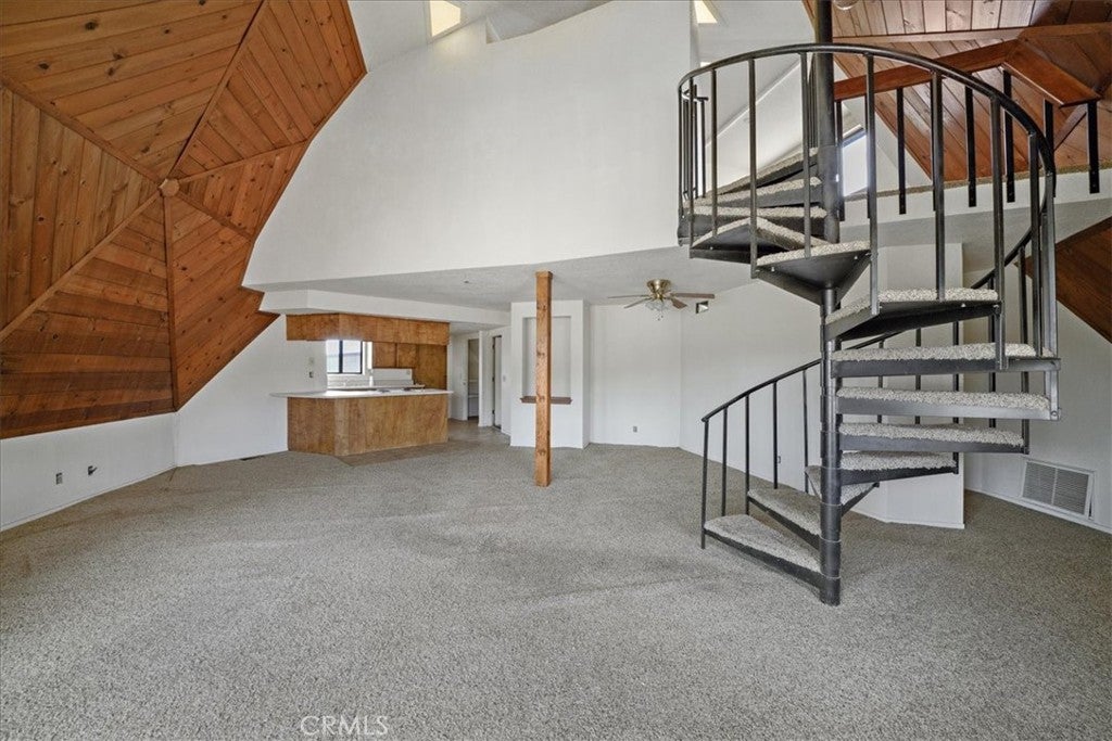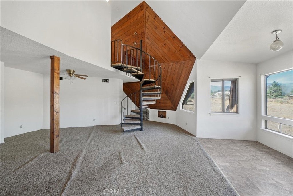 Escape to your own private retreat at this one-of-a-kind geodesic dome home, set on a flat and fully usable 2-acre lot in scenic Phelan. This unique 3-bedroom, 2-bath property offers 1,718 sq ft of character-filled living space—perfect for a full-time residence, weekend getaway, or investment opportunity with potential for an ADU or short-term rental. Step inside to soaring ceilings, dramatic wood-paneled accents, and an open-concept living area with a spiral staircase leading to a loft-style third bedroom and half bath. The main level features two additional bedrooms, a full bathroom with a tub/shower combo, and a spacious kitchen that opens to the family room, creating an inviting and functional space. Year-round comfort is ensured with central AC—an essential upgrade in the High Desert climate. The home's entry is filled with light and warmth, thanks to expansive windows that frame beautiful desert views and create a dramatic, airy welcome. Below the main floor, a sizable basement with washer/dryer hookups offers additional space for storage, creative projects, or future customization. Outside, a massive industrial-style garage/workshop with tall roll-up doors provides ideal space for RVs, boats, equipment, or hobbies. The expansive lot offers plenty of room for recreation, storage, animals, or future expansion. Conveniently located near shopping, schools, and Hwy 138, this rare High Desert gem offers beauty, privacy, and unlimited potential.