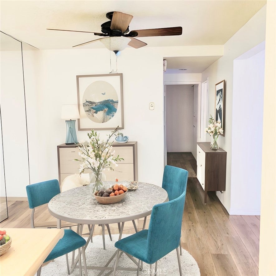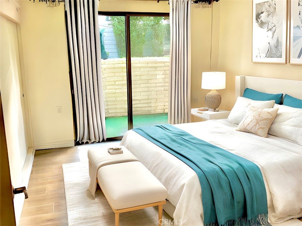 Come and Get It! Located near the creek in the Knob Hill area. You will love living in this ground-level end unit with beautiful laminate wood flooring. The Casa Contenta model has 1009 sq ft with 2 bedrooms/2 baths on a single level. NO STAIRS to your carport and laundry cabana which are as close as you can get. The primary suite has its own shower room, dressing area, and ample closet space. The open-air patio is accessible from the living room and guest bedroom. A wide wooden gate allows access from outdoors. Surrounded by attractive greenery and situated looking east onto the patio from inside. This co-op home has many original features which the HOA maintains for the buyer. The kitchen has new retrofit windows and you select a new oven and vinyl flooring. You select HOA's vinyl flooring and laminate counters for both bathrooms. Property taxes and insurance for the co-ops are paid by the HOA. Convenient to John Wayne Airport, top medical facilities, shopping, restaurants and entertainment. Amenities include (7) clubhouses, (5) pools, (2) professional golf courses and a 9 hole 3 par course, (3) fitness centers, (10) tennis courts, pickleball, an on-site restaurant and lounge, equestrian center, performing arts center, ballroom dancing, over 200 clubs including HAM Radio. A Computer Center, Saddleback College Curriculum, Art Studio, Craft Shops for Wood & Metal Making, Lapidary, Sewing, Victory Garden, RV Parking Area, and even more. Ocean side of freeway. Drive Laguna Canyon Road to the Arts and sandy beaches of Laguna:) Whether you’re looking to downsize, retire, or a more relaxed life, this property has everything for you and more. Discover why people love living in Laguna Woods Village!