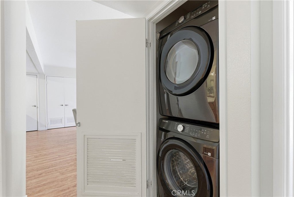 Welcome to your new beautiful ground level 2 bdrm, 2 bath end unit in Le Parc with an extra large sunny wraparound patio and yard - perfect for entertaining, dining alfresco, giving your pet space or having a garden!. Having two bedrooms with attached baths offer many options for guests, roommates or investment value. The living and dining rooms plus kitchen create an open concept living area. The living room has a cozy fireplace and direct access to the fenced patio area transitioning indoor / outdoor space. The primary bedroom also has direct access to the private patio area. An indoor laundry with newer stackable washer and dryer is conveniently located at hallway. There is solid surface flooring (wood laminate and tile) throughout. Finally, an oversized two car garage ensures covered parking and offers extra storage space. The resort style grounds include pools, spas, water features and a clubhouse. There is also a public park a short walk away with open space and play equipment. Don’t forget about the large side yard - great for garden, dog run or play area!