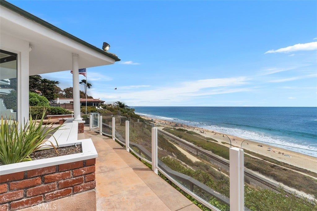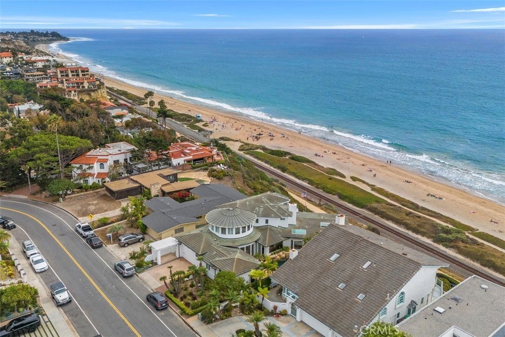 Stunning Oceanfront Estate with Panoramic Views. Exquisite sapphire-blue ocean views and sophisticated design converge in this one-of-a-kind oceanfront estate, masterfully crafted by renowned architect John Garcia, the amenities area too many to list but for one to experience. Set on a premier lot overlooking Seal Rock, Riviera Beach, and Lost Winds Beach. And captivation views of the San Clemente Pier and Dana Point Harbor, this custom residence offers the pinnacle of Southern California coastal living. Step inside to find floor to ceiling windows, a light-filled open floor plan featuring clean lines, generous living spaces, and seamless indoor-outdoor flow. The dramatic great room boasts wall-to-wall windows for amazing views of the Pacific Ocean and sliding glass doors opening to an expansive oceanfront patio with multiple levels of decks. The chef’s kitchen and adjacent sunroom/breakfast room—with wet bar—make everyday living and entertaining a breeze. The sunroom/breakfast room is accessible to the interior courtyard, providing a serene private oasis with a rock-scape pool, spa, and water elements, this room opens to another family room with fireplace and is perfect for relaxation or entertaining. The opulent primary suite occupies a prime ocean-facing position and includes a private balcony with 180-degree coastline-whitewater views, step into a spa-inspired marble jacuzzi tub with adjacent large dual head shower, also with captivating panoramic views. Two oversized secondary suites offer flexibility and privacy: one with a built-in bed, beautiful stone shower, wine fridge, and custom-built-ins. This suite is ideal for a guest retreat or executive office. The second suite also features a built-in bed, in-suite bathroom, oversized tub/shower combination and direct access to the poolside courtyard and tranquil water features. Private steps from the back patio lead directly to the sand, offering unmatched access to one of San Clemente’s most coveted family-friendly beaches—ideal for surfing, paddleboarding, swimming, or sunset strolls. All just minutes from downtown San Clemente, the pier, local dining, shopping, the train station, and the coastal amenities of Dana Point and San Juan Capistrano. NO MELLO ROOS or HOA