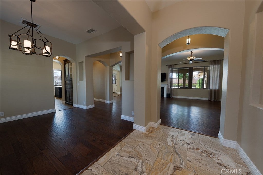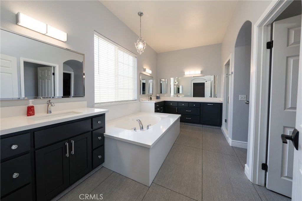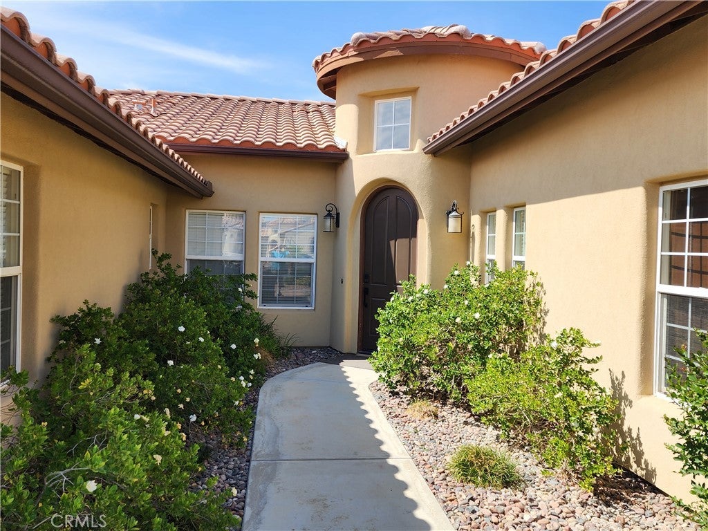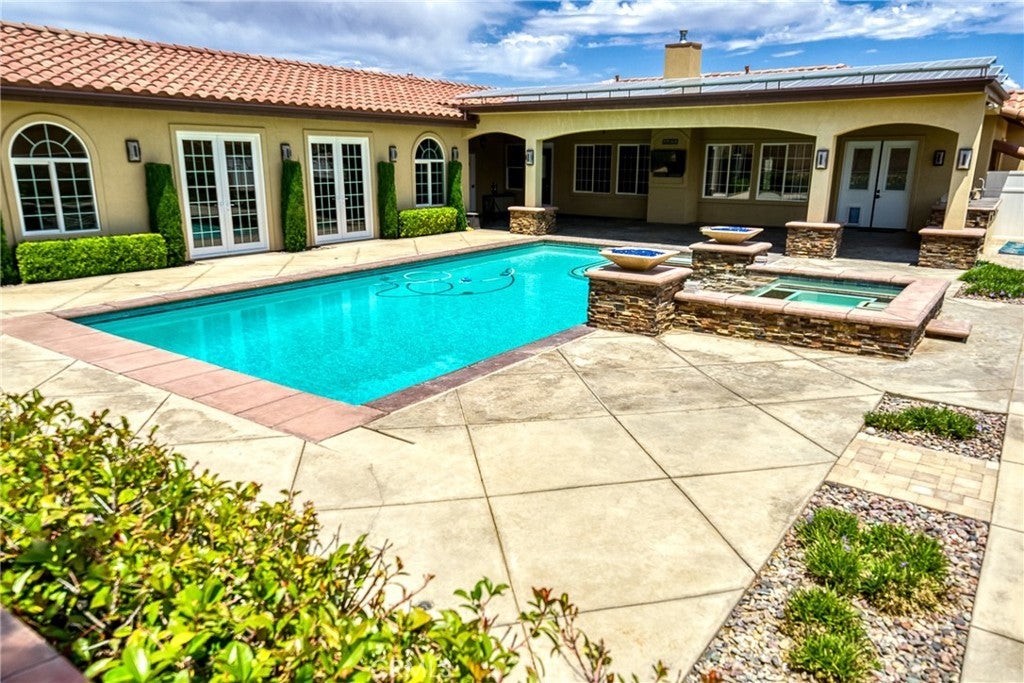 This stunning 4-bedroom, 3.5-bath Mediterranean-style home offers more than 3,600 total sq. ft. of beautifully upgraded living space on a spacious ½-acre lot. Designed for comfort and entertaining, enjoy an open-concept layout with 10-ft ceilings and an updated kitchen featuring sleek quartz and quartzite countertops, stainless steel appliances, and upgraded cabinetry with convenient slide-out drawers and quiet close doors. The bathrooms have also been modernized with quartz countertops and stylish tiled showers. Additional premium finishes include engineered hardwood, travertine, and ceramic tile flooring. Step outside to your private resort: a 40x20 saltwater pool with an automatic cover, hot tub, fire pit, poolside bathroom with walk-in shower, and a large, covered patio with a buil-in BBQ and sink. The professionally landscaped yards feature a pet-friendly grass area, outdoor storage, and a fully finished man cave/recreation room with A/C and inviting French doors. Additional highlights include a spacious 3-car garage, dedicated space for RV or boat parking, and a large walk-in pantry for optimal storage. Stay comfortable year-round with two A/C units and two swamp coolers, offering flexible climate control. Owner-owned solar means lower energy bills and no leasing contracts—just smart, sustainable living. Every inch of this property is designed with purpose, luxury, and lifestyle in mind. No HOA. Neighborhood CC&Rs.