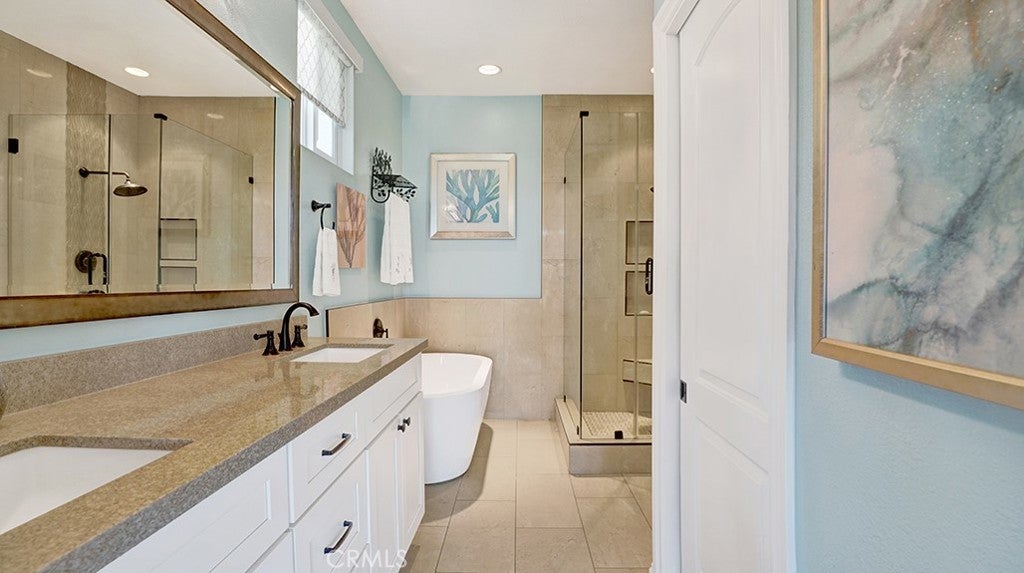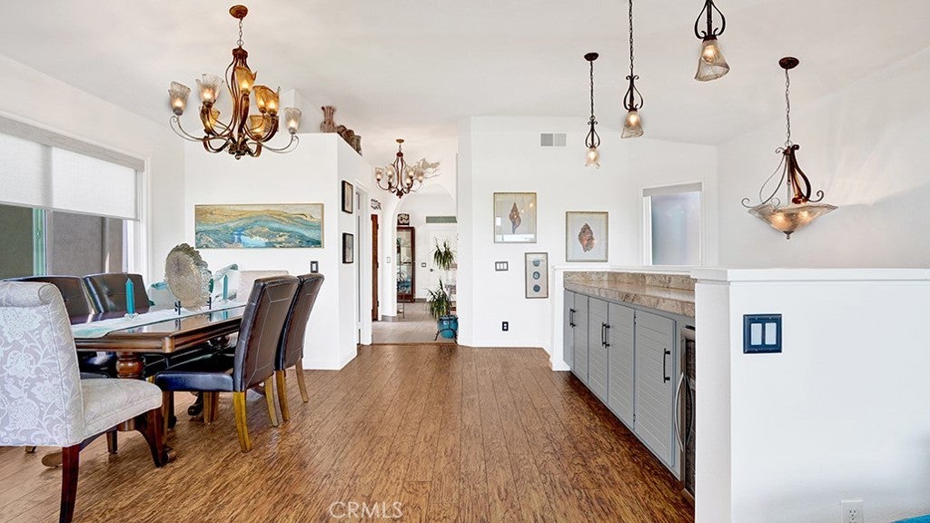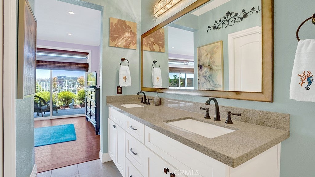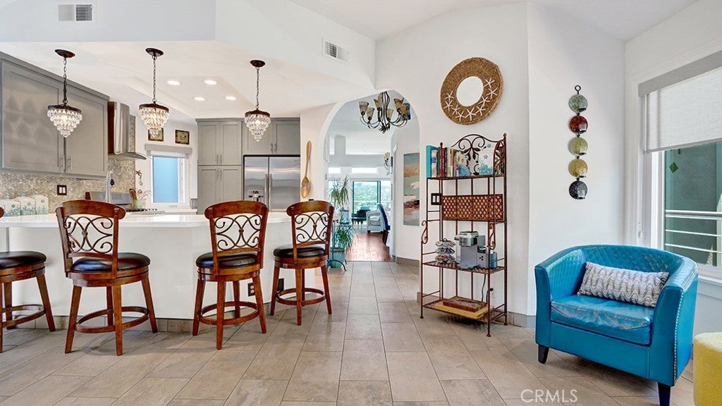 This sophisticated coastal home offers a perfect blend of style, comfort, and location—making it an ideal full-time residence or a luxurious second home. Situated just minutes from Dana Point Harbor, Lantern Village, and favorite coastal shops and restaurants, you'll love the convenience of owning a home in the gated-community of Waterford Pointe. This residence is perfect for entertaining with the entire entry floor dedicated to dining and living spaces - which feature the impressive 180-degree panoramic scenic city and mountain views. Enjoy the view with ease with remote/automated blinds. This home shines with thoughtful updates and elevated finishes throughout. New dual-pane Pella windows (2021) with a transferable warranty, plus fresh interior paint, and updated flooring create a fresh and inviting atmosphere. Elegant lighting includes chandeliers, pendants, and recessed fixtures—adds warmth and sophistication in every room. The remodeled kitchen (2014) includes a range which allowed for the addition of a custom pantry and microwave closet, not typical for this model. Kitchen also features quartz countertops, soft-close cabinetry, and a basketweave mosaic backsplash. Bathrooms have also been tastefully remodeled, with the primary suite offering a spa-like retreat featuring a freestanding soaking tub, tiled shower, and a dual vanity topped with quartz. Additional upgrades include copper repipe (2022), addition of A/C (2022), and a new furnace (2020). With HOA dues at just $280/month, this curated retreat offers low-maintenance luxury in one of Dana Point’s most desirable coastal communities.