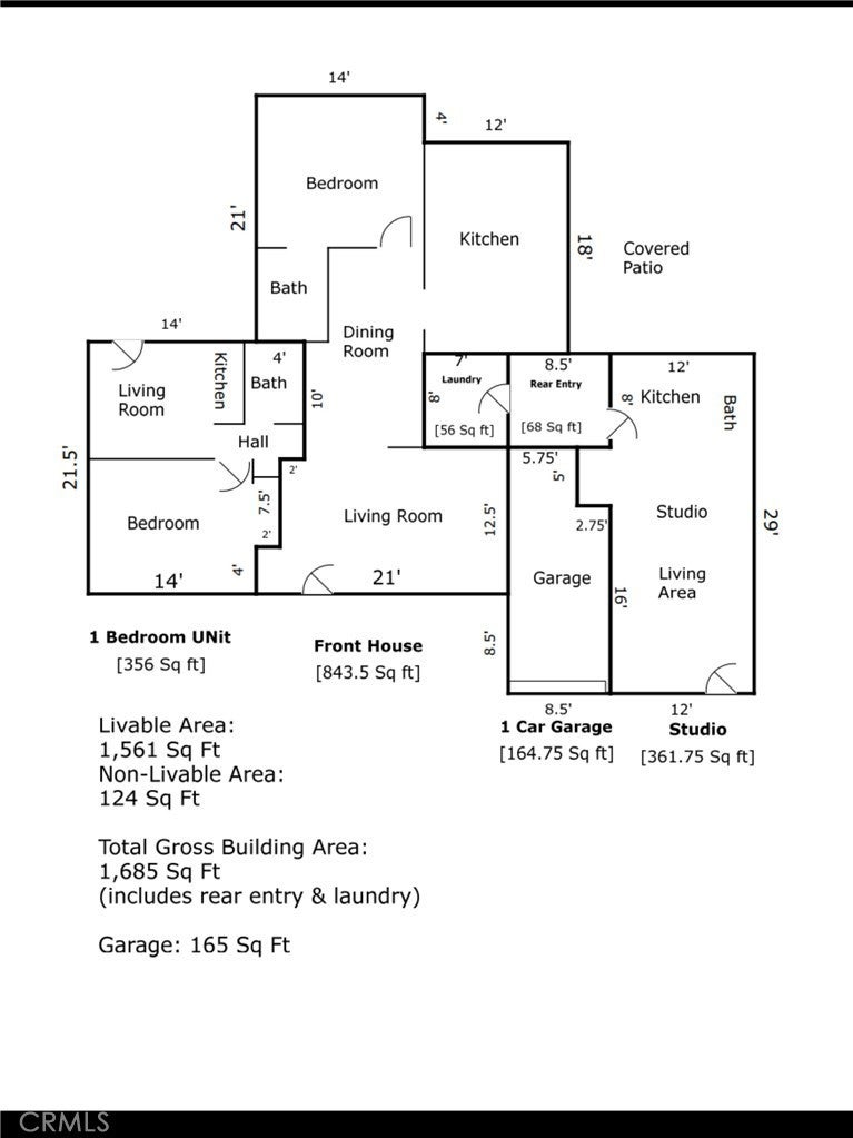 PRICE REDUCED to $714,900! Owner will consider any reasonable offer! The property is offers a great opportunity for families wanting to live together or for investors looking to build ADUs to maximize their investment! This property is classified as a Single-Family Residence, but it has a permitted commercial unit that is currently used as a residential studio apartment. The main house has been split into 2 units, but can easily be reconverted back to a 3-bedroom home if desired. The property has a gross building area of 1,657 square feet, with a net rentable area of 1,561 square feet. The subject site is 6,359 sq ft. The house has 1 bedroom and 1 bathroom, a large remodeled kitchen, a remodeled bathroom, and newer carpets and flooring. The house is presently rented for $2,178 per month, which includes a single-car garage. Attached to the main house is a 1 bedroom and 1 bath unit with a living room and kitchenette. The unit has a separate entrance at the back and currently rents for $1,617 per month. There is a separate laundry room between the front house and the studio unit. The studio unit was repainted in December 2023 and includes laminate hardwood flooring and a remodeled kitchenette with space for a full-sized refrigerator and stove. The studio rents for $1,687 per month. The total rent is $5,482 per month. The property has a front porch, a back patio, concrete block walls at the back, and a driveway for three cars. The plumbing, including pipes and the water heater, was replaced about 5 years ago. The electrical panel and some wiring have been replaced. According to the Planning Department, the property is eligible for a Junior Accessory Dwelling Unit (JADA) and a detached ADU of up to 1,000 square feet. This will enable the transformation of the subject's garage and studio unit into a legally permitted 1 Bedroom, 1 Bath Junior Accessory Dwelling Unit (JADU). An additional ADU up to 1,000 square feet can be constructed in the backyard. We have an email from the city that confirms that they will approve the JADU and ADU on the property.