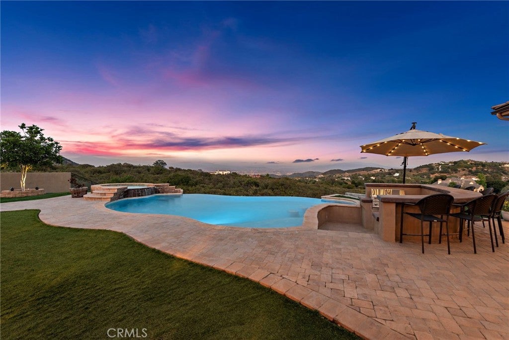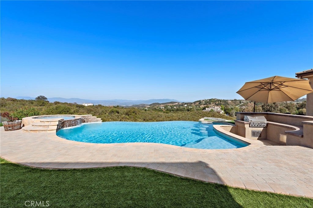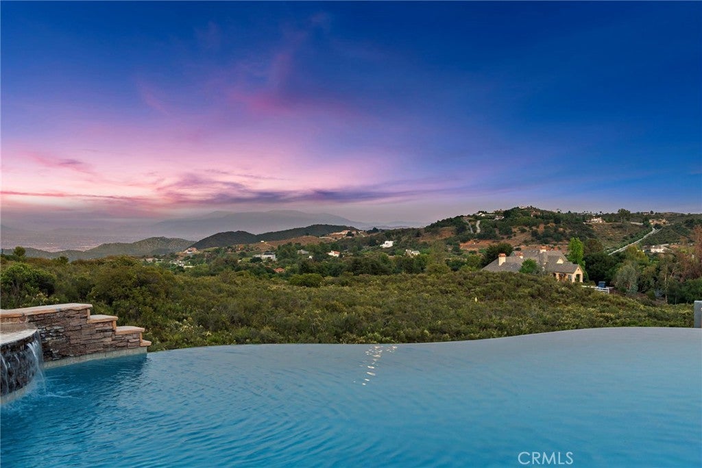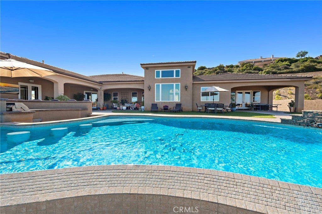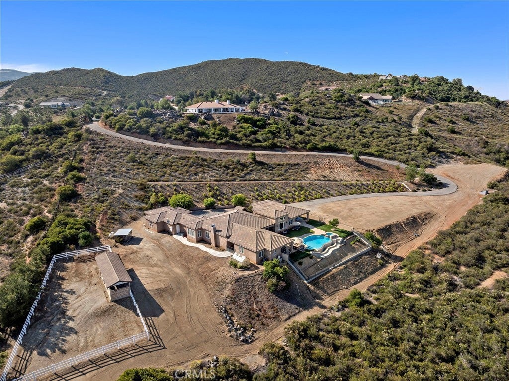 Welcome to 38150 Vía Huerta, a private, resort-style retreat nestled in the sought-after La Cresta community of Murrieta. Situated on 5 pristine acres with panoramic views of the mountains and city lights, this exceptional horse property offers the perfect blend of luxury, comfort, and functionality. From the moment you arrive, a gated entry and long, scenic driveway set the tone for the peaceful elegance that awaits. Inside, the home is filled with natural light and soaring ceilings that create a spacious, airy feel. Large picture windows frame breathtaking views and invite the outdoors in, while thoughtfully designed living spaces provide the ideal setting for both relaxation and entertaining. Inside, the oversized primary suite is a sanctuary of its own, complete with French doors opening directly to the pool and spa, and a spa-like bathroom with travertine finishes and dual vanities. A dedicated office and spacious guest bedrooms make this home as practical as it is beautiful. Step outside and you’ll find a true backyard oasis—an infinity-edge pool with waterfall features, a private spa, and a built-in BBQ area that’s perfect for gathering with family and friends. The covered patio and porch offer year-round comfort and are ideal for enjoying golden hour views over the valley. Equestrians will appreciate the 4-stall mare motel, corral, and miles of nearby horse trails. The property also includes a chicken coop, greenhouse, and an additional pad ready for fruit trees, a barn, or even a guest house. With 7 garage spaces, there’s no shortage of room for toys, tools, or a car collection. Whether you’re an entertainer, a hobby farmer, a horse lover, or simply looking for space to breathe, this one-of-a-kind estate offers it all.
