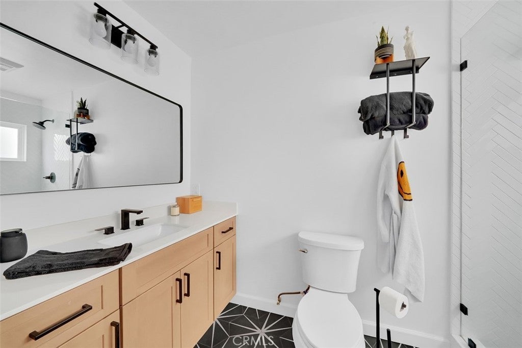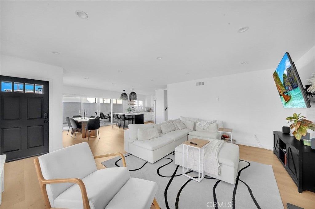 This recently remodeled single-family home is designed to meet the highest standards. Situated on a unique corner lot of approximately 2900 sq ft with new turf, it offers a serene setting in a quiet, family-friendly neighborhood. Begin your mornings with coffee on the porch,overlooking the picturesque bay view. The main living area features an open-concept design with a cozy fireplace, exuding a comfortable modern farmhouse vibe. The gourmet kitchen is a chef's dream, equipped with upscale Cafe' matte white appliances, custom design elements, a wine fridge, new windows and sliders,quartzite countertops,bespoke cabinetry,and waterproof Mohawk RevWood flooring throughout. The spacious dining area provides access to a private patio with peek-a-boo views of the bay. The first floor also includes a full bath and a separate laundry area for added convenience. Upstairs, you'll find three bedrooms, with the master suite offering an expansive balcony that showcases views of Marine Stadium and stunning sunsets. Two brand-new bathrooms upstairs exhibit designer elegance, catering to both the master suite and family needs. The property is equipped with brand-new air conditioning, updated electrical systems, motorized shades and more. The two-car garage includes a driveway for additional parking and features a 240-volt charging station for electric vehicles. Located in a peaceful neighborhood, this home offers a serene environment ideal for families. Enjoy leisurely strolls or bike rides around the bay, and take advantage of the proximity to shops, parks, and restaurants in Belmont Shore. Experience the perfect blend of modern farmhouse and contemporary amenities in thes beautifully renovated home.