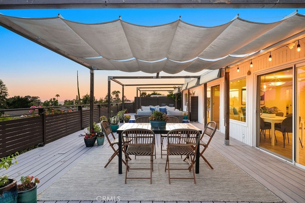 Welcome to the quintessential coastal oasis in the heart of San Clemente, where this rare single-level home offers an unparalleled living experience with breathtaking ocean and sunset views. Nestled on a serene single-loaded street, this residence promises both privacy and tranquility, featuring a gated courtyard adorned with lush landscaping and a charming pergola, perfect for dining al fresco as the coastal breeze whispers through. Spanning approximately 1,750 square feet, this meticulously remodeled home boasts three spacious bedrooms and two luxurious baths, all thoughtfully designed to enhance comfort and style. The interior exudes elegance with premium finishes, highlighted by ceramic tile flooring that flows seamlessly throughout the space. The kitchen, a true chef's delight, is equipped with state-of-the-art stainless steel appliances and illuminated by contemporary pendant lighting. A large central island becomes the heart of the home, ideal for family gatherings, offering abundant storage and a welcoming ambiance for memorable moments. The open-concept kitchen and family room are perfectly positioned to capture expansive ocean vistas and mesmerizing sunsets, creating an inviting space for relaxation and entertainment. The two additional bedrooms are generously sized, filled with natural light, providing a bright and airy retreat. Step into the backyard, a coastal haven designed for entertaining, where you can bask in the beauty of San Clemente's stunning coastline. The outdoor area features an impressive 1,200 square foot Trex deck, complemented by artistic wood beams that support retractable sun shades, blending function and design to create a versatile space. Whether you're hosting a lively gathering or enjoying a quiet evening under the stars, this backyard is a true delight. Perfectly situated, this home is just moments away from San Clemente's iconic pier, world-class beaches, charming boutiques, and delightful wine bars. Enjoy the proximity to Dana Point Harbor and a variety of shopping options, making it an ideal location for those seeking a vibrant coastal lifestyle. Experience the epitome of Southern California living in this exceptional property, where every detail has been crafted to offer a harmonious blend of luxury, comfort, and natural beauty. Welcome home to your coastal paradise.