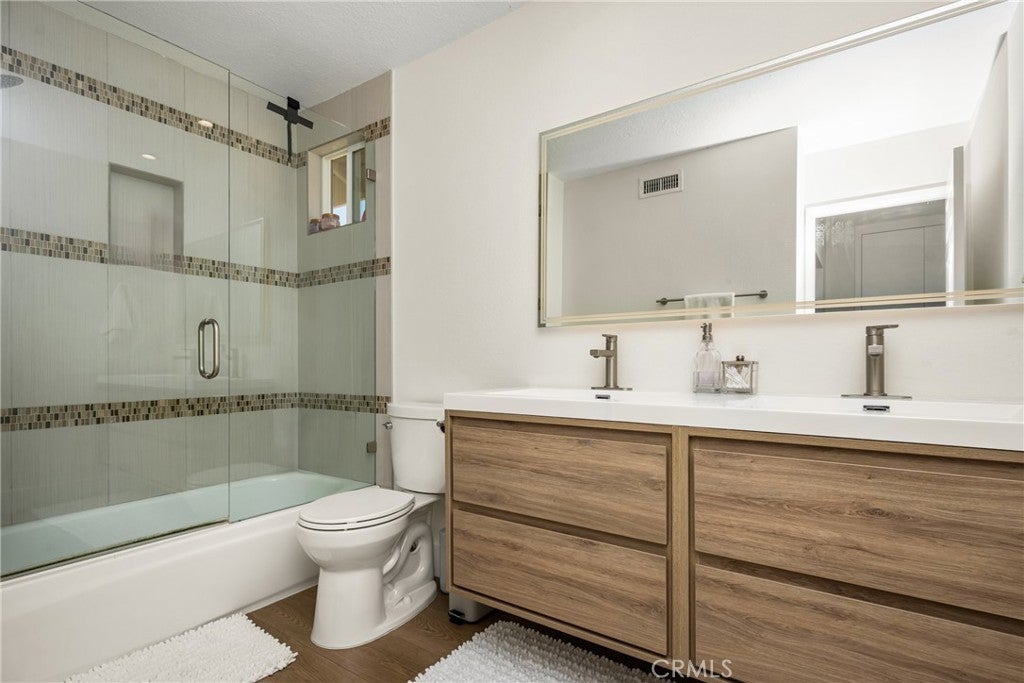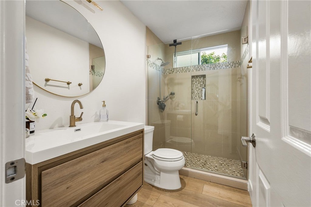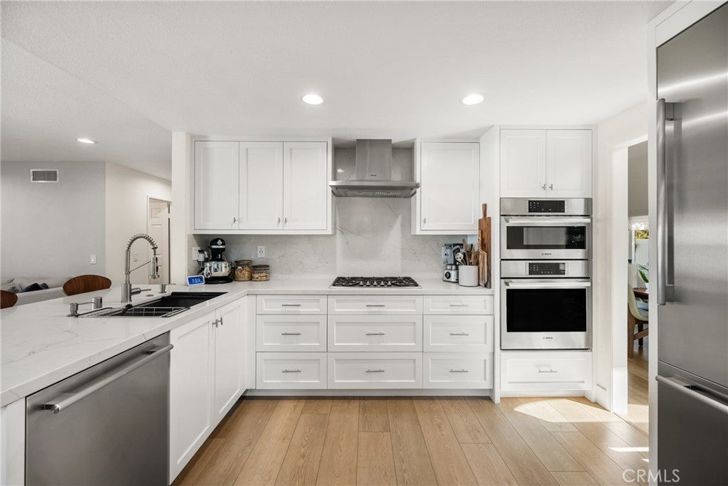 Welcome to this beautiful upgraded 4 bedrooms elegant home nestled in the desirable Sorrento neighborhood of Westpark, Irvine. Located on a Cul-de-sac, offering indoor and outdoor of beauty and relaxation. Step through the elegant front door into a grand formal entry with soaring cathedral ceilings. The open concept space filled with natural light from premium hunter Douglas window treatments. The fully remodeled chef's kitchen features Thermador 5 burner built in gas cooktop, Bosh Oven, Thermador Fridge, dishwasher and vent! The fridge is custom built!! Enjoy cozy evenings by the fireplace, or in the back yard with its built in BBQ. Main floor bedroom sits adjacent to a renovated bathroom perfect for guests or multi generational living. Double doors lead to the upstairs expansive primary suite with a tranquil sitting area. The luxurious an-suite bathroom offers dual sinks, separate enclosed shower, two walk in closets. Two additional upstairs bedrooms share a stylish updated full bathroom.