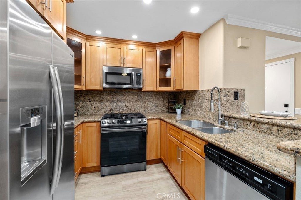Welcome to this convenient community with resort-style amenities in the city of Laguna Niguel. Discover comfortable living in this cozy 2 bed/1 bath single-level condo nestled in the sought after Casa La Paz community. This gated community offers the perfect blend of privacy, convenience, and a recreational lifestyle. Step inside to find plenty of natural light and an open-concept layout where living areas flow seamlessly. The updated kitchen features maple cabinetry, granite countertops, and stainless steel appliances. Updated crown molding and modern baseboards add beautiful touches throughout. This property includes one carport with additional storage and one parking space. There is plenty of guest parking as well. In-unit washer and dryer, well appointed bedroom closets with updated built-ins. Residents enjoy exclusive access to amenities including a sparkling pool, spa, tennis courts, and a dog park. This gated community setting provides both security and comfort, and is steps from shopping, dining and entertainment. Experience California coastal living and the Casa La Paz lifestyle for yourself.