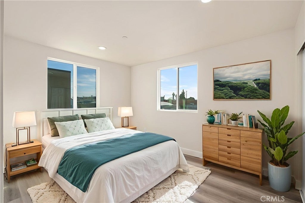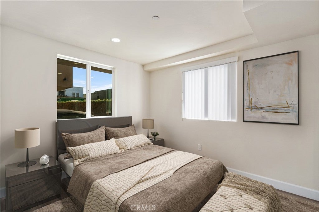 Move-in special, 1-month free! Experience modern living at its best in this beautifully designed 3-story townhouse featuring 5 bedrooms and 5 bathrooms. With high-end finishes, an open floor plan, and abundant natural light from oversized windows, this home offers the perfect combination of comfort and style. The first floor includes two spacious bedrooms and two bathrooms. On the second floor, you'll find a bright and expansive kitchen, dining, and living area with a third bedroom and full bath—ideal for both entertaining and everyday living. The upper level offers additional bedrooms, two more bathrooms, a private balcony, and in-unit laundry hookups for maximum convenience. Premium details include laminate wood flooring, custom soft-close cabinetry, quartz countertops, a designer tile backsplash, stainless steel energy-efficient appliances, and custom window shades. The property also offers two assigned parking spaces, a remote-controlled gated entry, a fire sprinkler system, and low-maintenance, drought-tolerant landscaping. Designed for both efficiency and comfort, this home is perfect for roommates, families, or professionals looking for modern upgrades and space to spread out. 1-year minimum lease. All utilities are separately metered and tenant-paid. Renters' insurance required. The property is fully gated and virtually staged (unfurnished). The contract rent is $4,350, but with one month free your net effective rent comes out to just $3,988 when prorated over 12 months. You can also choose to apply the free month upfront toward your first month’s rent.