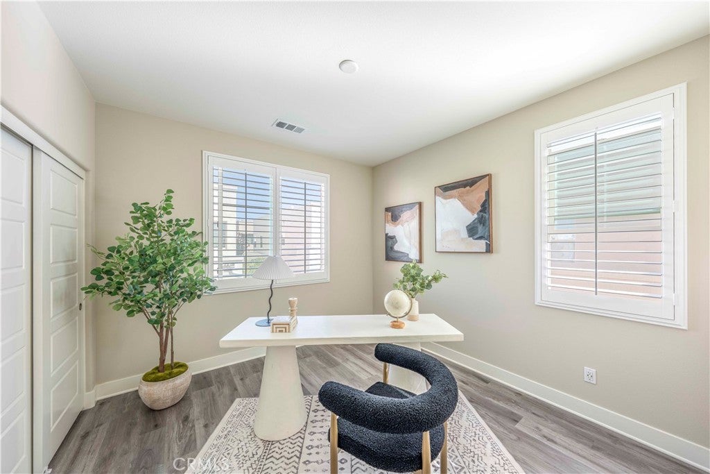 Location, location, LOCATION!! This beautifully maintained Pavilion Park single family detached condo has no shared walls, two car garage and its own private side yard. It's been completely refreshed with fresh paint throughout and updated flooring. Ideally situated in the heart of Great Park, right by the best of all amenities in town, The Pools Park. This home is just a short walk to upcoming retails, Canopy Park (opening 2026), Zoned for award-winning Irvine Unified School District (IUSD) schools, it offers both comfort and convenience. Inside, the home features a spacious open floor plan with a chef’s kitchen complete with an upgraded backsplash and stylish herringbone tile flooring throughout the first level designed for easy entertaining. Upstairs, the primary suite offers a relaxing retreat with a walk-in closet, accompanied by two generously sized secondary bedrooms, a full bathroom, and a flexible den space. Additional upgrades include plantation shutters throughout, adding a refined touch.
