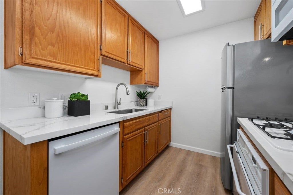 MOTIVATED SELLER – MUST SEE! Experience top-floor living in the heart of Sherman Oaks Village. This beautifully updated, light-filled one-bedroom condo is move-in ready and located in the highly sought-after Country Club Condominiums—just one block from Ventura Blvd. ENJOY walkable access to acclaimed restaurants like Anajak Thai Cuisine, Daisy, and many more, along with the perfect blend of comfort and convenience in one of Sherman Oaks’ most desirable neighborhoods. THE open-concept kitchen and bar feature new QUARTZ countertops and appliances, seamlessly connecting to a bright, north-facing living room. A large sliding glass door opens to a private balcony with neighborhood and distant mountain views. RECENT UPGRADES INCLUDE: Waterproof luxury vinyl flooring in the kitchen, bathroom, and laundry area. New carpet, fresh paint, and updated baseboards in the living room and bedroom. A spacious bedroom with ample storage and a walk-in closet. Renovated bathroom with new quartz vanity, modern sink, updated faucets, and stylish lighting. In-unit washer/dryer hookups are discreetly located in the hallway closet. ADDITIONAL HIGHTLIGHTS: Premium assigned parking in a gated subterranean garage. Ample guest parking within the security gate and abundant street parking. Elevator access and on-site management. Community amenities: pool, clubhouse, billiards, barbecue area, and fully equipped gym. HOA FEES INCLUDE water, trash, insurance, antenna, Spectrum Internet, and two XUMO Stream Boxes. This is the only multifamily residence on the street—offering rare privacy and ample parking for guests. Don’t miss your chance to own in one of Sherman Oaks’ most vibrant and walkable locations.