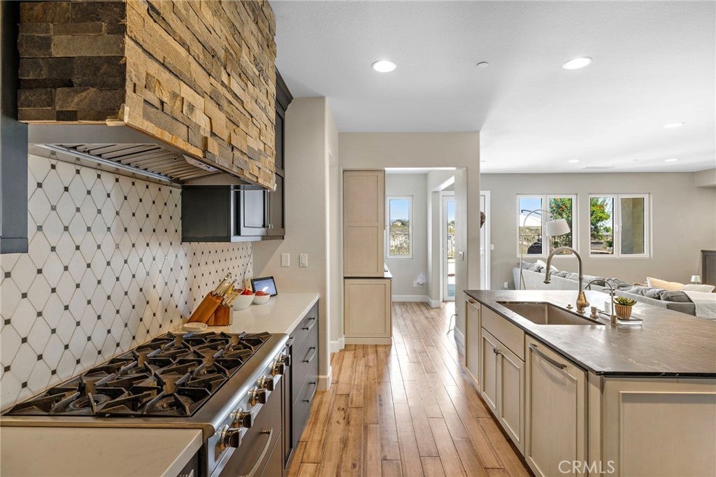 Welcome to 18 Via Belleza, where luxury, comfort, and California coastal living unite. Situated in the heart of Talega, one of San Clemente’s most sought-after communities, this stunning 5-bedroom, 3-bathroom home offers refined interiors, thoughtful upgrades, and sweeping canyon views, all just moments from the world-renowned beaches and vibrant charm of downtown San Clemente. Inside, the home impresses with a completely reimagined chef’s kitchen. Every detail has been considered, from the deep 42” storage drawers to the lineup of professional-grade appliances: 35” Capital range with hood, a spacious 48” Viking refrigerator, Bosch dishwasher, and JennAir Noir double ovens. A timeless marble backsplash pairs beautifully with a mix of quartz and soapstone counters. Beyond the surface beauty, the kitchen is loaded with clever, hidden features that make everyday cooking a joy such as discreet electrical outlets and a custom pull-out rack for pots and pans. A spacious walk-in pantry completes the space. The adjoining breakfast bar area continues the thoughtful design with appliance garages to keep your coffee and kitchen essentials tucked away. The kitchen flows into the welcoming family room with a cozy gas fireplace that make the perfect space for gatherings or relaxed evenings at home. The downstairs also features a spacious formal dining/living room, a guest bedroom with a gorgeous full bath and an expanded front room unique to this home. Upstairs, the luxurious primary suite is a sanctuary unto itself, complete with a spa-inspired bathroom featuring dual vanities, a freestanding jetted tub, modern lighting and two walk-in closets. A Dutch door opens to a private balcony overlooking peaceful canyon vistas. Three additional bedrooms and a full laundry room with a utility sink complete the upper level. As you step into the expansive backyard you’ll experience outdoor living at its finest. Whether you're hosting a summer barbecue or enjoying your morning coffee, this space was designed to make every moment feel special. Included with the home are professionally designed architectural plans for a luxury pool and outdoor entertaining area — saving you time and bringing your dream yard one step closer to reality. Additional highlights include: owned solar panels, tankless water heater, whole-house water softener, and 3-car tandem garage. Located near hiking and biking trails, Talega’s resort-style pools and parks, and top-rated Vista Del Mar schools.