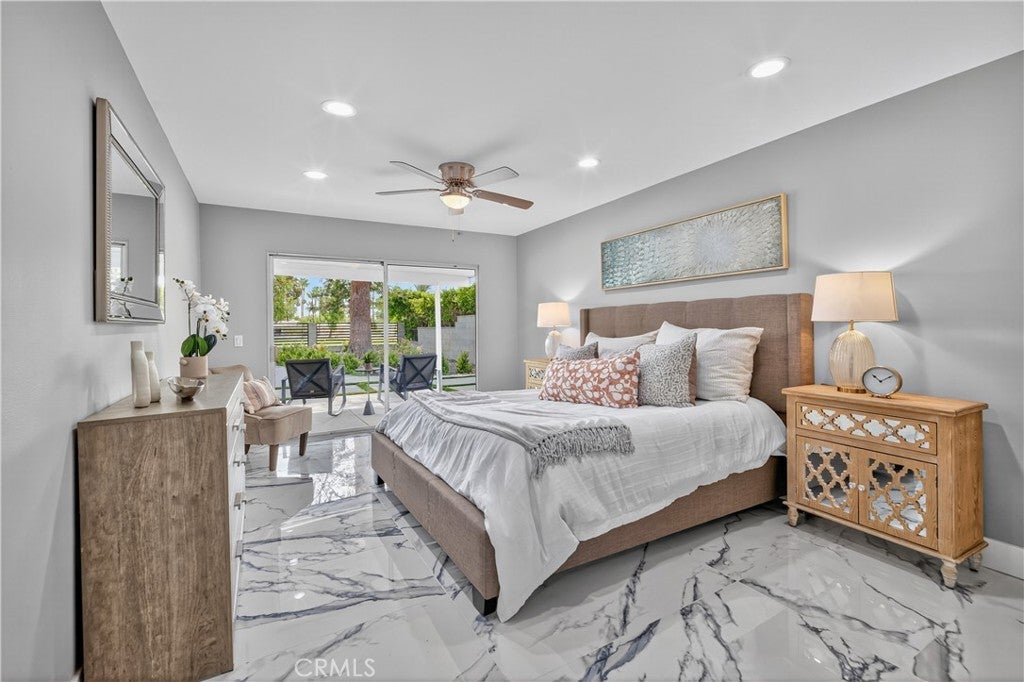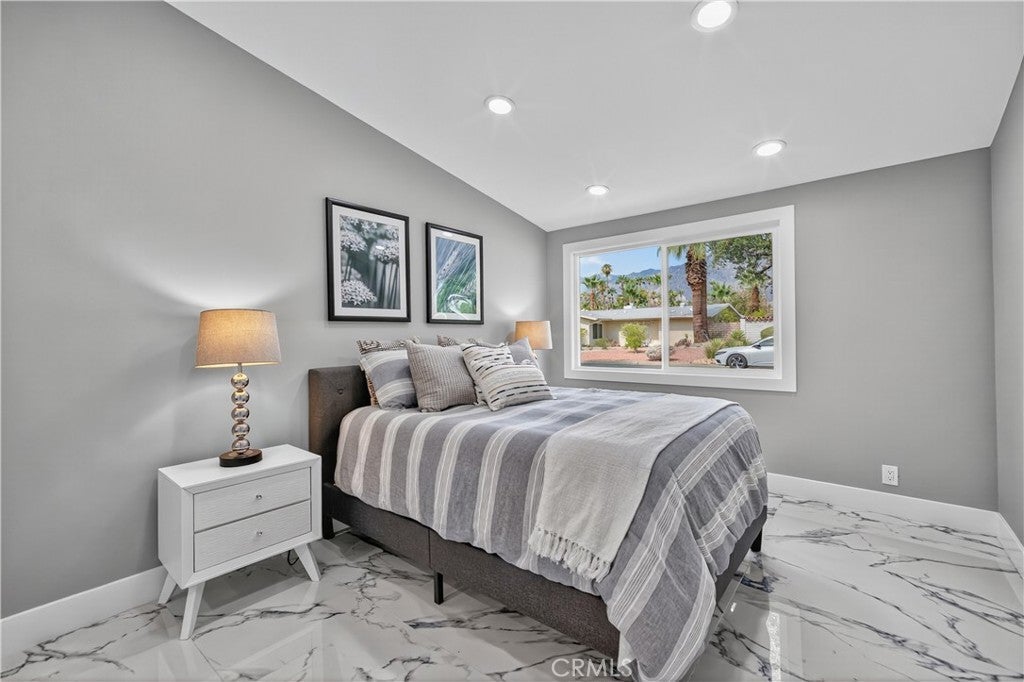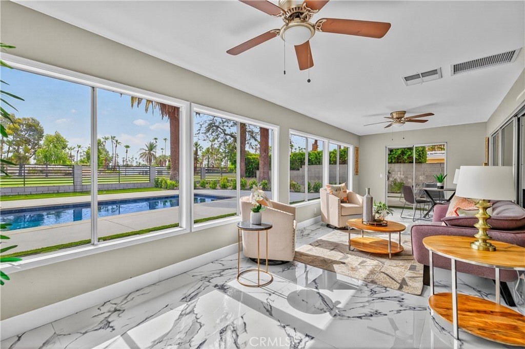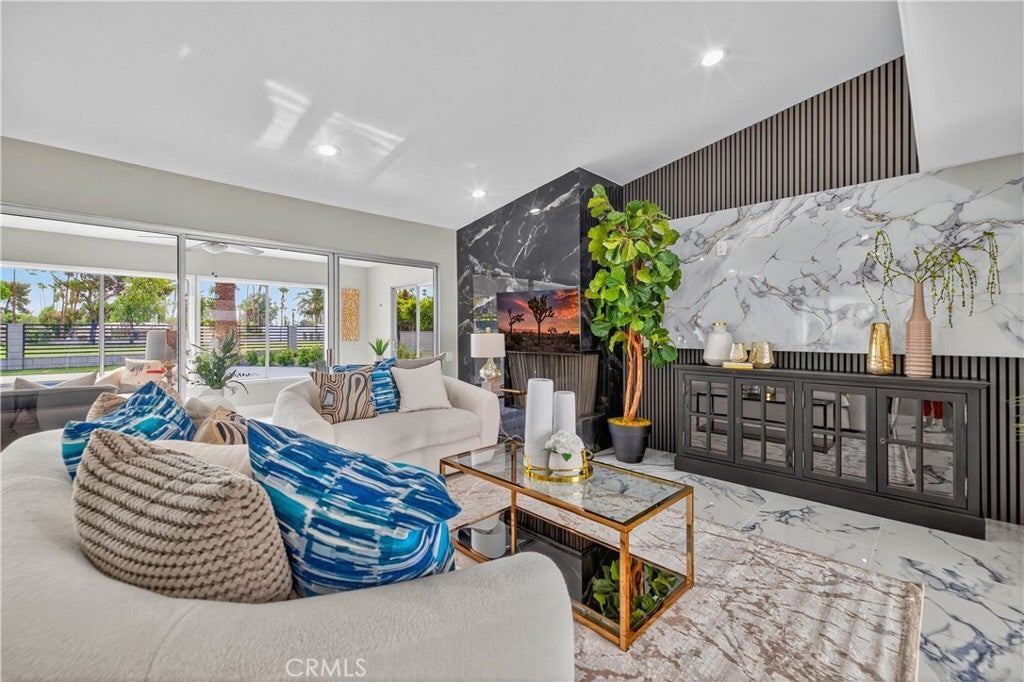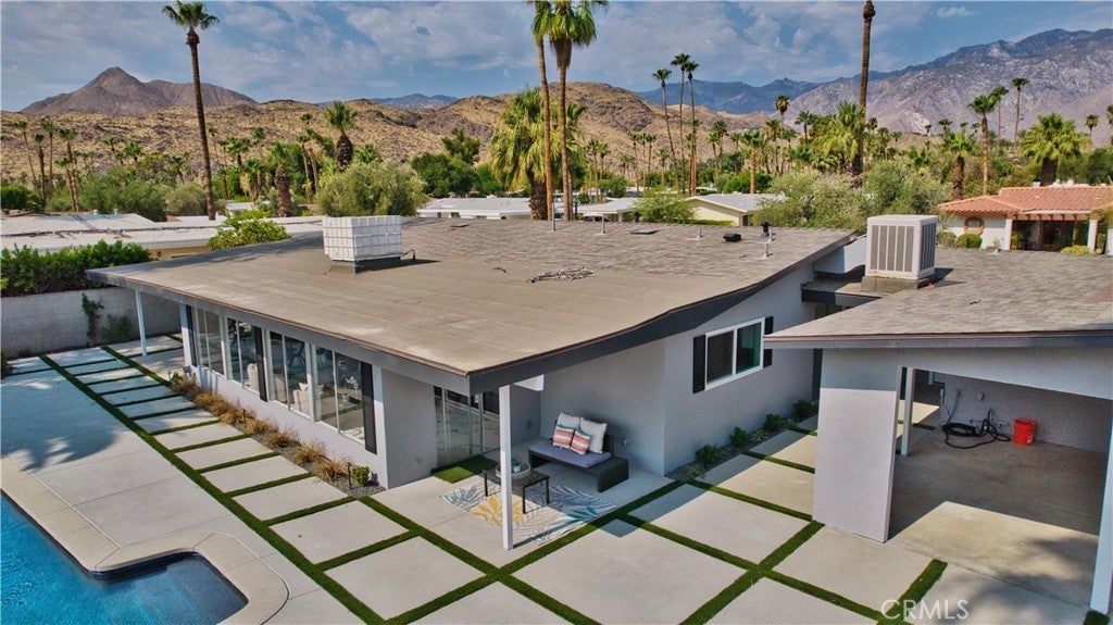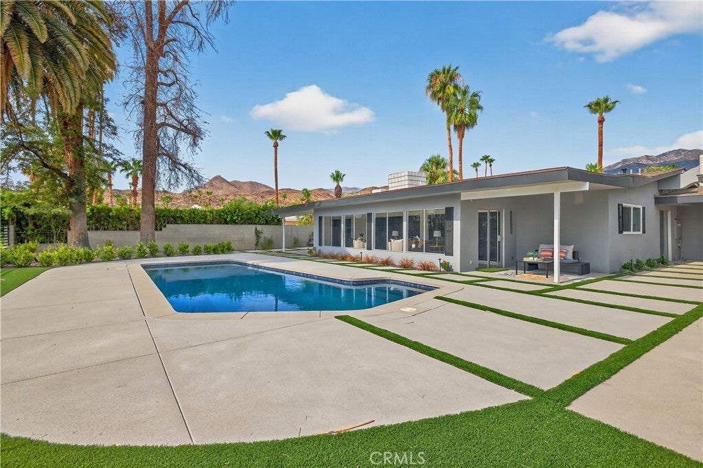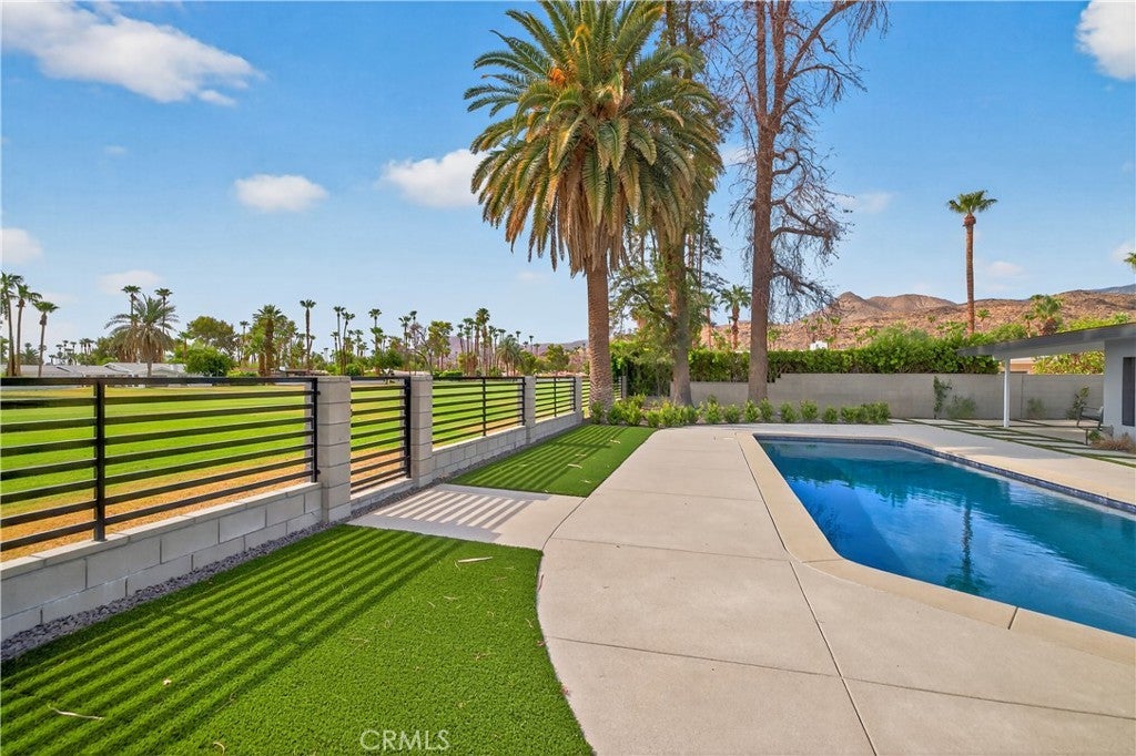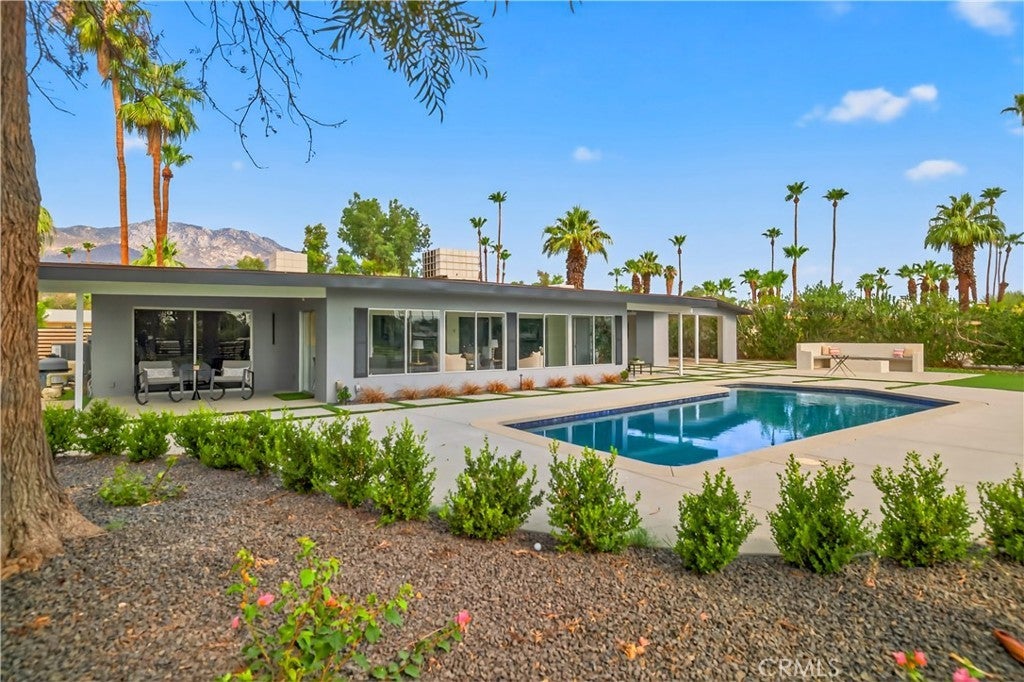Beautifully Remodeled Mid-Century Home on Tahquitz Creek Golf Course! Welcome to this stunning mid-century modern home located on the iconic Tahquitz Creek Golf Course, a premier public golf resort in Palm Springs designed by the renowned Ted Robinson. Originally designed by Alexander & Wexler, this residence seamlessly blends timeless architecture with contemporary updates. Enjoy unobstructed golf course and breathtaking mountain views from this light-filled home, perfectly situated to take full advantage of its scenic surroundings. Featuring 3 spacious bedrooms and 4 fully remodeled bathrooms, the layout offers a highly desirable split floor plan—with the primary suite privately located on one side, complete with a large walk-in closet, and two guest bedrooms on the other. The newly remodeled kitchen is a showstopper—featuring brand-new appliances, sleek finishes, and a spacious island that invites you to gather around. Vaulted ceilings and an open, airy design welcome you as you enter, drawing your eye straight through to the gorgeous backyard oasis. The home also includes a large, enclosed California room, ideal for morning coffee or evening cocktails while soaking in the desert beauty. The backyard has been transformed into a true retreat, featuring a newly resurfaced pool with pebble finish, brand-new pool equipment and heater, a cozy fire pit, sitting area, and a new covered patio—all surrounded by impeccably landscaped grounds. The fourth bathroom lies between the house and garage for your backyard pool guests. Additional highlights include: Fee simple ownership (no land lease), No HOA restrictions, New HVAC system, New roof, Move-in ready condition, remodeled inside and out. This home captures the essence of Palm Springs living—mid-century charm, modern luxury, and panoramic views—all in one extraordinary package.