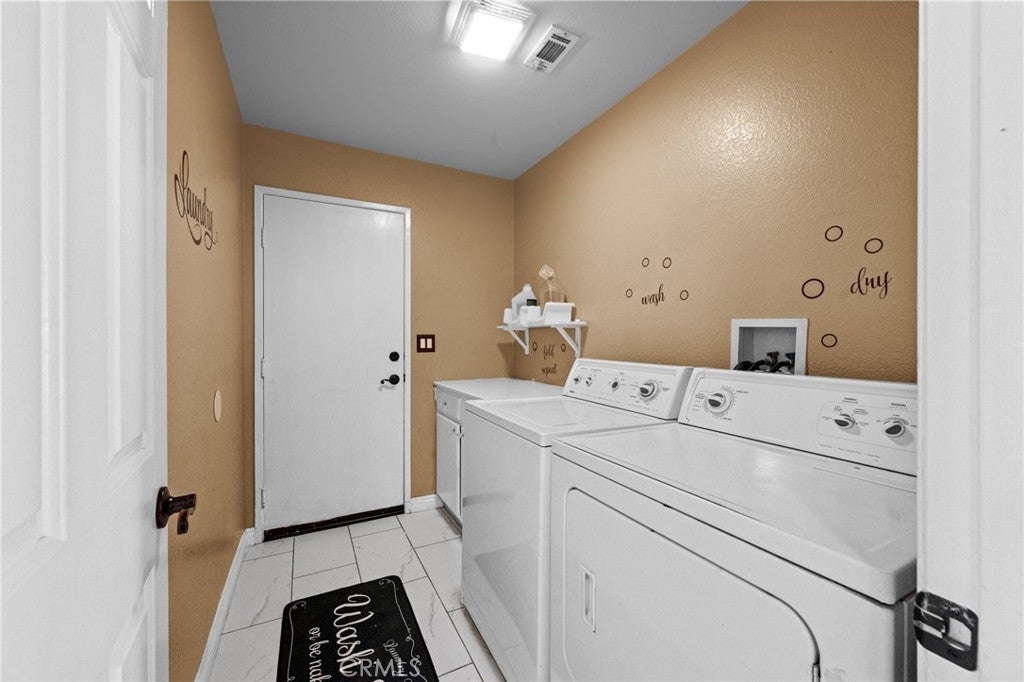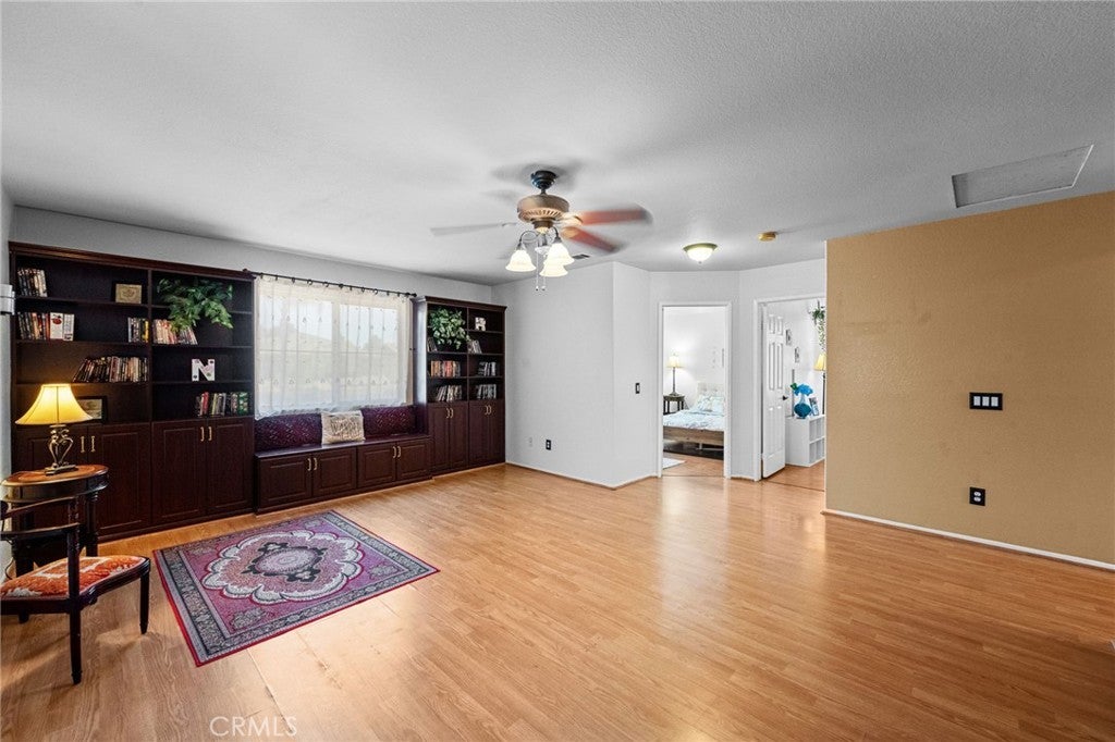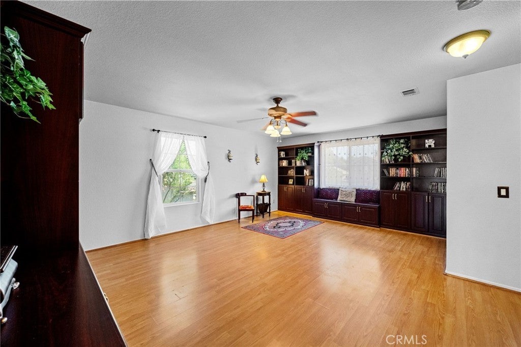Well-Designed Charmin Home with Desirable Lake Amenities. Discover this well-designed five-bedroom home that perfectly blends comfort with everyday function. The convenient main-floor bedroom & full shower bathroom. Upstairs, a large loft with custom built-in cabinetry offers a flexible space for any imagination , art studio, playroom, or media center or a cave man dream. The open kitchen is the heart of the home, featuring a central island and ample storage. It flows directly into a spacious living room and a formal dining area, creating an excellent space for gathering. The primary suite is a peaceful escape, complete with a quiet retreat area. Step into the private backyard to find a wonderful home orchard with pomegranate, orange, lemon, rare sweet lemon, and olive trees. An inviting spa provides the perfect setting to unwind or entertain guests. Residents have exclusive access to the gate-guarded lake community amenities, including, pools & spa , gathering area, a gym, a clubhouse, fishing, and paddle boats. City of Moreno Valley offers a lots of park and activities for residents including tennis courts, dog park & more. With a low tax rate and low HOA dues. Near by shopping & dining, schools and community college. This property is a standout value in a desirable community. This is not a home -its life style.
