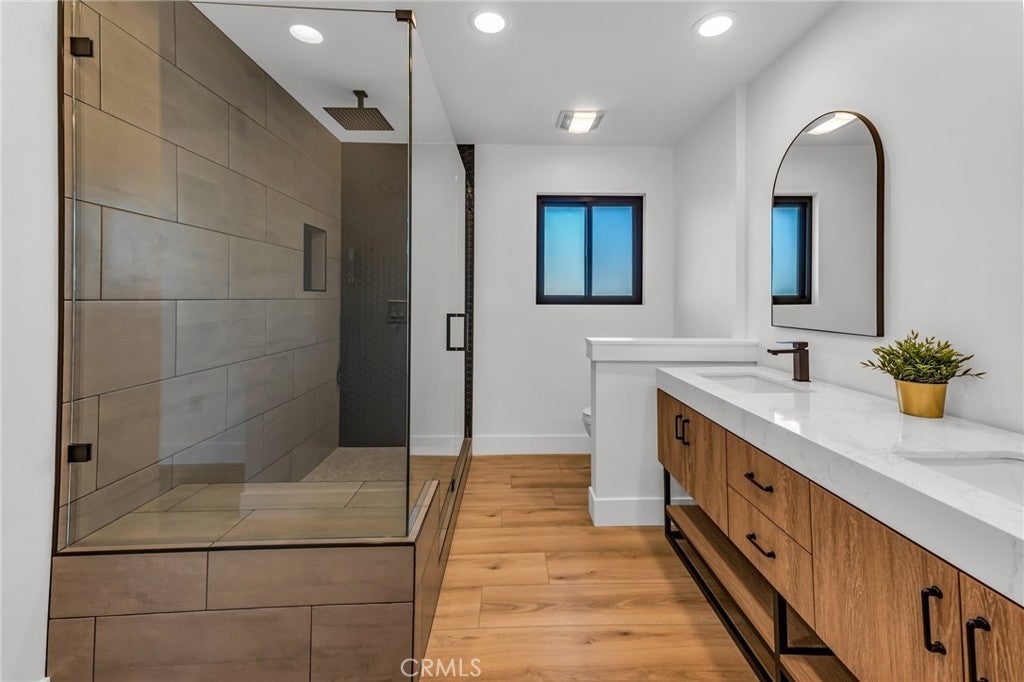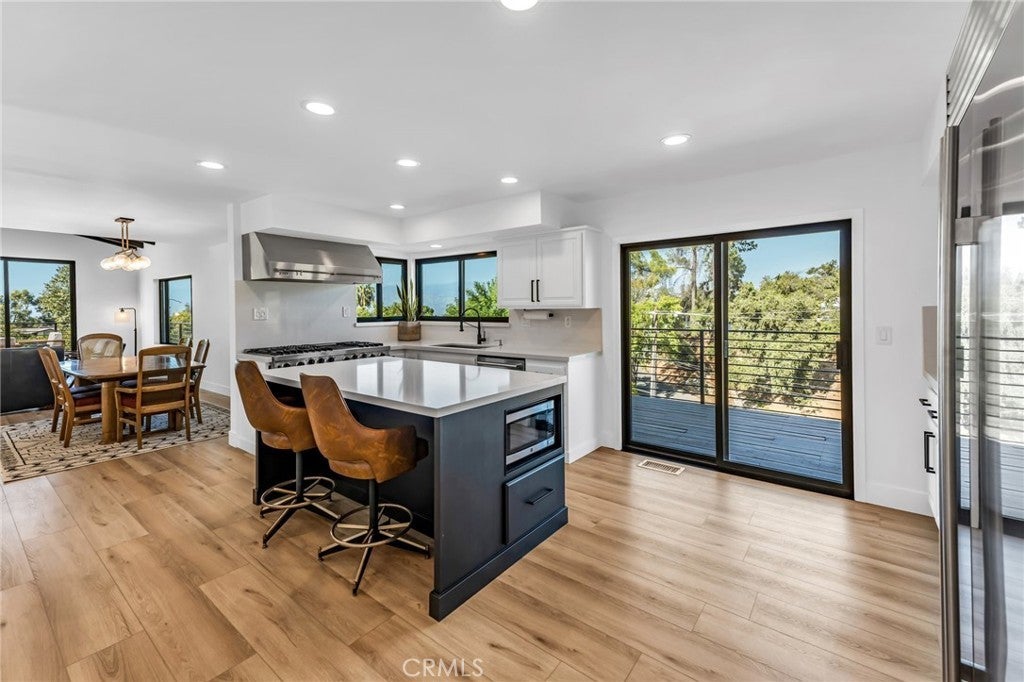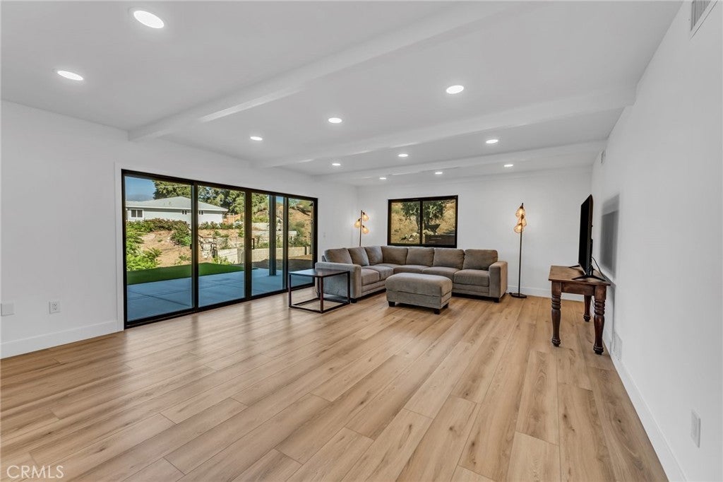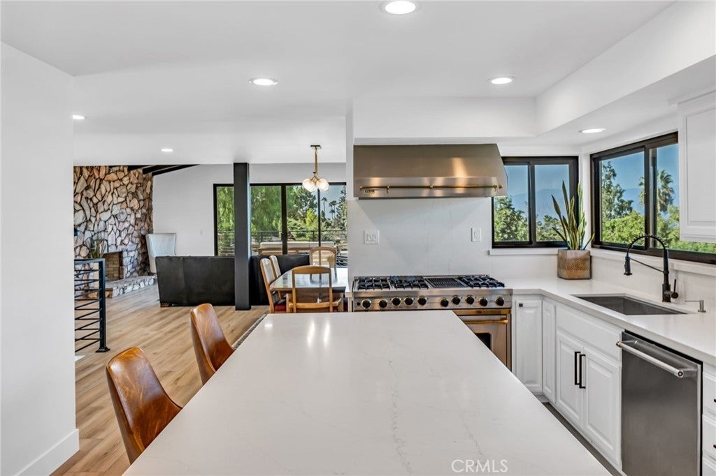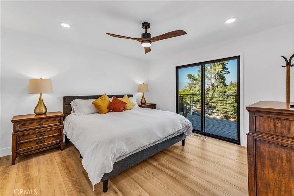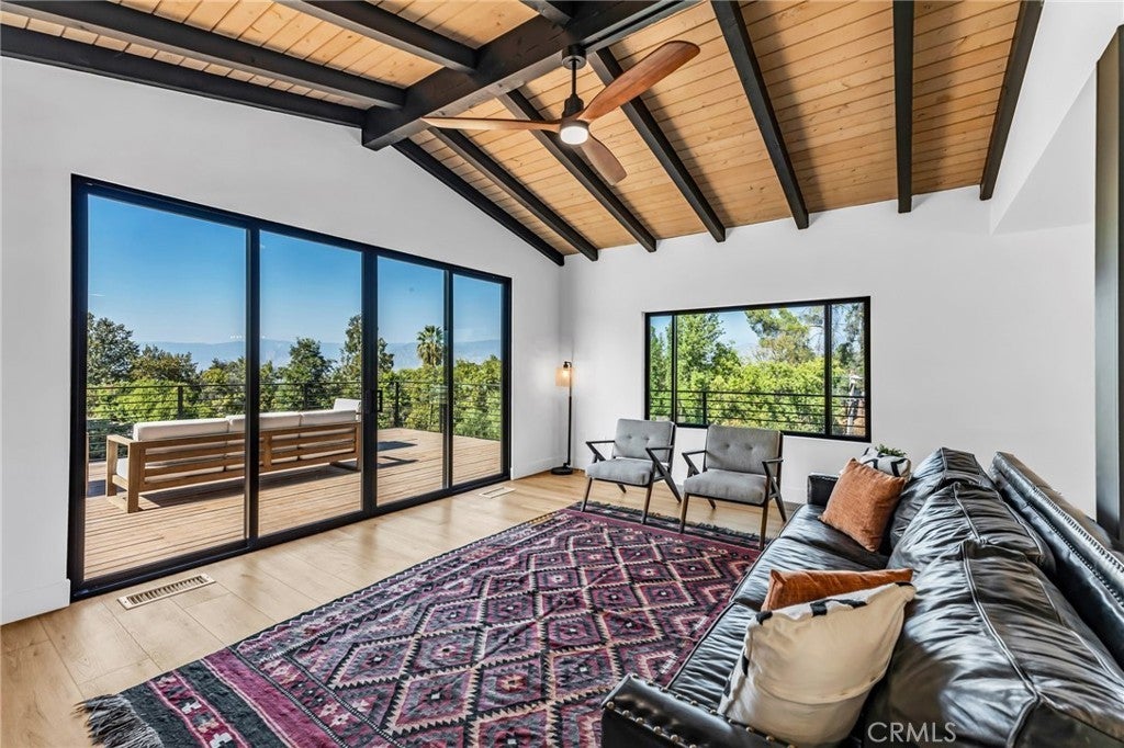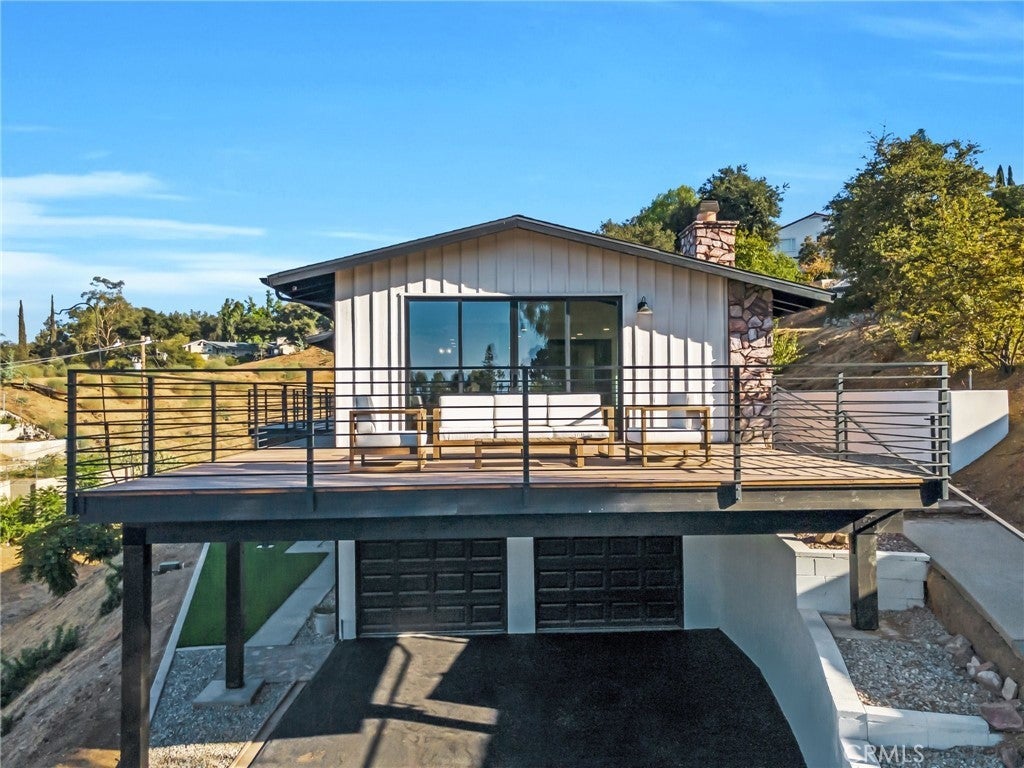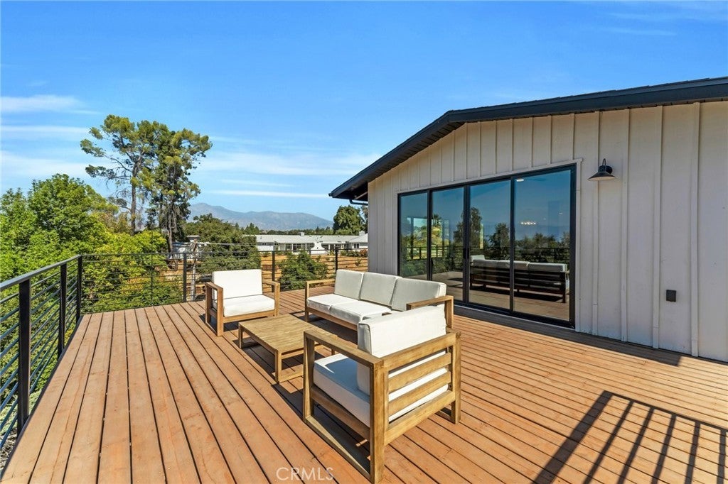Welcome to this beautifully upgraded, fully renovated mid-century modern home in the heart of South Redlands. As you approach, a long turnaround driveway leads you to a spacious residence designed for multi-living with two individual living areas, offering the perfect balance of comfort and functionality. Inside, the open-concept design with exposed beams invites natural light to flood the home. The seamless flow from the entry to the living room, dining room, and kitchen makes it ideal for both daily living and entertaining. The updated kitchen is equipped with quartz countertops, a Sub-Zero refrigerator, and a Viking professional stove/oven, opening to the dining and living areas. The primary bedroom serves as a private retreat with stunning views, a luxurious ensuite bathroom with a walk-in shower and dual vanity, and direct access to the outdoor deck. Step outside onto the entertaining front large deck which is perfect for dining and enjoying the 180-degree panoramic views of the surrounding mountains, valley and golf course. With ample space for an ADU, pool, or RV parking, the expansive yard is a blank canvas waiting to be personalized to your own taste. The lower level provides a versatile second living area, complete with a private bedroom, bathroom, laundry, and full kitchen—perfect for multi-generational living, long-term guests, or additional rental income. It opens out to your outdoor entertainment space as well. Conveniently located in the highly sought-after South Redlands neighborhood, you're just a short golf cart ride away from Redlands Country Club and close to Loma Linda Medical Center, the University of Redlands, ESRI, shops, restaurants, and top-rated schools. This home offers flexibility to fit your lifestyle while capturing the essence of luxury living with spectacular views.