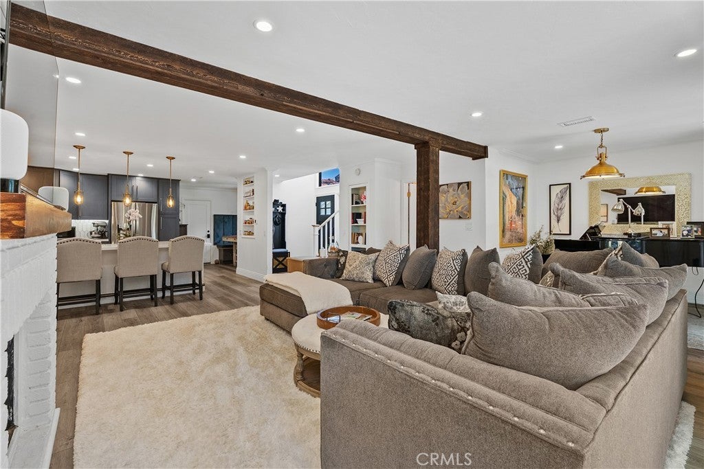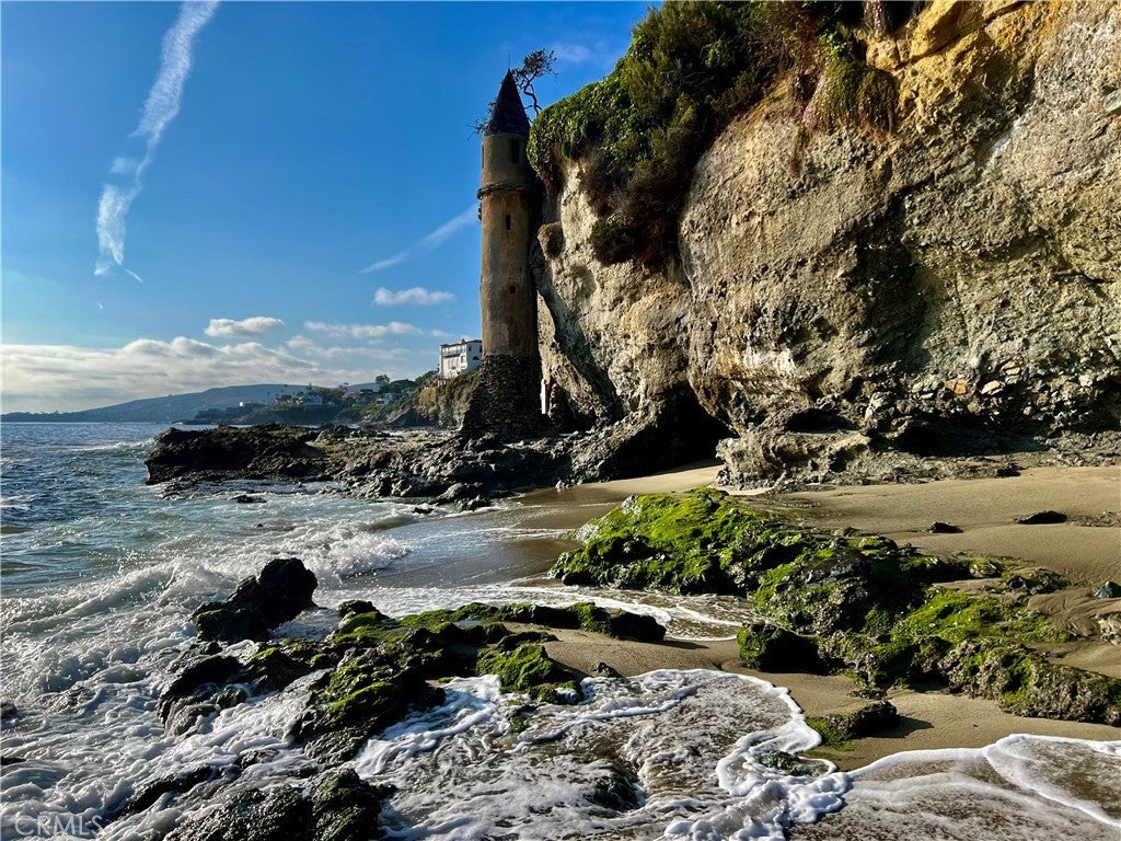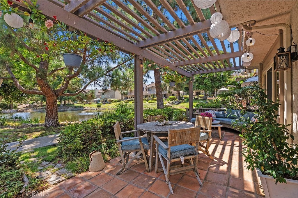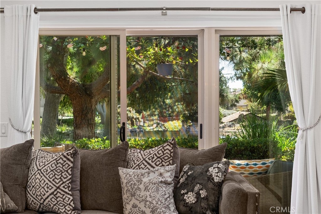 This is the home you've been looking for! Discover this rare turnkey 3-bedroom, 3-bath townhome in the sought-after Mill Pond Gated Community—one of Capistrano Beach’s best-kept “secret garden” enclaves. Perched above one of the community’s two scenic ponds, this tranquil home is surrounded by lush landscaping, waterfalls, mature trees, and natural wildlife, including ducks, geese, herons, and egrets—a true paradise for nature lovers. Step inside and be welcomed by soaring two-story ceilings, sun-filled windows, and elegant crown molding that frame the bright, open layout. The remodeled kitchen has been thoughtfully expanded and designed for the passionate cook, featuring a spacious bar, quartz countertops, octagonal backsplash tile, LG stainless steel appliances, a farmhouse sink, modern brass accents, and custom cabinetry with open shelving. The charming breakfast nook includes built-in seating and storage—perfect for morning coffee or casual meals. The kitchen flows seamlessly into the inviting family room, complete with a white brick and shiplap fireplace ideal for a 70" TV. Downstairs also features a chic coastal powder room, hidden under-stair storage, and flexible space for a dining area, piano, or reading nook. Dual sliding doors open to the serene garden patio overlooking the pond and waterfalls—an ideal retreat for relaxing or entertaining. Upstairs, the primary suite offers vaulted ceilings, a walk-in closet with built-ins, a cozy fireplace, and a private deck with peaceful water views. The spa-inspired en-suite bath showcases a modern wood vanity, quartz countertops, dual sinks, a walk-in shower, and brass fixtures. Two additional bedrooms feature designer wallpaper and coastal charm, while the second bath includes a soaking tub and stylish finishes. Additional highlights include luxury vinyl flooring, recessed lighting, ceiling fans, and a new electric HVAC & AC system. The attached two-car garage provides direct kitchen access, laundry, and storage. Mill Pond HOA covers water, exterior maintenance, lush landscaping, and the community pool. Perfectly located next to Mira Costa Park and walking distance to Pines Park, Camino de Estrella shops, and minutes from the beach, Dana Point Harbor, the Lantern District, San Clemente Outlets, and historic San Juan Capistrano. Experience the best of Capistrano Beach living in this one-of-a-kind home—your coastal sanctuary awaits!