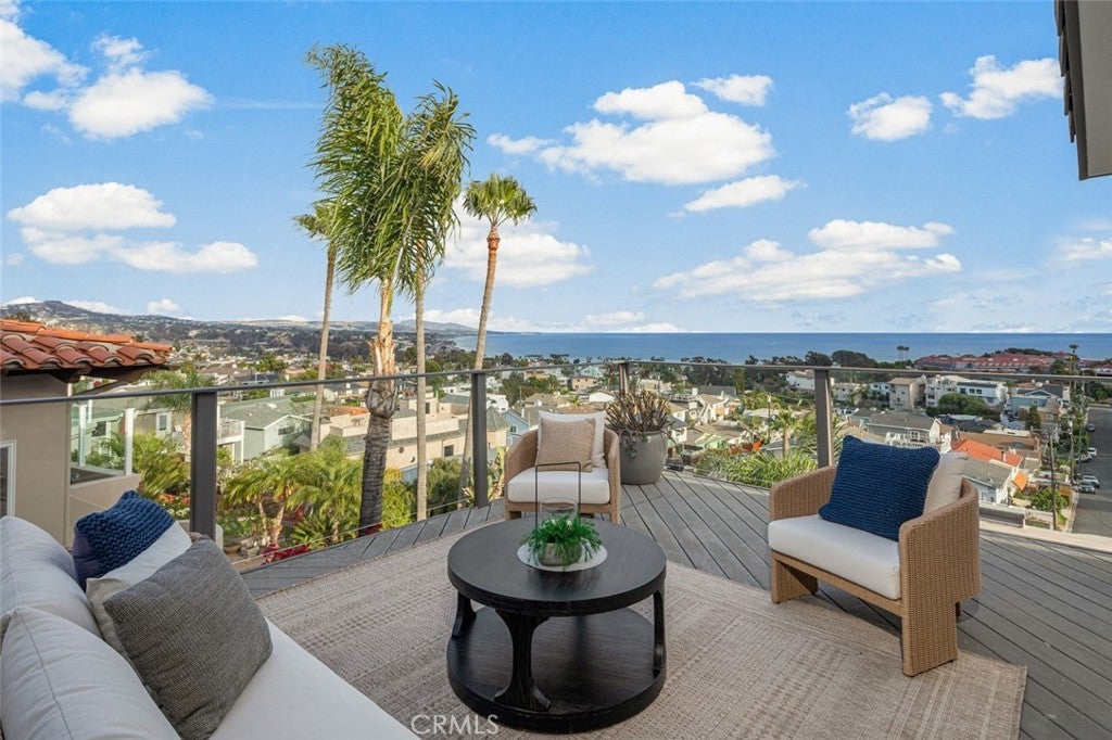 A Hidden Jewel with Breathtaking Views from Every Level! Perched in the heart of Dana Point’s coveted Lantern Village, this newly remodeled coastal sanctuary offers an exceptional blend of timeless elegance and contemporary luxury. With approximately 6,146 square feet of open living space, this 5 bedroom, 6 bathroom residence is a rare find. From the moment you step inside, you're greeted with panoramic whitewater ocean views that span across all levels. The expansive main floor features an open-concept layout with consistent designer flooring throughout, a wraparound deck perfect for entertaining, and a gourmet kitchen outfitted with state-of-the-art Thermador appliances, a wine bar, and endless ocean vistas. With soaring ceilings, clean lines, and walls bathed in natural light, this home is also the perfect canvas to showcase an art collection or create your own private gallery. The upper level includes a private-entry flex space ideal for an office, guest suite, or artist’s studio. An elevator provides effortless access to each floor, and the 3 car garage, ample storage, outdoor grassy area, and outdoor shower add to the home’s livability and appeal. This architectural gem radiates California chic with modern flair, neutral tones, sleek finishes, and thoughtfully designed outdoor areas that embrace the coastal surroundings. Located moments from the revitalized Dana Point Harbor, world-class dining, boutique shopping, and scenic beaches, this stunning home is truly a must see. Indulge in the ultimate coastal lifestyle, where luxury meets tranquility and creativity finds its home.