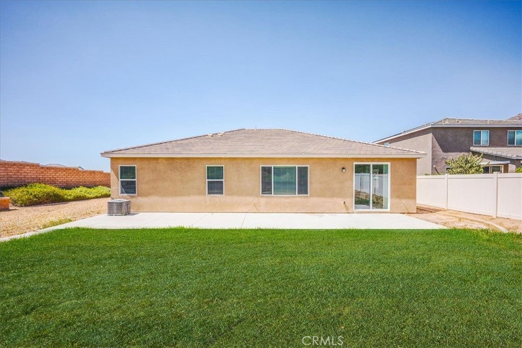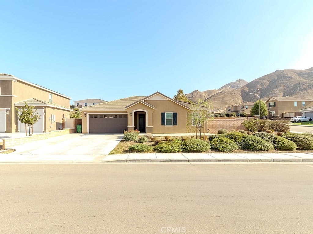 HUGE price improvement! Stop by today! PAID OFF SOLAR PANELS, and appliances included! Newer single story, corner home with a lot of upgrades throughout. The lot is big enough to add RV parking, a pool or your entertainers heart desire. NO HOA! Property has 4 Spacious Bedrooms, and 2.5 Bathrooms featuring a master bath with both a shower and a separate soaking tub for ultimate relaxation. The Kitchen was upgraded with sleek granite countertops, huge kitchen island, pantry, high ceilings, open concept, with a very large separate den perfect for entertaining and hosting. The very large primary suite is an amazing retreat, with ample space and equally spacious walk-in closet. The Primary bath features double sinks, a bathtub and separate shower! Fully landscaped back yard, and drought friendly front yard for added convenience! Home is within minutes of UCR, Sandals church, parks and walking trails.