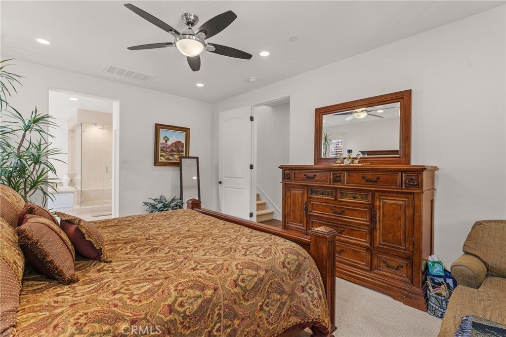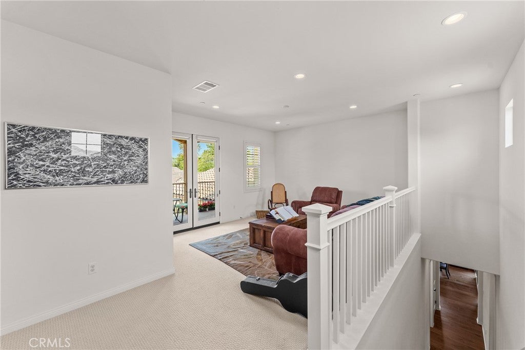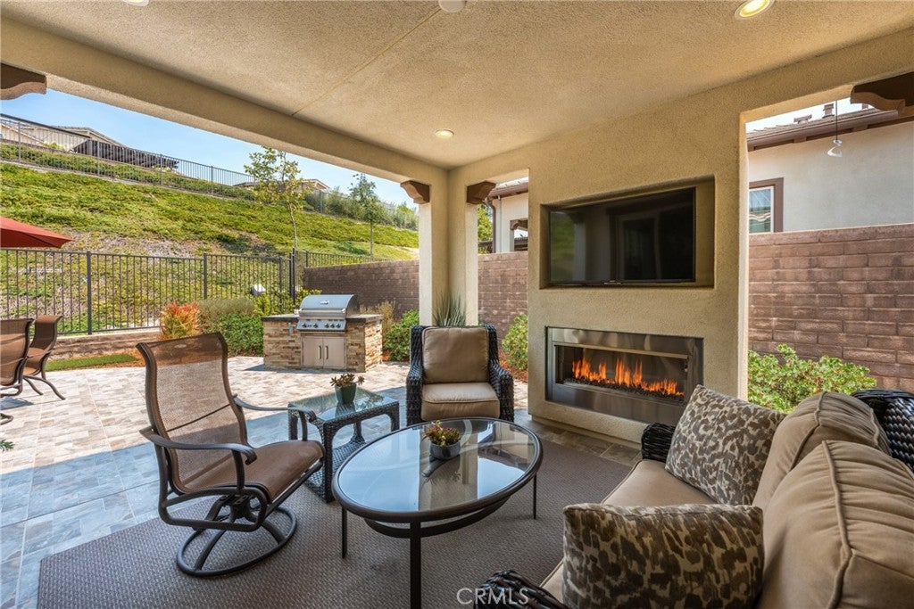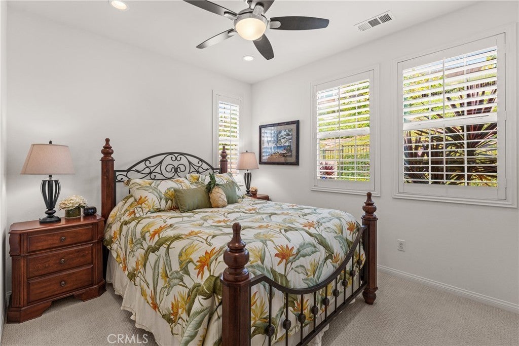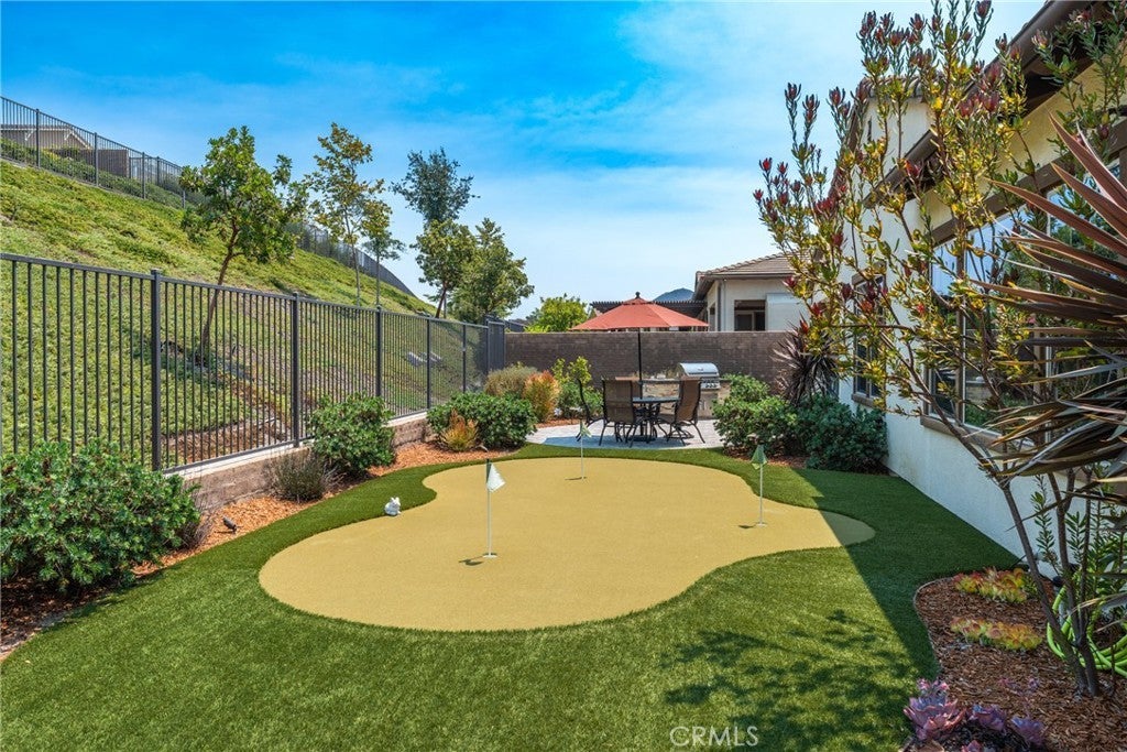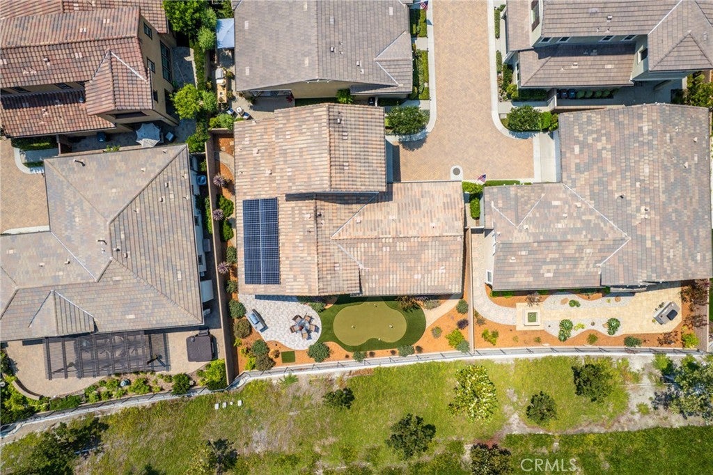 Lives like a SINGLE LEVEL HOME , highly upgraded and energy-efficient, this stunning Adobe Ranch-style home in the 55+ Avocet community of Esencia features owned solar panels, EV charger and large professionally landscaped backyard with private putting green! Located in one of Rancho Mission Viejo’s most desirable neighborhoods, this thoughtfully designed Plan 3 lives like a single-level home, with three bedrooms and two bathrooms on the main floor—including a versatile bedroom currently used as an office. Upstairs, a spacious bonus room with a half bath and a covered deck overlooks scenic canyon views, offering the perfect space for guests, hobbies, or possible 4th bedroom. The open-concept kitchen is a chef’s dream, with Bianco Antico granite countertops, Whirlpool stainless steel appliances, KitchenAid cooktop, subway tile backsplash, and crisp white Thermafoil cabinetry. The main-floor primary suite is a spa-like retreat with dual vanities, a soaking tub, large walk-in shower with dual shower heads plus a rain shower, and large walk-in closet. Designer upgrades include hardwood floors, Berber carpet, upgraded tile, motorized shades, plantation shutters, recessed lighting, shaker cabinetry with under-cabinet lighting and glass doors, and a custom built-in media wall. The professionally landscaped backyard is an entertainer’s paradise featuring a covered California Ranch Room with outdoor gas fireplace, a built-in BBQ island, custom lighting, drip irrigation, and a three-hole putting green designed by a professional greenskeeper—complete with chipping mat. Stroll on the stabilized decomposed granite path by a dwarf lemon tree. Additional highlights: EV charger, whole-house water softener, tankless water heater, epoxy garage floor with built-in cabinetry, and full-home internet wiring. Over $96,000 in original builder upgrades plus many thousands more in backyard enhancements and solar installation make this home truly turnkey! Enjoy exclusive access to The Outlook clubhouse with pool, spa, and cabanas, plus all the award-winning all ages RMV amenities—clubhouses, saltwater pools, fitness centers, yoga studios, fire pits, bocce/pickleball courts, hiking trails, a neighborhood farm, and more. All this just 8 miles from the beaches of South Orange County and minutes to downtown San Juan Capistrano’s shops and restaurants.