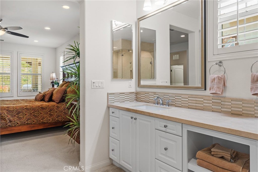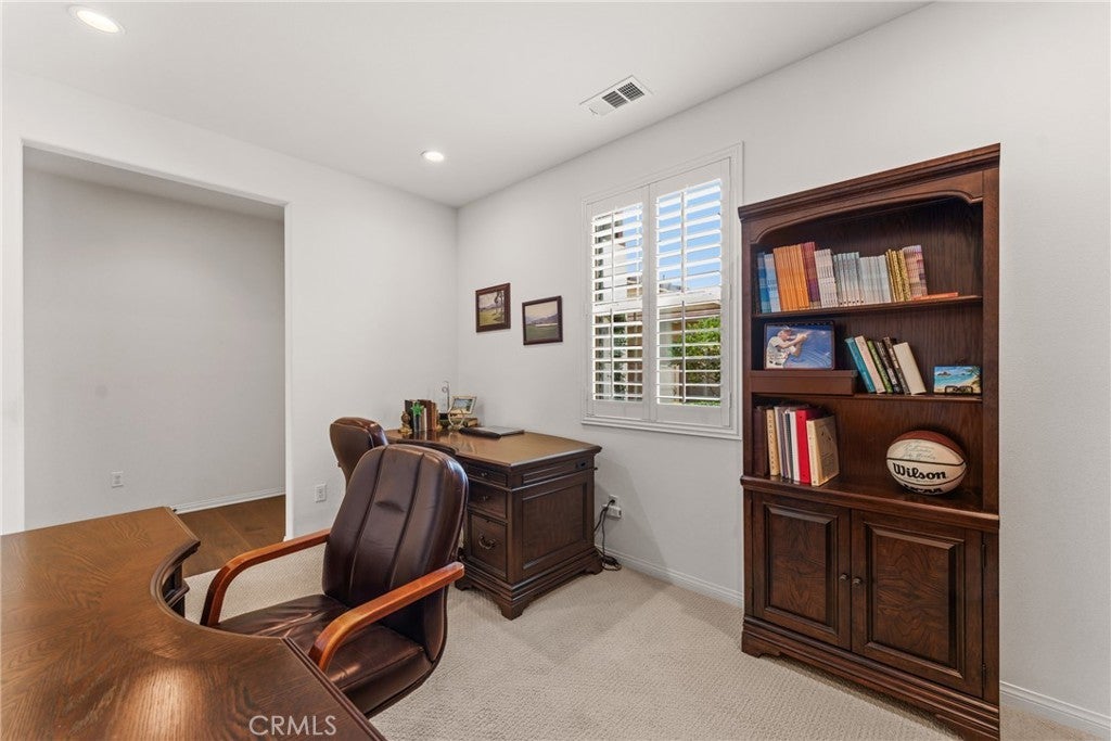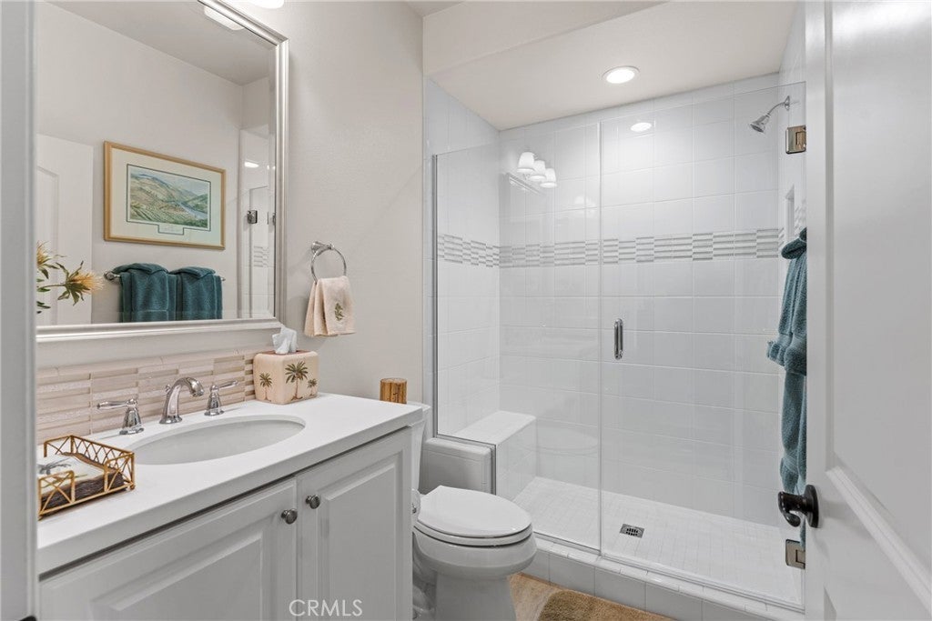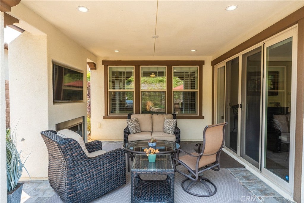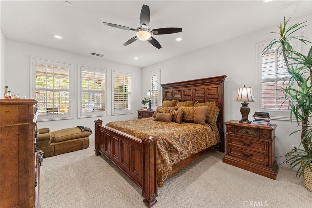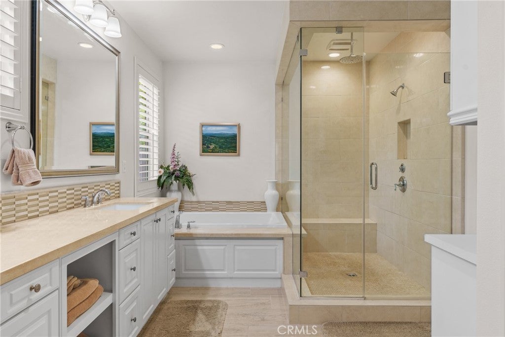 Lives like a SINGLE LEVEL HOME , highly upgraded and energy-efficient, this stunning Adobe Ranch-style home in the 55+ Avocet community of Esencia features owned solar panels, EV charger and large professionally landscaped backyard with private putting green! Located in one of Rancho Mission Viejo’s most desirable neighborhoods, this thoughtfully designed Plan 3 lives like a single-level home, with three bedrooms and two bathrooms on the main floor—including a versatile bedroom currently used as an office. Upstairs, a spacious bonus room with a half bath and a covered deck overlooks scenic canyon views, offering the perfect space for guests, hobbies, or possible 4th bedroom. The open-concept kitchen is a chef’s dream, with Bianco Antico granite countertops, Whirlpool stainless steel appliances, KitchenAid cooktop, subway tile backsplash, and crisp white Thermafoil cabinetry. The main-floor primary suite is a spa-like retreat with dual vanities, a soaking tub, large walk-in shower with dual shower heads plus a rain shower, and large walk-in closet. Designer upgrades include hardwood floors, Berber carpet, upgraded tile, motorized shades, plantation shutters, recessed lighting, shaker cabinetry with under-cabinet lighting and glass doors, and a custom built-in media wall. The professionally landscaped backyard is an entertainer’s paradise featuring a covered California Ranch Room with outdoor gas fireplace, a built-in BBQ island, custom lighting, drip irrigation, and a three-hole putting green designed by a professional greenskeeper—complete with chipping mat. Stroll on the stabilized decomposed granite path by a dwarf lemon tree. Additional highlights: EV charger, whole-house water softener, tankless water heater, epoxy garage floor with built-in cabinetry, and full-home internet wiring. Over $96,000 in original builder upgrades plus many thousands more in backyard enhancements and solar installation make this home truly turnkey! Enjoy exclusive access to The Outlook clubhouse with pool, spa, and cabanas, plus all the award-winning all ages RMV amenities—clubhouses, saltwater pools, fitness centers, yoga studios, fire pits, bocce/pickleball courts, hiking trails, a neighborhood farm, and more. All this just 8 miles from the beaches of South Orange County and minutes to downtown San Juan Capistrano’s shops and restaurants.