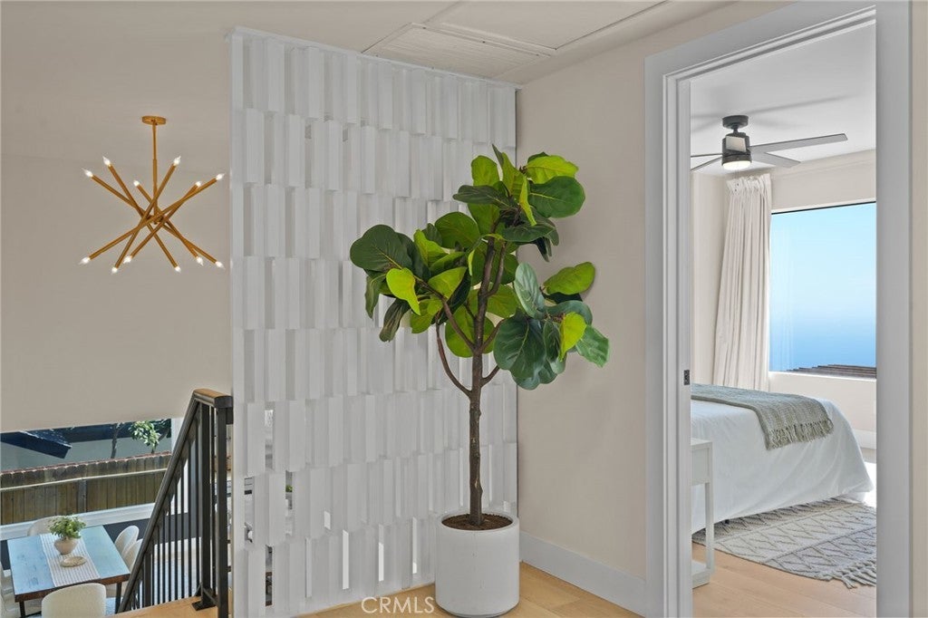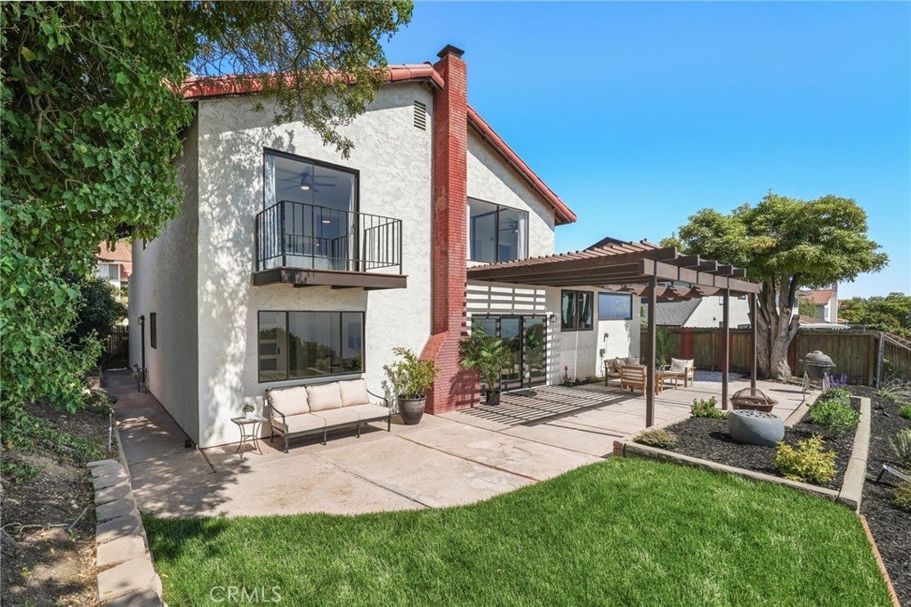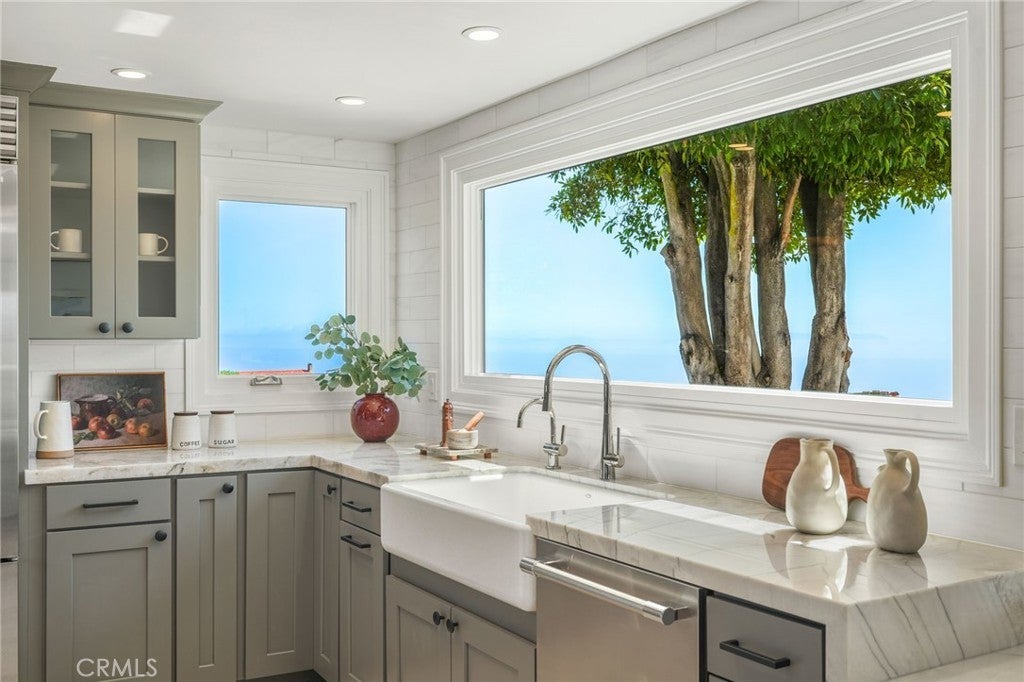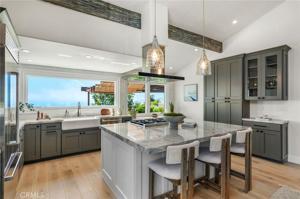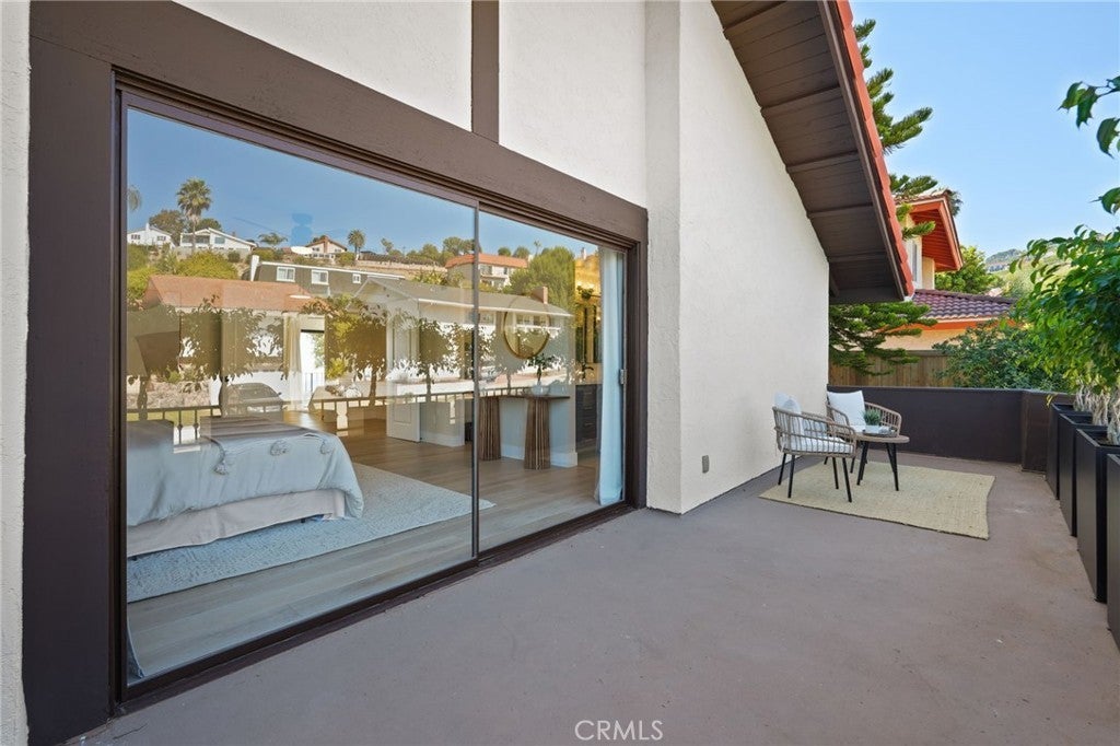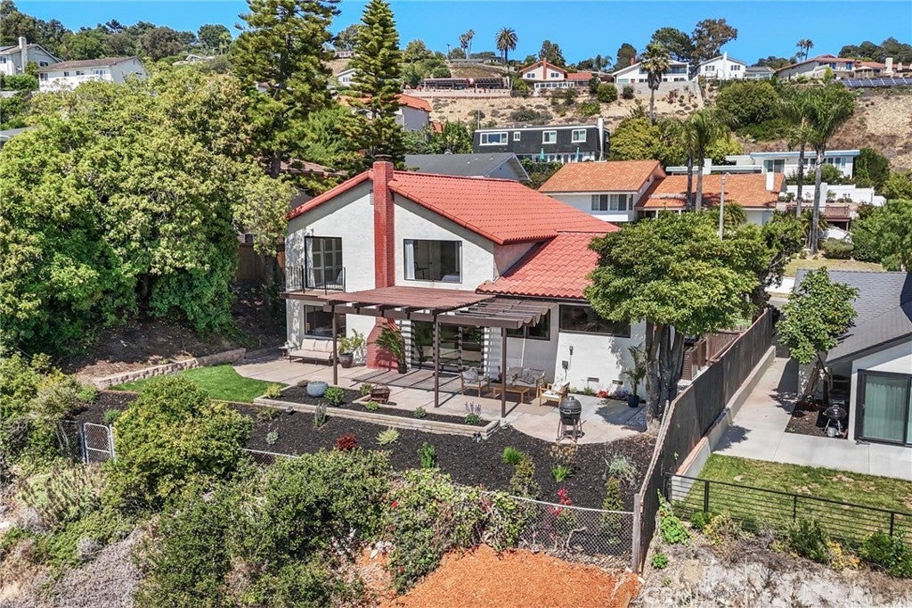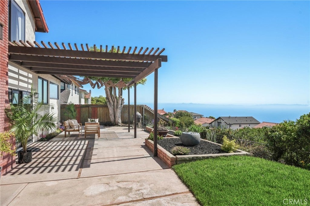 Incredible Pacific Ocean Catalina Views from this reimagined 4-bedroom, 3-bathroom home. Upon entering, be immediately greeted with a light and bright interior featuring high vaulted ceilings, fresh paint, and beautiful European Oak engineered wood floors. Adjacent to the foyer is the first of two living spaces, which is open to the dining and kitchen area. The Chef's kitchen is an entertainer's dream with high-end Sub-Zero and Thermador appliances (installed in 2024), large center island, one-of-a-kind quartzite countertops and gorgeous panoramic ocean views. Other highlights include the ocean-facing eat up bar and newly installed reverse osmosis water filtration system with insta-hot faucet. Step down to the second living space that opens to the backyard and features a gas fireplace and wet bar with beverage fridge. The downstairs level is completed with a separate bedroom and full bath -- perfect for guests, an older child, in-laws, or home office. Upstairs, the spacious primary suite offers separate dual vanities and closets, marble tile, and sizable balcony. Additionally upstairs are the generously sized third and fourth bedrooms (one with private balcony) that share a hall bath. This coastal retreat has plenty of storage throughout, updated recessed lighting, and dual zone ACs. Additional storage is provided by the 3-car garage with direct access. New flush, smooth dark bronze garage doors with side mount openers were recently installed. The backyard is low maintenance with new drip system and sprinklers and is the perfect place to relax and enjoy the fresh, cool ocean breeze. The oversized, street to street lot offers privacy and room for additional improvements. This highly sought after Mira Catalina neighborhood within PVPUSD (ranked #2 in all of LA County according to Niche) is known for its sweeping views, underground utilities, and its tranquil nature surroundings. Convenient access to the 110 and only minutes to shops and restaurants, yet you'll feel worlds away while enjoying the ever-changing ocean scenes of ships and dolphins and spotting the local hummingbirds and red-tailed hawks. Hiking and biking enthusiasts alike will appreciate access to the Forrestal Reserve trail system via the Coolheights Trail just down at the end of the street. The location and proximity to the ocean provide for, arguably, one of the best microclimates in the area. Schedule your showing today to experience a taste of the California Coastal dream lifestyle.