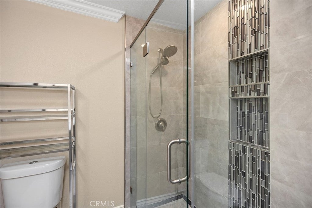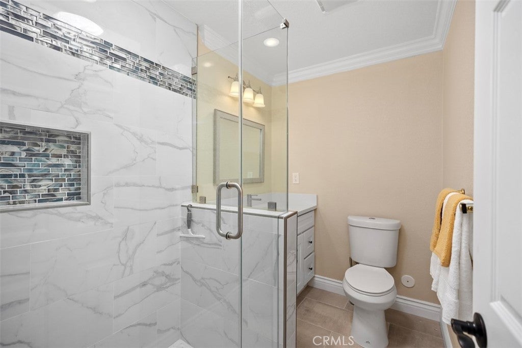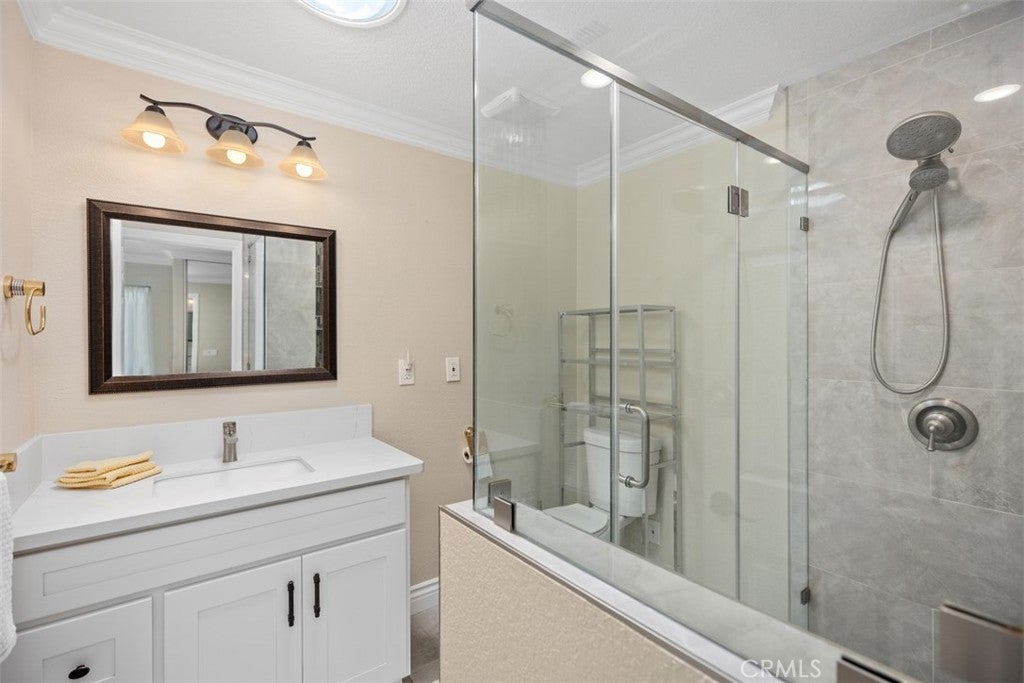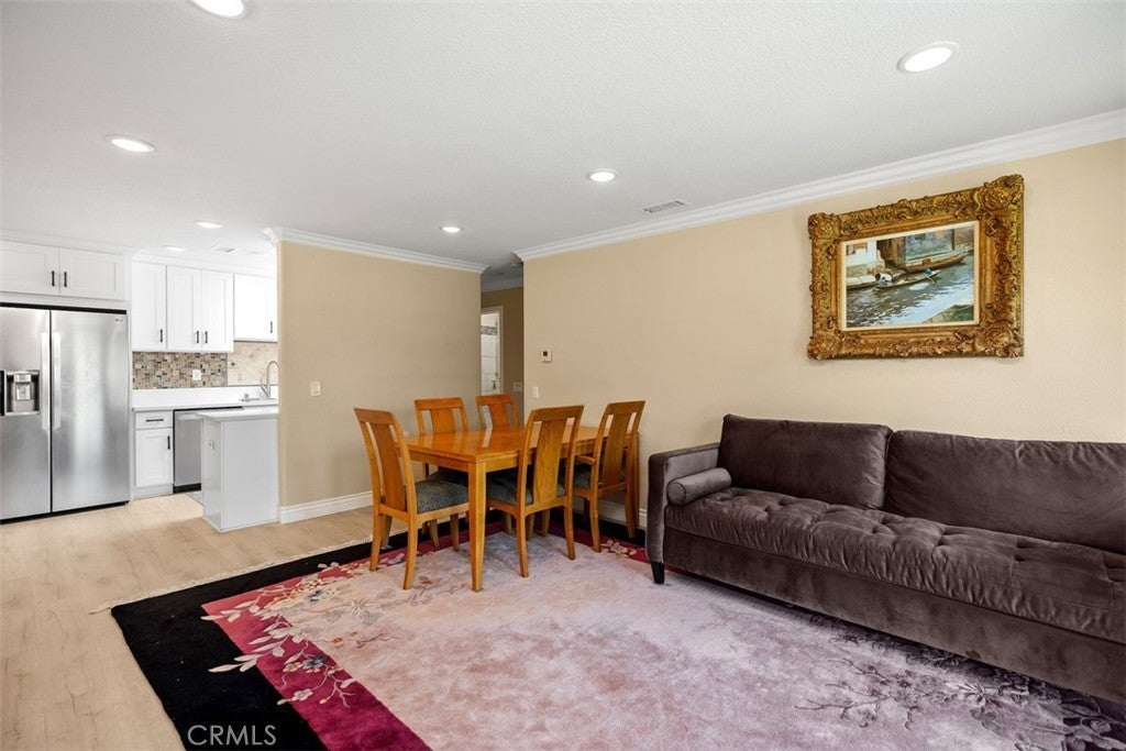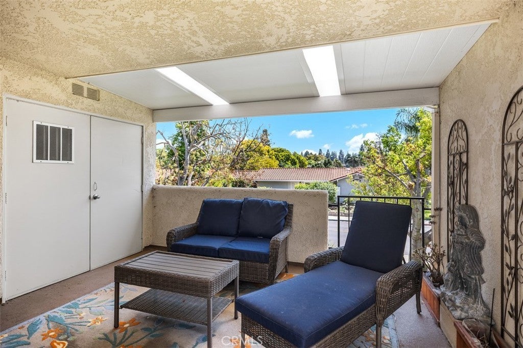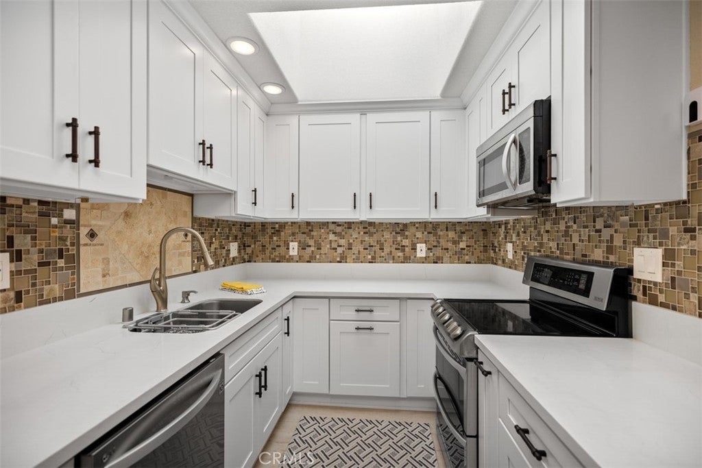 REMODELED & READY to Move In. 2 bedrooms, 2 bathrooms, NO STAIRS, with Central Heat & AC. Walk right in from the large gated covered patio, enter the living room with flat screen TV mounted above an electric fireplace, where the kitchen has been opened up and remodeled with stainless appliance, newer cabinets and quartz counter tops. Large skylights in the kitchen and bathrooms provide a light & bright environment you will love to cook in. Dual pane windows provide year around comfort. Laminate floors for easy cleaning, crown molding, modern smooth ceilings all within this rental. Carport is nearby with storage cabinet. Come and make your home here in this premier 55+ community of Laguna Woods. 7 clubhouses, 5 swimming pools, 27-hole golf course, 9-hole executive golf course, tennis courts, pickleball, lawn bowling 2 fitness centers and much much more!