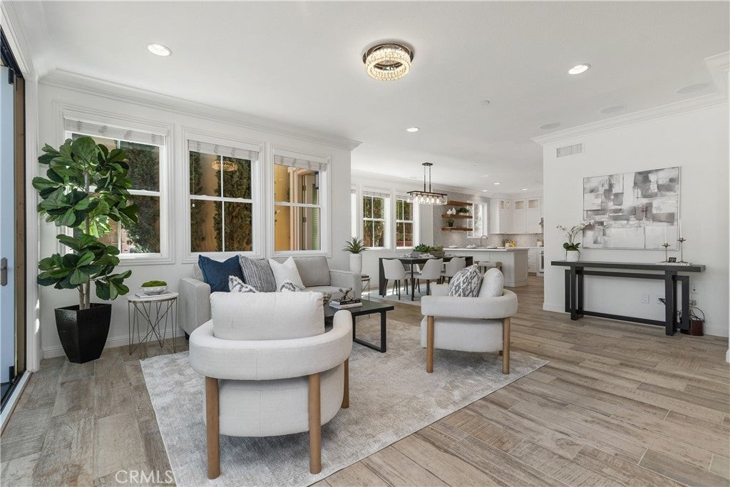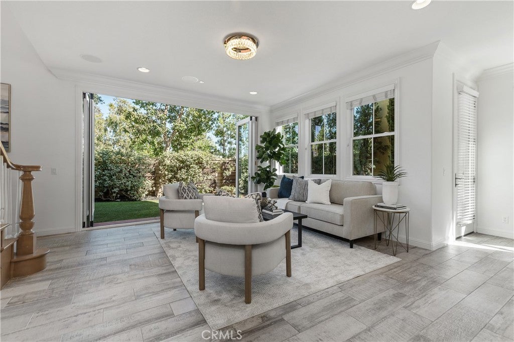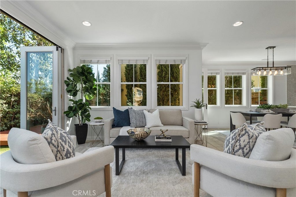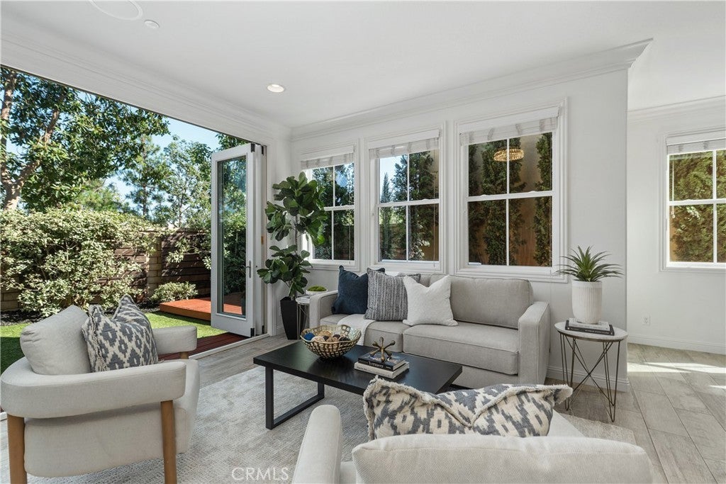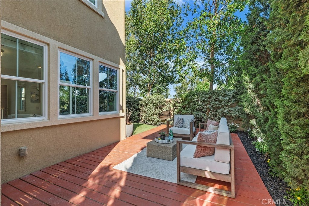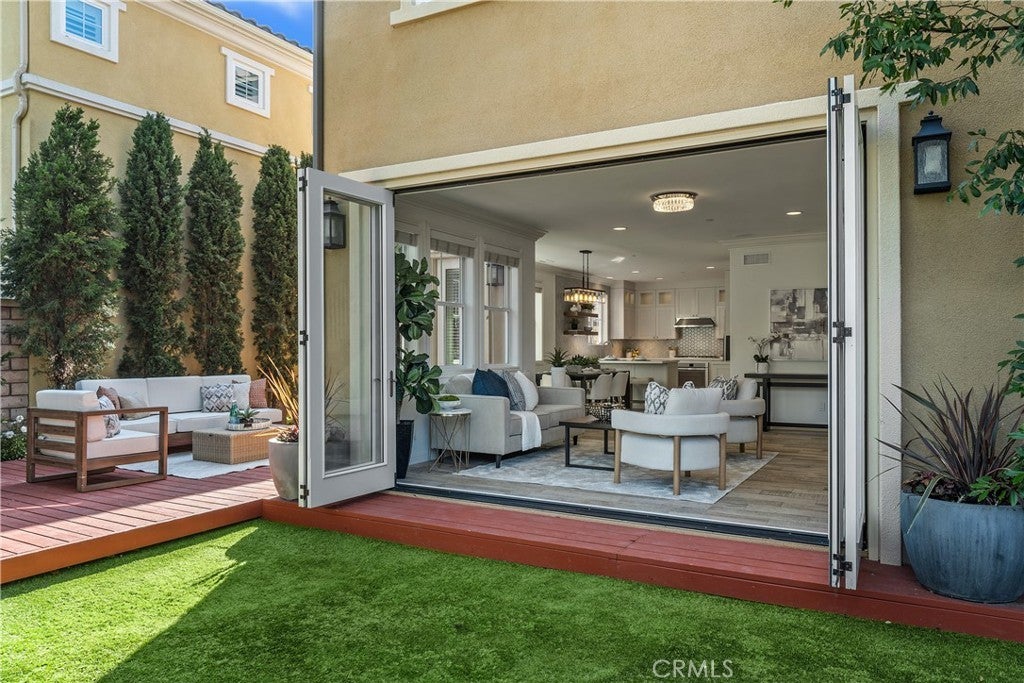 Move-in-ready with low property taxes, no Mello Roos & large lot. This single-family home offers up to 5 bedrooms (currently configured as 4+ a large bonus room). Built by Toll Brothers, personally customized during construction by the current owner, a Toll Brothers executive, this one-of-a-kind home was designed for seamless indoor/outdoor entertainment and truly stands apart for its exceptional location. 1 of only 2 true corner-lot homes in the community, it sits on a highly desirable elevated lot along a single-loaded street, surrounded by trees, designed to maximize privacy, yard space, and mountain views. A two-story foyer welcomes you into the light-filled interior, while 12-foot Andersen folding doors off the great room open to a large yard, creating a California-style experience surrounded by birds singing in the trees. The dining area opens to the deck for alfresco meals, and the integrated surround sound system extends outdoors for effortless entertaining. The chef’s kitchen showcases luxuriously light colors with upgraded quartz countertops & premium custom cabinetry extending to the ceiling, featuring soft-close drawers & doors, slide-out pantry shelves, lazy Susan corner storage, under-cabinet lighting, and an expansive buffet island ideal for casual dining. The kitchen also offers convenient direct garage access. Upstairs, the primary suite features a spa-inspired retreat with a rain shower head, frameless glass enclosure, floating cabinetry, separate soaking tub, dual vanities, quartz counters, and floor-to-ceiling designer tile. Secondary bedrooms include custom closet organizers, and the upstairs laundry room has a sink & cabinetry. Additional upgrades include crown molding on both levels, beach-inspired tile & LVP flooring, epoxy garage floor, EV charger, leased 2.4 kW solar, tankless water heater, and on-demand hot water. Residents enjoy access to three resort-style pools, a tot-lot water park, private venues, sports courts, dog parks, and over 10 acres of scenic trails connecting to Serrano Creek. Prime location near The Grove Clubhouse, Passage Park, and Promenade Park, with easy access to Foothill Ranch Towne Centre, the 241 and 133 Toll Roads, the 91, 5, and 405 freeways, and nearby airports including JSX, John Wayne, and LAX. Shopping, dining, and beaches are minutes away, with Irvine Spectrum, Fashion Island, South Coast Plaza, Newport and Laguna Beach, Dana Point Harbor, and San Clemente’s world-class surf all within easy reach.