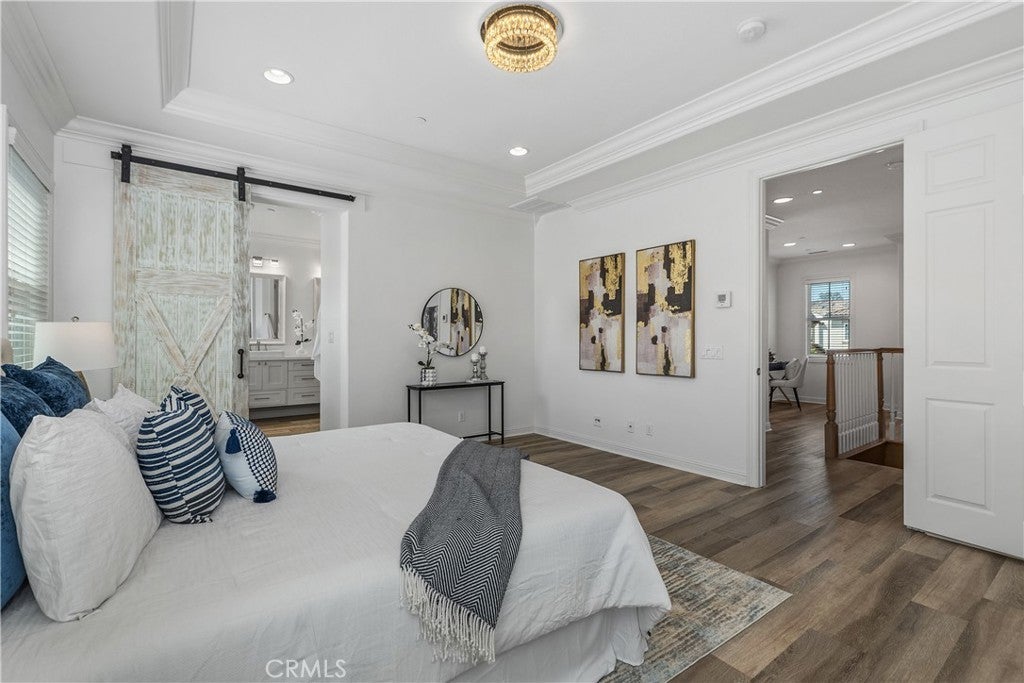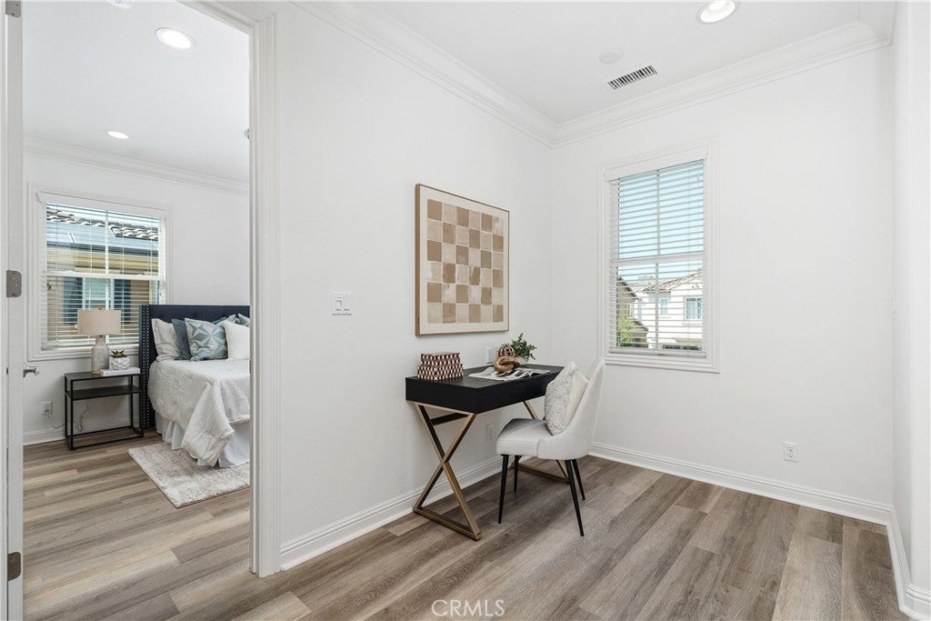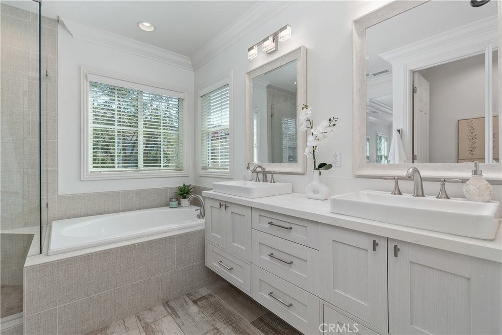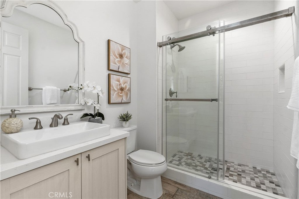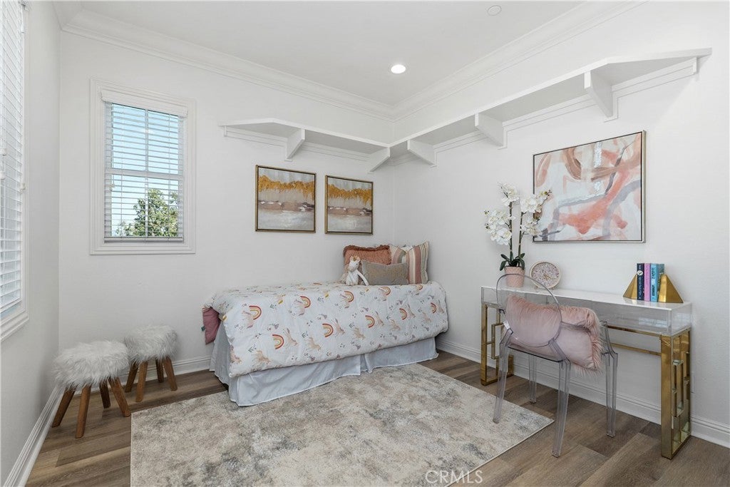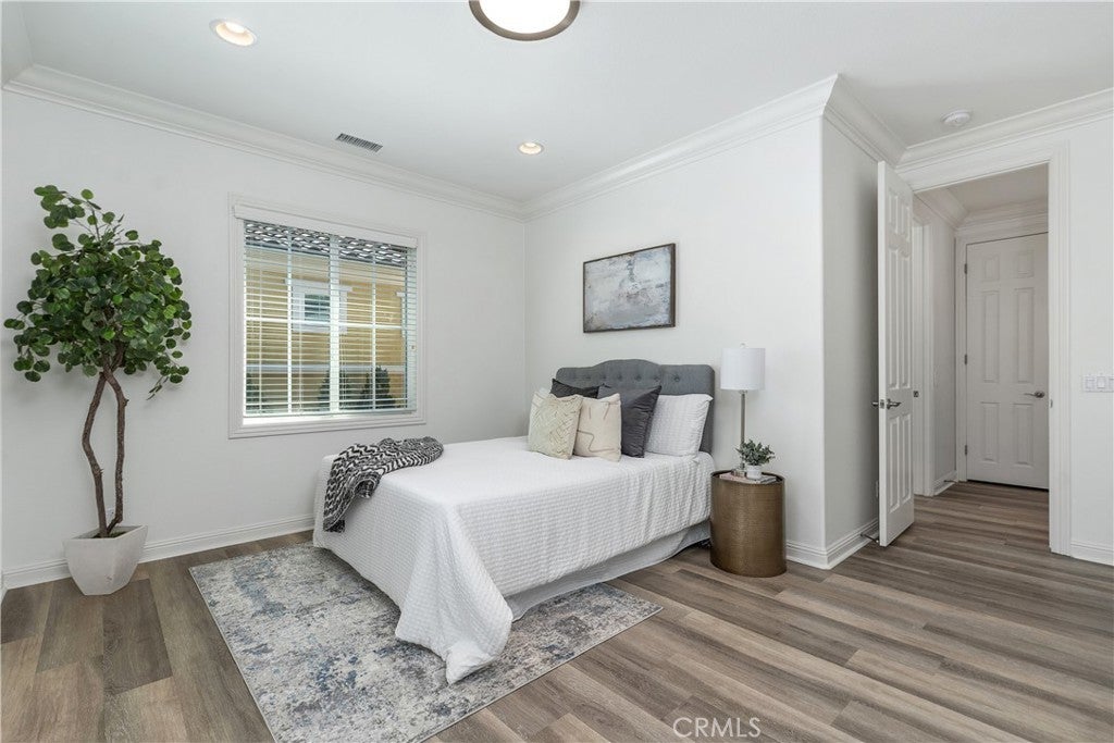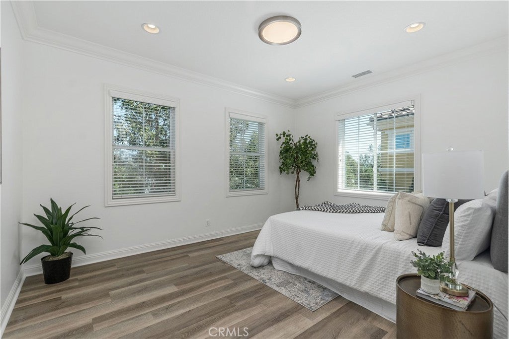 Move-in-ready with low property taxes, no Mello Roos & large lot. This single-family home offers up to 5 bedrooms (currently configured as 4+ a large bonus room). Built by Toll Brothers, personally customized during construction by the current owner, a Toll Brothers executive, this one-of-a-kind home was designed for seamless indoor/outdoor entertainment and truly stands apart for its exceptional location. 1 of only 2 true corner-lot homes in the community, it sits on a highly desirable elevated lot along a single-loaded street, surrounded by trees, designed to maximize privacy, yard space, and mountain views. A two-story foyer welcomes you into the light-filled interior, while 12-foot Andersen folding doors off the great room open to a large yard, creating a California-style experience surrounded by birds singing in the trees. The dining area opens to the deck for alfresco meals, and the integrated surround sound system extends outdoors for effortless entertaining. The chef’s kitchen showcases luxuriously light colors with upgraded quartz countertops & premium custom cabinetry extending to the ceiling, featuring soft-close drawers & doors, slide-out pantry shelves, lazy Susan corner storage, under-cabinet lighting, and an expansive buffet island ideal for casual dining. The kitchen also offers convenient direct garage access. Upstairs, the primary suite features a spa-inspired retreat with a rain shower head, frameless glass enclosure, floating cabinetry, separate soaking tub, dual vanities, quartz counters, and floor-to-ceiling designer tile. Secondary bedrooms include custom closet organizers, and the upstairs laundry room has a sink & cabinetry. Additional upgrades include crown molding on both levels, beach-inspired tile & LVP flooring, epoxy garage floor, EV charger, leased 2.4 kW solar, tankless water heater, and on-demand hot water. Residents enjoy access to three resort-style pools, a tot-lot water park, private venues, sports courts, dog parks, and over 10 acres of scenic trails connecting to Serrano Creek. Prime location near The Grove Clubhouse, Passage Park, and Promenade Park, with easy access to Foothill Ranch Towne Centre, the 241 and 133 Toll Roads, the 91, 5, and 405 freeways, and nearby airports including JSX, John Wayne, and LAX. Shopping, dining, and beaches are minutes away, with Irvine Spectrum, Fashion Island, South Coast Plaza, Newport and Laguna Beach, Dana Point Harbor, and San Clemente’s world-class surf all within easy reach.