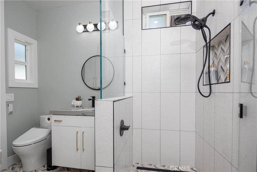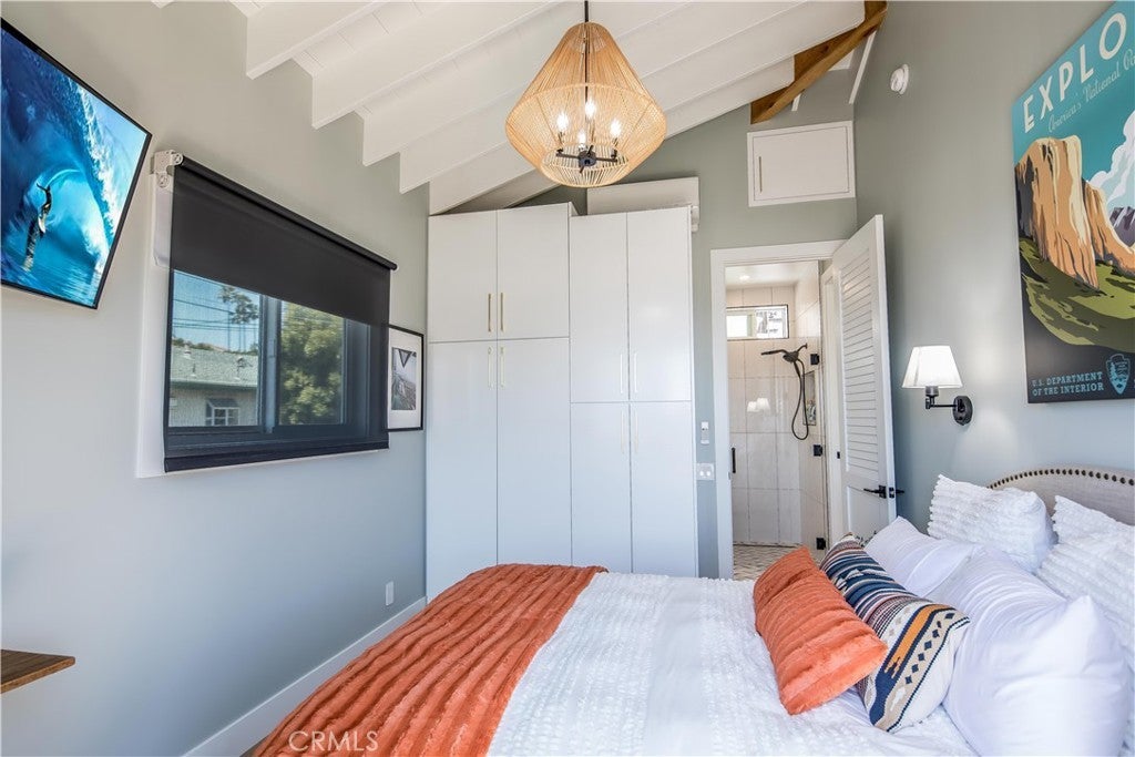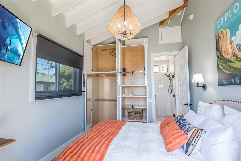 TINY HOUSE short-term (30+ days) lease is the wave of the future and this one is BEYOND special! This 2021 NEW CONSTRUCTION, DETACHED fully furnished ADU (guest house) offers the very best in luxury coupled with a 600 sq. ft. OCEAN VIEW deck! This single level home WOW"s you with its 14 foot beamed ceilings, wide-plank white oak floors, high gloss lacquered Italian cabinets with gold hardware, Bertazzoni appliances, beautiful quartzite counters, coffee station, luxurious, spa-like bath with tons of storage, Toto toilet with a bidet, stunning tile and separate full-size washer/dryer, tall ceilings abound making this home feel MUCH larger than it really is. The bedroom offers more of the same with an added custom closet offering tons of shelving and 4 separate hanging shelves, a pop-up desk, an ORGANIC "Avocado brand" MATTRESS with organic bamboo sheets, overhead reading lights, a bed with additional storage drawers underneath and a 4 drawer dresser. The electronic screens and black-out shades offer the best nights sleep. The playful interior has a Boho-chic style with a travel twist with electronic shades to added convenience. There are puzzles, games and wi-fi. TV's in the living room and bedroom, a custom super cozy sleeper sofa with a 5" memory foam mattress and a bit of whimsy to make it warm and cozy. Outside are 2 heaters and custom lighting with a fire-pit and Trex-deck. A brand new Weber BBQ with all of the tools to make this a perfect home away from home...even for a short while. Who will be the first to occupy this ONE-OF-A-KIND property?