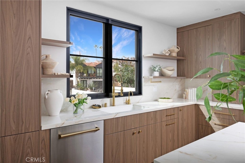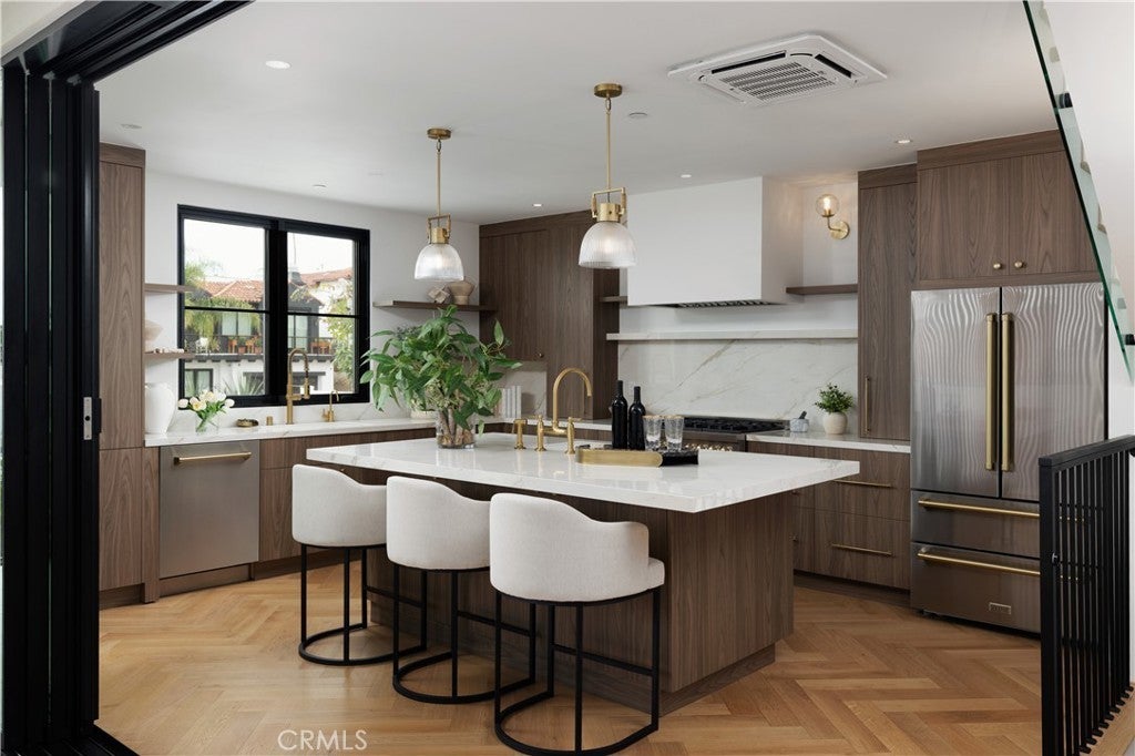 Welcome to 33852 Silver Lantern, a pristine, newer build ocean and sunset view home nestled in the heart of Dana Point's Lantern District. Enjoy watching the sweeping white water ocean view's from the deck and ocean views from the family room, this residence is an idyllic haven for families, investors, and young professionals alike. Spread over a generous 2,351 sq. ft. of refined interior space, this timeless European Modern-designed home boasts 3 well-appointed bedrooms and 3 luxurious designed bathrooms, ensuring ample privacy and comfort. The property's allure is further enhanced by 1,905 sq. ft. of exterior living areas, including a spacious 750 sq. ft. front deck, a 435 sq. ft. balcony off the kitchen for alfresco dining, and a breathtaking 700 sq. ft. rooftop deck that offers a sweeping ocean view backdrop. The home's interior is a symphony of organic elegance and modern sophistication, featuring Calacatta Oro marble countertops, custom walnut built-ins, and white oak wood flooring with intricate herringbone detail throughout. A show-stopping book-matched fireplace acts as a central focal point, while the finest Kohler brass and Signature Hardware fixtures, along with Top Knobs brass hardware, add a touch of opulence to every corner. Heated floors in the primary bathroom and High end Sonance invisible speakers through this home. Practicality is not forgotten, with a whole-house filtered water system, high end stainless steel appliances, and an LG front-load washer and dryer located in a separate laundry room catering to your every need. The property also includes a oversized 2-car garage, additional driveway parking, and an electric car charger, a coveted convenience in the Lantern District. Indulge in the pinnacle of luxury coastal living at 33852 Silver Lantern, where every detail has been carefully crafted and designed for those with discerning taste and a desire for the ultimate lifestyle all within Walking distance to local restaurants, downtown events and the coming soon revitalized Dana Point harbor.