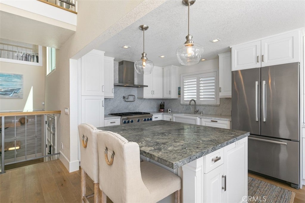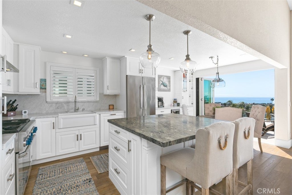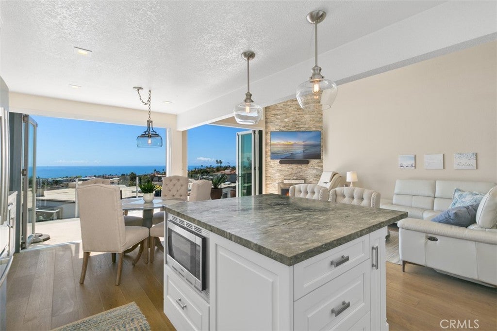 Available starting December 1, 2025, this absolutely beautiful furnished Dana Point home is offered for flexible stays from 1 to 6 months (minimum 30 days). With 3 bedrooms, 3 full bathrooms, and over 1,800 square feet of thoughtfully designed space, this multi-level retreat offers incredible panoramic coastline and city views. Step inside to soaring vaulted ceilings and an open floor plan that flows seamlessly into the expansive living area. Dual sets of La Cantina doors open onto one of four spacious decks, setting the stage for breathtaking sunrises. The gourmet kitchen features marble countertops, a stylish backsplash, and a center island with extra storage, perfect for cooking and entertaining. The home’s multi-level layout naturally separates the bedrooms, providing privacy and flexibility for guests. The primary suite offers high ceilings, a walk-in closet, walk-in shower, and a private deck, while the lower level includes two additional bedrooms, a full bathroom, and another spacious deck. With four decks to choose from, you’ll have ample outdoor space to relax or entertain. Fully furnished and equipped for comfort, this home is ready for a short-term stay that feels like a true escape. Located just minutes from Strands Beach, Dana Point Harbor, downtown shops, and local dining, this property is the perfect blend of convenience, luxury, and coastal charm.