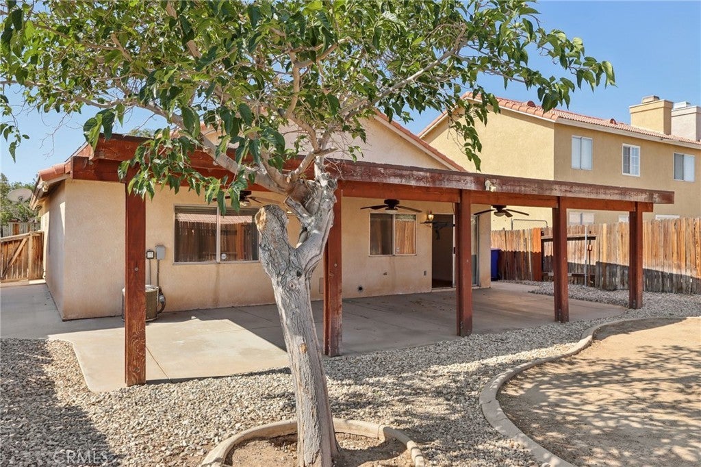 Welcome to this charming 3 bedroom, 2 bathroom home located in the desirable Foxfire Ranch community of Victorville. Offering 1,104 sq ft of comfortable living space, this home is clean, well maintained, and truly move-in ready. Step inside to find a cozy fireplace in the living room and an indoor laundry room for added convenience. The kitchen features elegant granite countertops and Spanish tile flooring, combining style with function. The exterior is equally inviting with beautifully landscaped front and back yards. Enjoy High Desert evenings or weekend gatherings under the large covered patio, complete with three ceiling fans and a outdoor TV Mount, perfect for an additional entertaining feature. A good-sized yard offers plenty of room for BBQs, play, or relaxation. Built in 1992, this home also includes a 2-car attached garage and is commuter-friendly with easy access to nearby shopping, parks, and schools, including Liberty Elementary and the highly sought-after Discovery School of the Arts. Don’t miss this wonderful opportunity to own a move-in ready home in one of Victorville’s well-known neighborhoods!