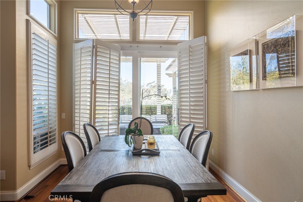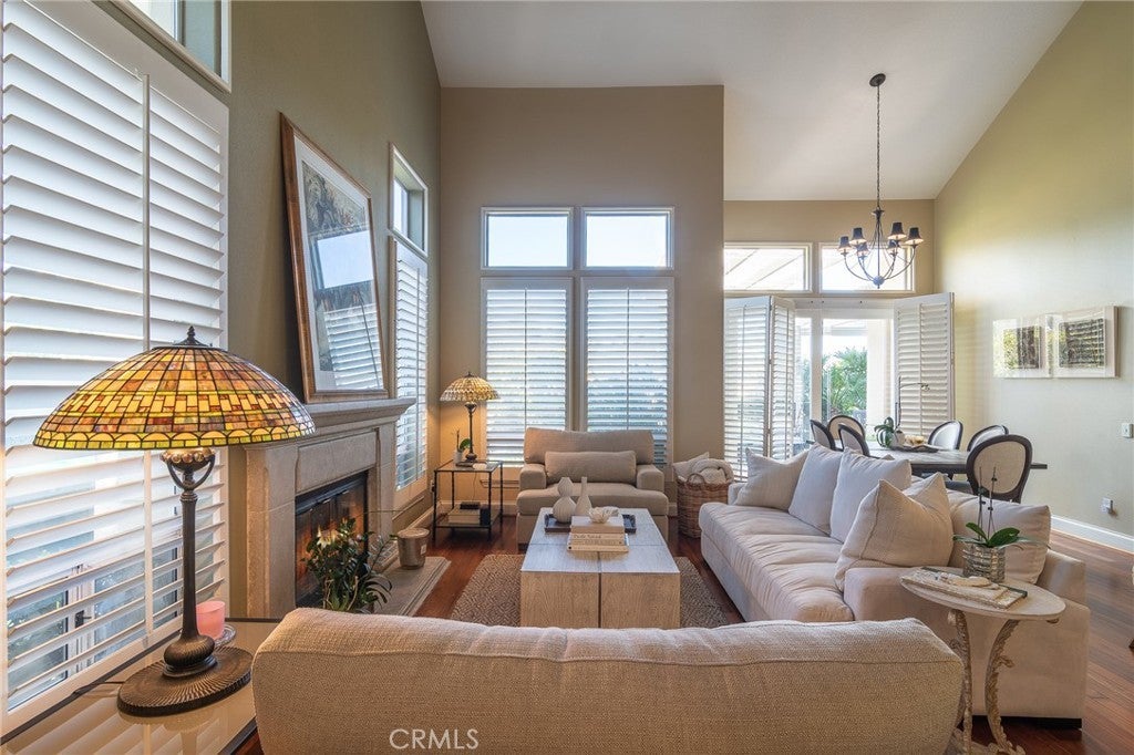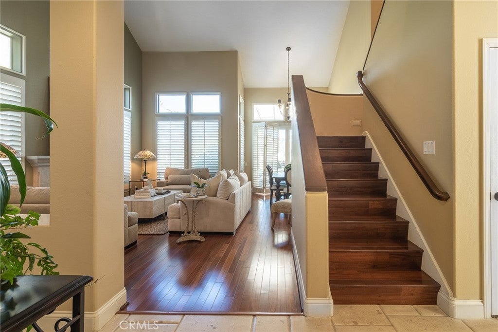 You won't want to miss this beautifully appointed executive home with gorgeous views! Located in the gated community of Siena, attention to detail is obvious throughout this beauty. Rich hardwood and fossil stone flooring flow throughout most of the living areas. The kitchen features beautiful cabinetry, granite counters, and top-of-the-line appliances, including Subzero refrigerator/freezer. A breakfast nook looks out to a private courtyard with fountain. Huge windows and cathedral ceilings flood the home in natural light. The large primary suite features a fireplace and French slider that leads out to a balcony with adjoining bath featuring a spa tub, beautiful marble shower and double sink vanity. Two additional spacious bedrooms share a jack-n-jill bath. Other features include plantation shutters throughout, ceiling fans in all rooms and updated fixtures throughout. The home was repiped with Pex plumbing. Windows on second floor replaced in 2022 with Andersen Windows. A spacious backyard is a tropical garden with mature but well manicured foliage including a Meyer lemon tree, artificial turf and stone patio, a bubbling fountain and panoramic views of the surrounding hills. Enjoy numerous amenities including the Siena pool and spa and tennis courts, as well as the Marina Hills recreation center with pool, tennis, pickle ball, bocce ball, sport fields, clubhouse and play area.