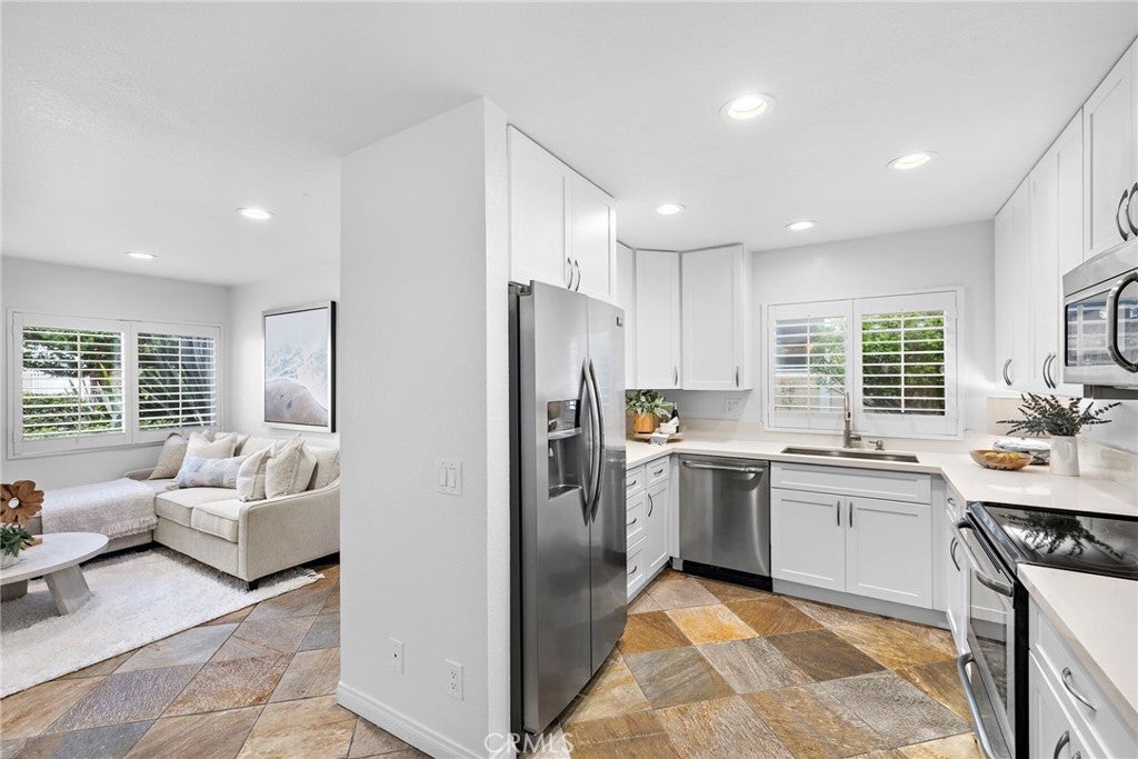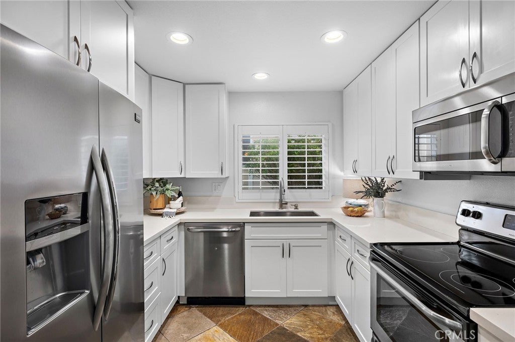 Delightful 2BR/2BA condo in Niguel Beach Terrace, directly across from Strands Beach. This ground-level home embraces indoor/outdoor living with a private patio that now features an outdoor kitchenette (converted from the former storage area)—ideal for entertaining. The unit was totally remodeled with shaker cabinet doors, soft-close drawers, upgraded fixtures, and slate flooring throughout, creating a stylish and durable coastal retreat. Nestled in the coveted coastal enclave of Niguel Beach Terrace, the community’s lushly landscaped grounds and resort-style amenities—including a pool, two spas, and electric car charging stations—set the scene for relaxed beach living. Leave the car at home: Dana Point Harbor, the Lantern District, dining, shopping, and oceanfront walking trails are all an easy stroll away. Whether you’re seeking a primary residence, weekend escape, or investment, this condo delivers effortless SoCal coastal living in a premier location.