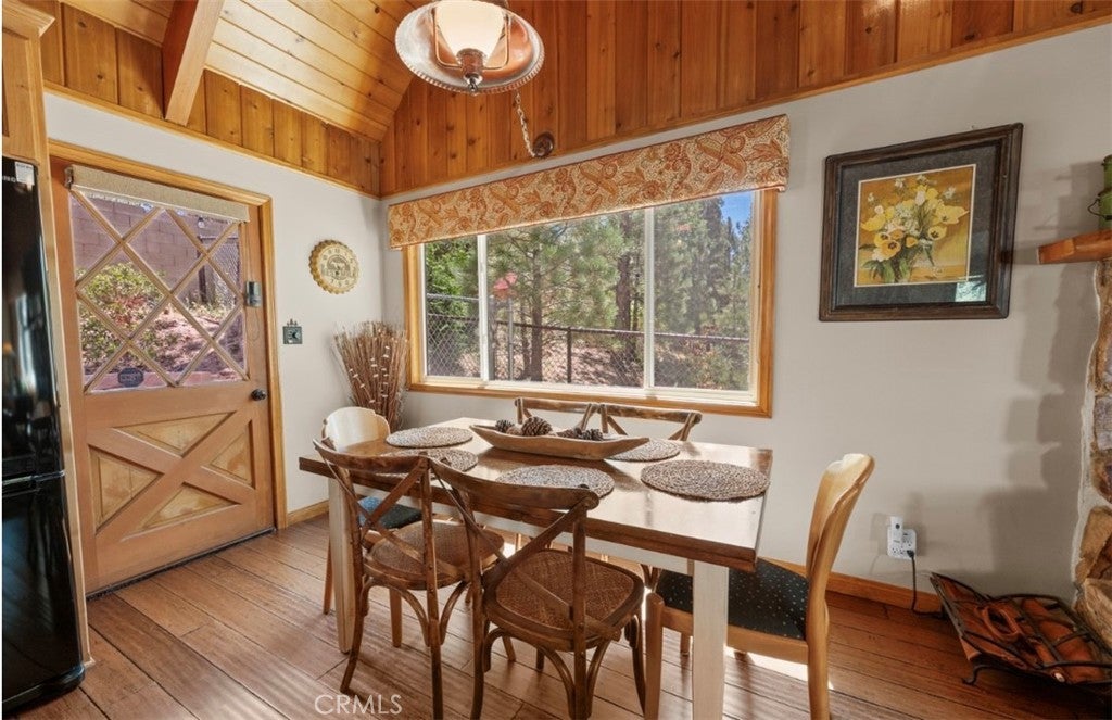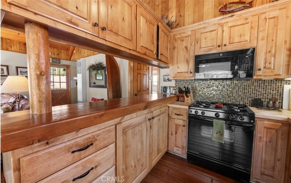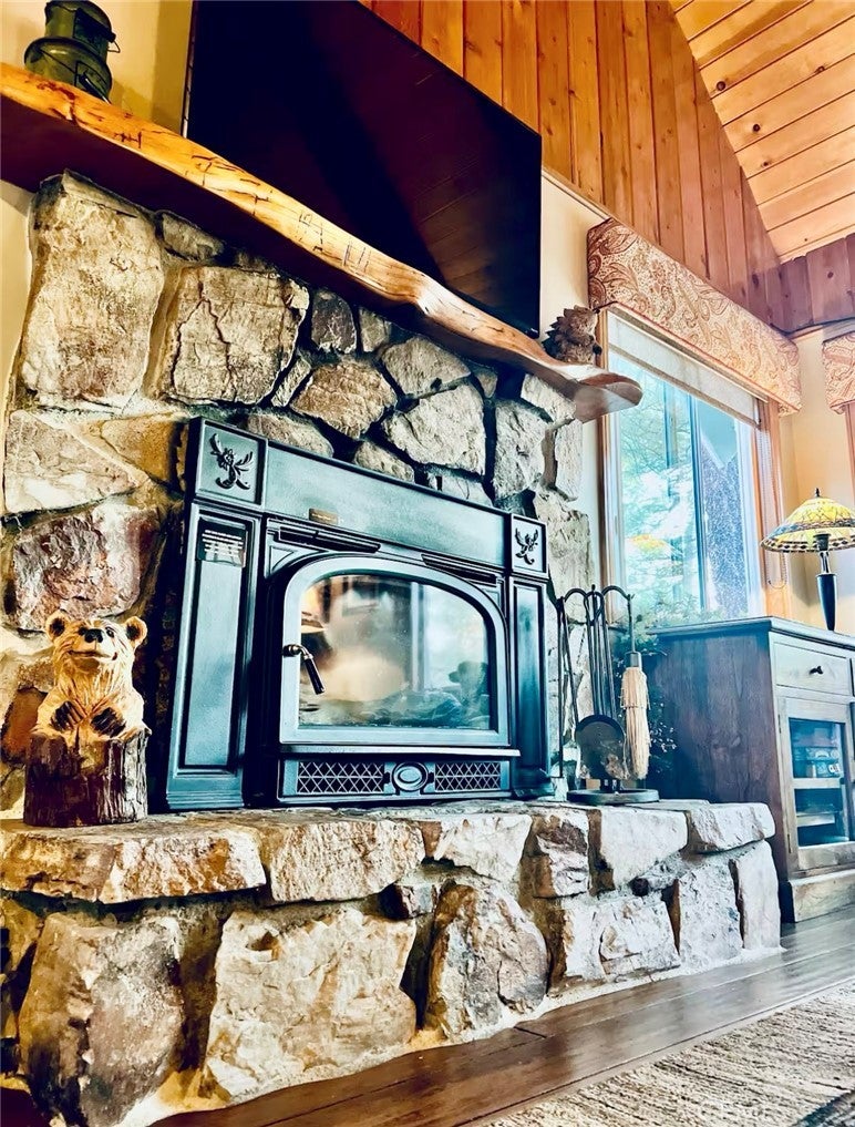 Charming Cabin in a Prime Location! Located near dining, shopping, and year-round activities, this inviting cabin blends rustic charm with thoughtful updates. Inside, you’ll find a warm neutral color palette, dual-pane windows, wood trim, and blinds. The kitchen features beautiful hickory cabinets with self-closing drawers, black appliances, butcher block counters, mosaic tile backsplash, farmhouse sink, and a dining area. The living room boasts vaulted open-beam tongue-and-groove ceilings, a stone fireplace with efficient wood-burning insert, and durable bamboo flooring—perfect for snowy days. The bathroom is beautifully updated with ceramic tile, a stone countertop, and set up for heated floors. Two main-level bedrooms showcase tongue-and-groove ceilings, mirrored closets, individual wall heaters, and carpet. The loft-style third bedroom offers built-in storage, large windows, and a ceiling fan. The separate garage includes a washer & dryer area and plenty of storage. Outside, the large lot provides ample parking, mature trees, a fenced backyard, and a spa for relaxing after a day of mountain adventures. This cabin is the perfect blend of mountain character and modern comfort—ready for your weekend getaway or full-time retreat!