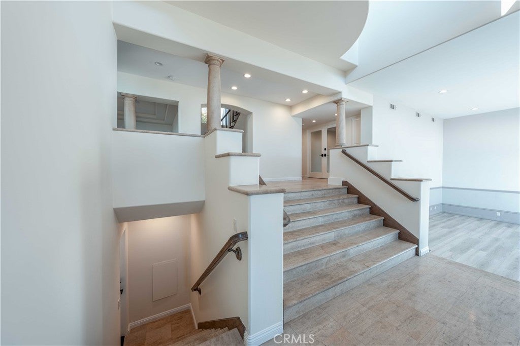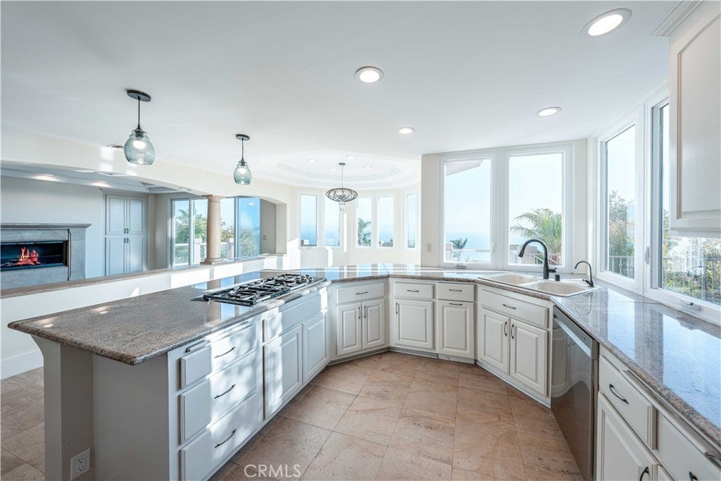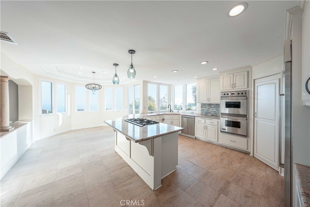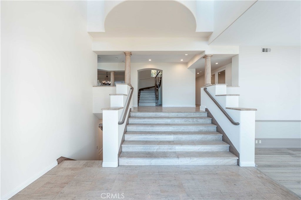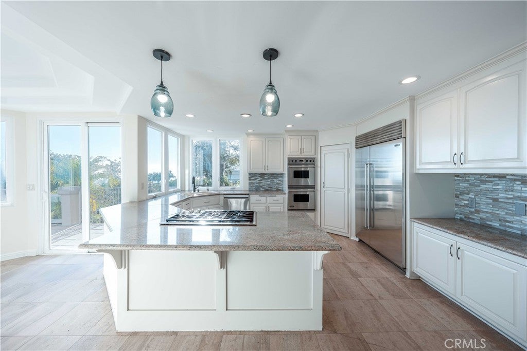 Available for long-term lease, this stunning 5-bedroom, 5-bathroom home offers breathtaking panoramic views of the Pacific Ocean, Catalina Island, and Trump National Golf Course. Located in a quiet Rancho Palos Verdes cul-de-sac, the home features a spacious and elegant layout with high-end finishes throughout. Recent updates include fresh interior and exterior paint, luxury vinyl plank flooring, updated fixtures, and custom design touches that add warmth and character. The main level offers a grand formal living room, a dedicated office or bonus room, an open-concept family room with built-in stereo speakers, a formal dining room, and a beautifully appointed kitchen with stainless steel appliances and a walk-in pantry. One bedroom and a powder room are located on the main floor, ideal for guests or extended family. Upstairs, the primary suite includes a cozy fireplace, private balcony with unobstructed ocean views, a spa-like bathroom with oversized shower and skylight, and a generous walk-in closet. Three additional bedrooms and two bathrooms complete the upper level. Enjoy incredible sunsets and coastal breezes from the balcony, host gatherings in the large side yard, or relax in the private backyard with a basketball court and no rear neighbors. Located within the award-winning Palos Verdes Peninsula Unified School District, and just minutes from parks, trails, shopping, and freeway access, this is coastal living at its finest, ready for you to call home.