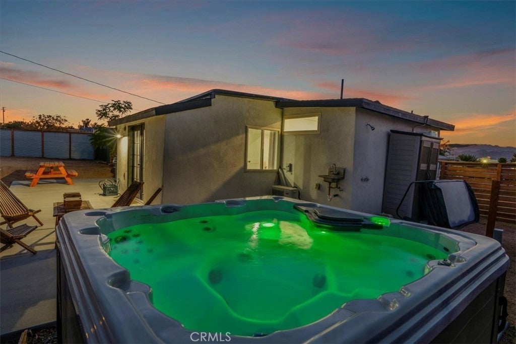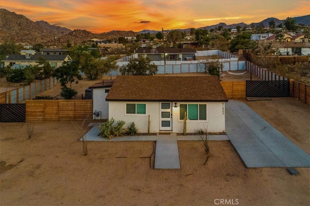 This one is really a must see with a great price! This newly renovated 2-bedroom, 1-bathroom home blends modern upgrades with desert charm, this one is five minutes from the Park Entrance, one minute from downtown, ten minutes away from 29 Palms, and the vast desert area gives this property a surreal feeling. The property has been a successful STR for years, and the upgrades that you see have been completed over the last two years. The privacy fence around the property gives a secluded feeling while enjoying the night sky and spa in the backyard! The open-concept living area is filled with natural light, while the updated kitchen features quartz countertops and new appliances. Both bedrooms are spacious with large windows, and the remodeled bathroom boasts contemporary finishes. On the street that the property cities is a perfect position to get great views of the whole landscape and still have the closeness of city life! Come check this one out!