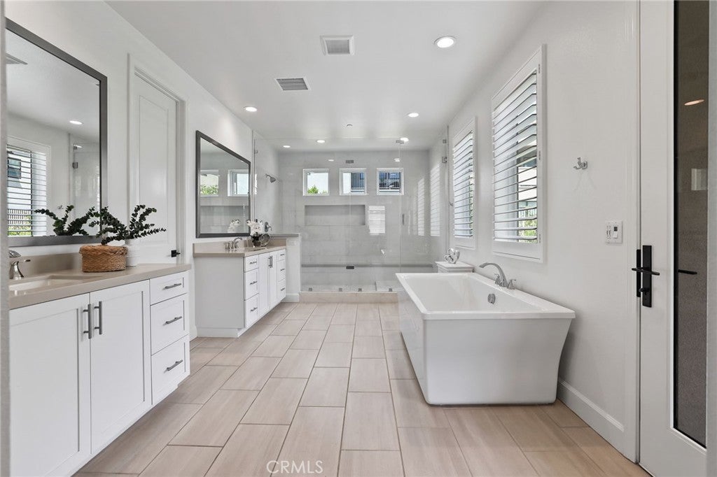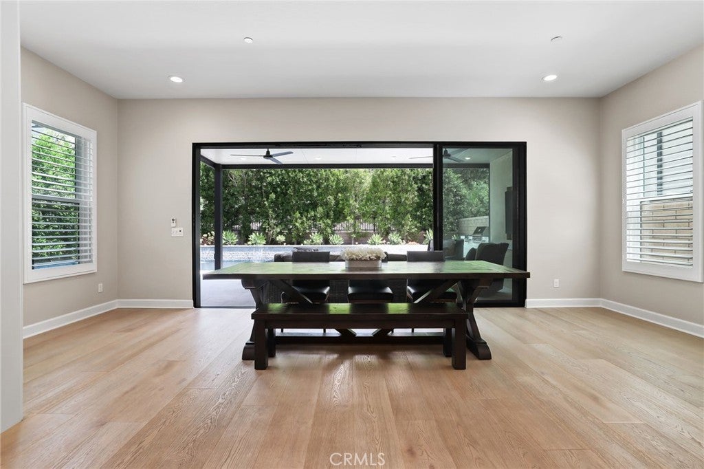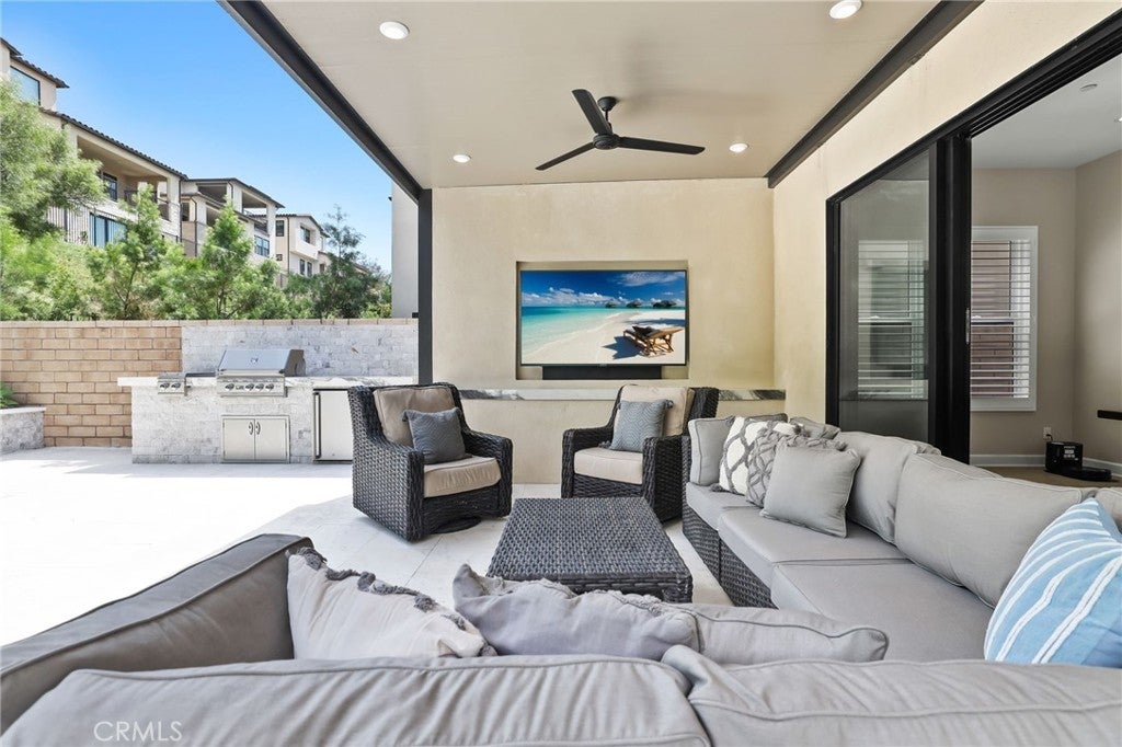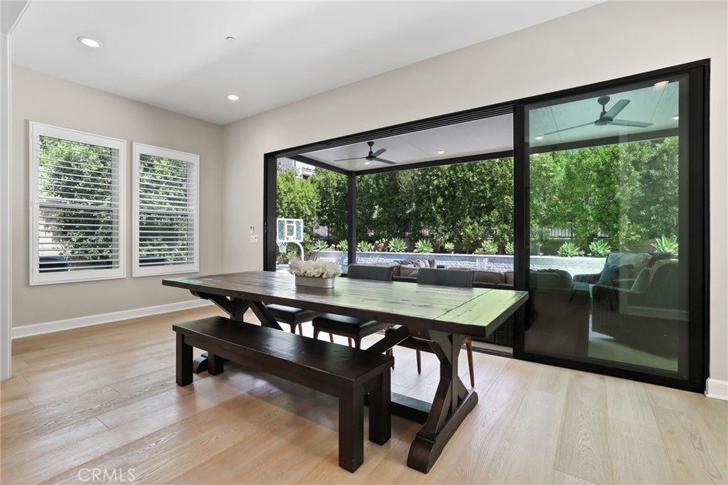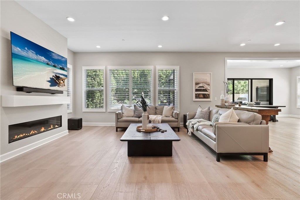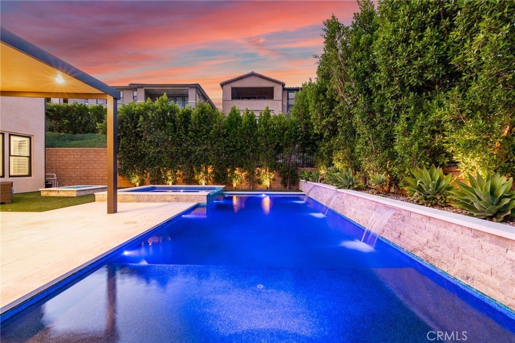 Incredible, One-Of-A-Kind Resort Style Pool Home, Fully Upgraded, Premium Lot Location, FULLY PAID FOR SOLAR w/8.880kw system! Sophistication and Elegance are the Hallmarks of this Impeccably Designed Home featuring Stunning Upgrades in every direction. Upon entry the Upgrades and On-Trend designs are immediately noticed with Stunning White Oak Harwood Floors that run through the entire home, Gorgeous Custom Feature Walls and Soaring Ceilings allowing for an abundance of Natural Light to flood the home. The Spacious Great Room features a Custom Fireplace and Modern Mantle, Plantation Shutters, Designer Interior Paint, and Sliding Panel Doors that open to the Award Winning Backyard Oasis. The Stunning Chef’s Kitchen leaves nothing to the imagination with Stainless Steel Appliances including Built-In Stainless Steel Refrigerator, Custom Designer RH Pendant Lighting, Dual Tone Upgraded Quartz Countertops, Custom Artisanal Tile Backsplash, Beautiful Upgraded White Cabinets that stretch to the ceiling, Spacious Walk-in Pantry and Massive Center Island w/Bar Seating. Continue Outside and Prepare to be blown away by THE ENTERTAINERS DREAM BACKYARD. The Covered California Room offers the perfect Transition to the Backyard featuring 2 Ceiling Fans, Entertainment Nook with TV & Beautiful Porcelain Slab Mantle. Just beyond the California room sits the Stunning Pool and Jacuzzi w/ Pentair IntelliCenter Pool Spa Automation, Exquisitely Designed w/Pebble Tech Sheen, Limestone Decking, Waterfalls & Custom Pool Lighting. The Outdoor Upgrades also Include a Modern Fire Pit, Tropical Mature Lush Landscape, Custom Hardscape, Artificial Turf, and Spectacular Built-In Bar w/ Custom Artisanal Stone Design & Porcelain Slab. Vacation every weekend in your own backyard! The Downstairs Spacious Bedroom and Full Bathroom round out the first floor. Upstairs you will find the Highly Desirable Multi-Purpose Loft/Media Room, The Convenient Upstairs Laundry and Four additional Bedrooms including the Spacious Primary Retreat. Start Your New Wellness routine in the Primary Suite Retreat with Lush Backyard Views from your Spacious Outdoor Enclave. The Primary Bath Stuns w/ upgraded Cabinets and Counter Tops, Soaking Tub, Walk-In Shower, Designer Tile & Spacious Walk-In Closet...Additional Luxury Upgrades Include Plantation Shutters, Front Yard Hardscape & Drought Tolerant Landscaping, Spacious 2 Car Garage w/ Storage & Epoxy Flooring & Extended Driveway.