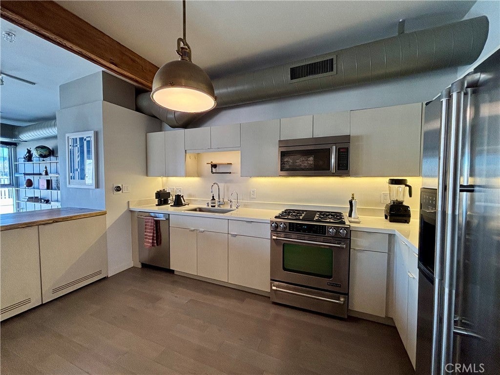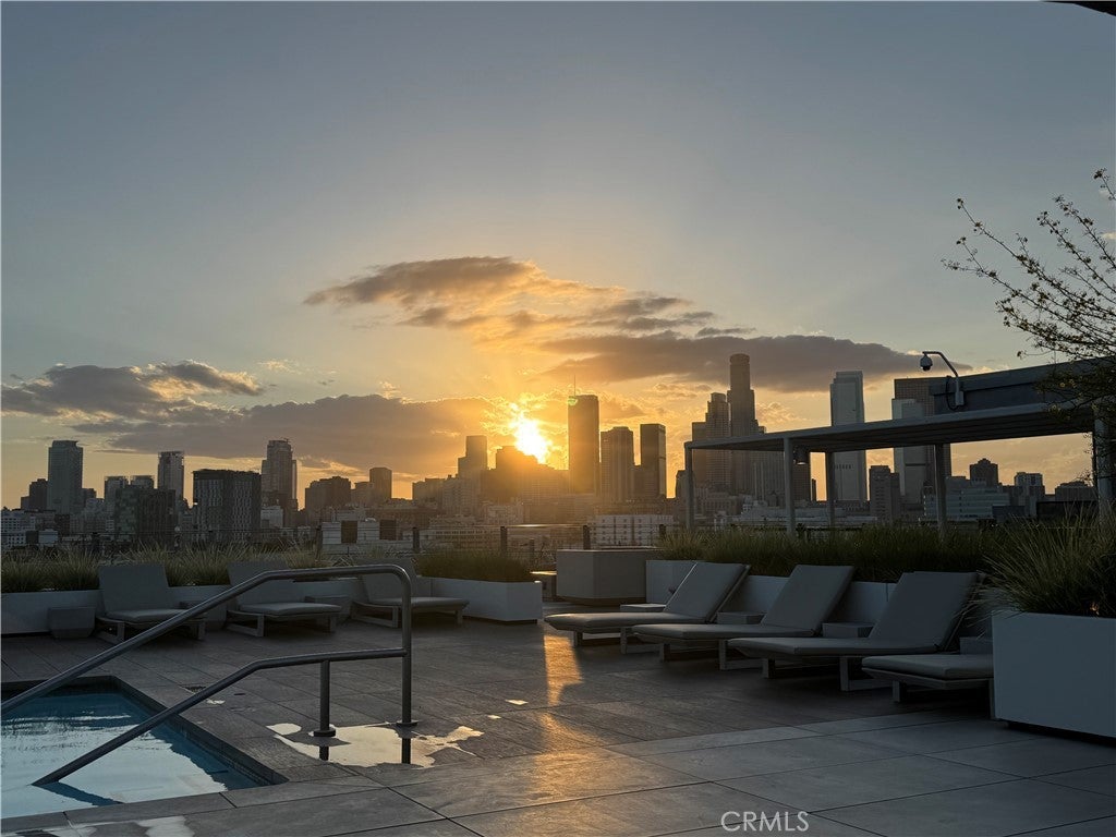 WORK/LIVE LOFT in DTLA Arts District. This light-filled corner unit penthouse makes it the perfect space for an artist to live and create. You will find Urban sophistication with a blend of industrial loft modernism while still maintaining warmth and comfort. Barker Block is the standard of style in the arts district. 1,710 square feet with 2 bedrooms, 2 full baths, exposed brick, steel beams, 10-foot ceilings, pull-out pantry, walk in closet and steam shower. You can choose to move in or use this as your business headquarters. The rooftop deck has cinematic city views and sunsets, a hot tub, pool, gym and barbecue. This pet-friendly building's has 24-hour security, private parking, and common area gardens with a fire pit. UNIT 401 has additional storage in building! Step outside to experience what TimeOut Magazine crowned the coolest neighborhood in LA, with some of the city’s best restaurants, cafes, breweries, and shops at your doorstep. The Arts District, is home to Girl & the Goat, Manuela, Bavel, Blue Bottle, Verve, SoHo Warehouse and more. There is access to the Metro, major freeways and the train station. This area of DTLA offers the perfect balance of vibrant city energy and neighborhood friendliness with dog parks and playgrounds.