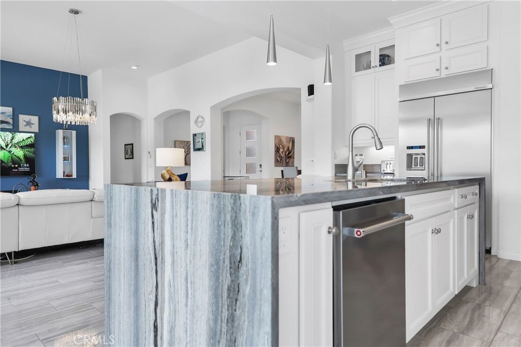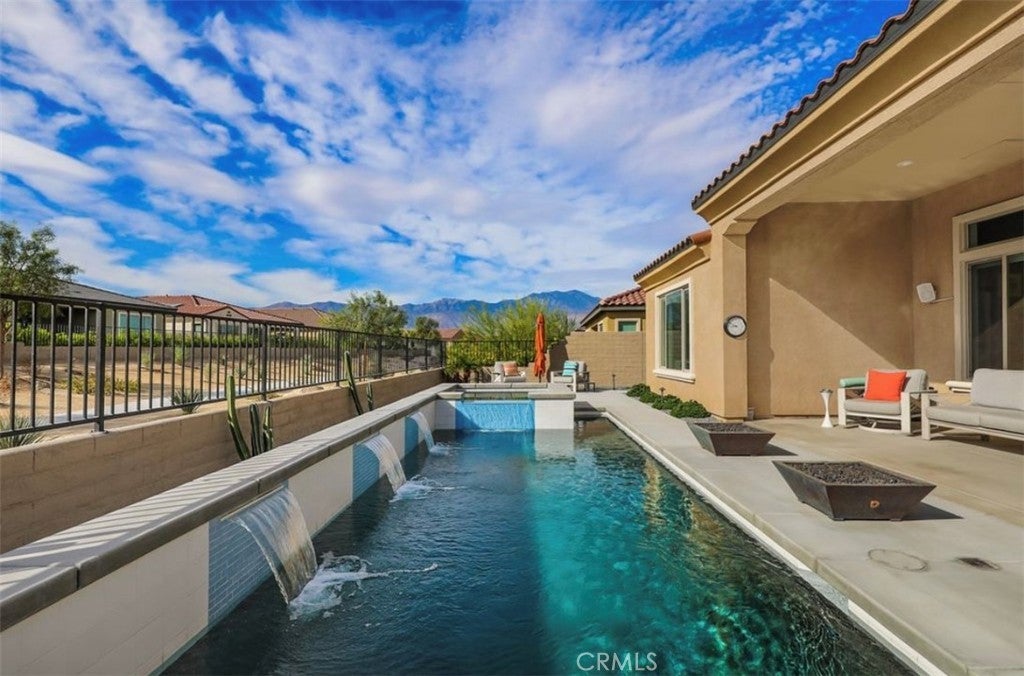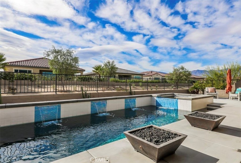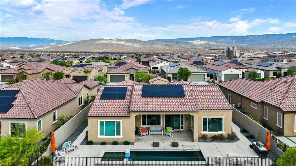 PRICE REDUCED! Welcome to this beautifully designed home situated in Rancho Mirage's Del Webb 55+ community which offers year-round resort style living. The home offers an open concept layout with vaulted ceilings, beautiful marble floors and counter. The kitchen is equipped with high-end Kitchen Aide Gourmet appliances, a generous pantry and an extra-large island. The tasteful upgrades make this home stand out from the rest. The living room looks out to the beautiful private pool with waterfalls and spa. The pool is surrounded by firepits, a large BBQ, blue tooth speakers and a covered patio perfect for quiet mornings or an evening of entertainment. This home has it all, comfort, style and functionality with a two-car garage plus a separate "golf cart" garage that can be used as a workshop or serve as storage for your holiday decorations and more. Avid golfers will appreciate the 4-minute drive to the Gary Player & Pete Dye Championship Golf Courses. In addition, the garage is equipped with 220 voltage outlets for EV hookup and leased Solar Panels which help immensely with the cost of electric bills. The home is move in ready and includes all appliances. There is a 2.75% VA Assumable loan available for qualified buyers on the original mortgage balance. You do NOT need to be a veteran to qualify!! Seller is Motivated. Don't miss out. Bring Your Offer.