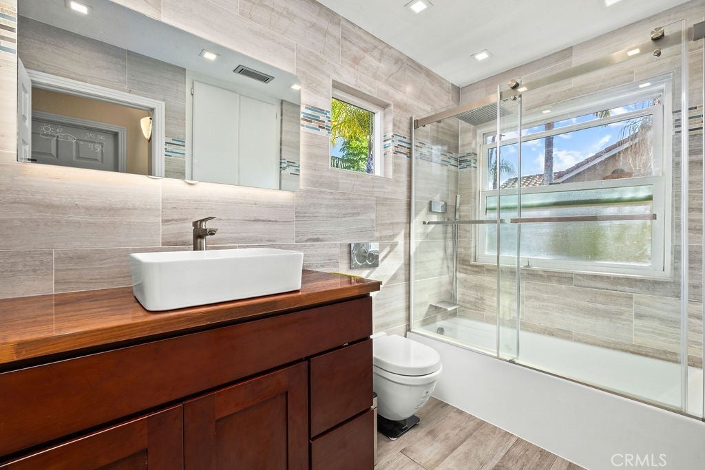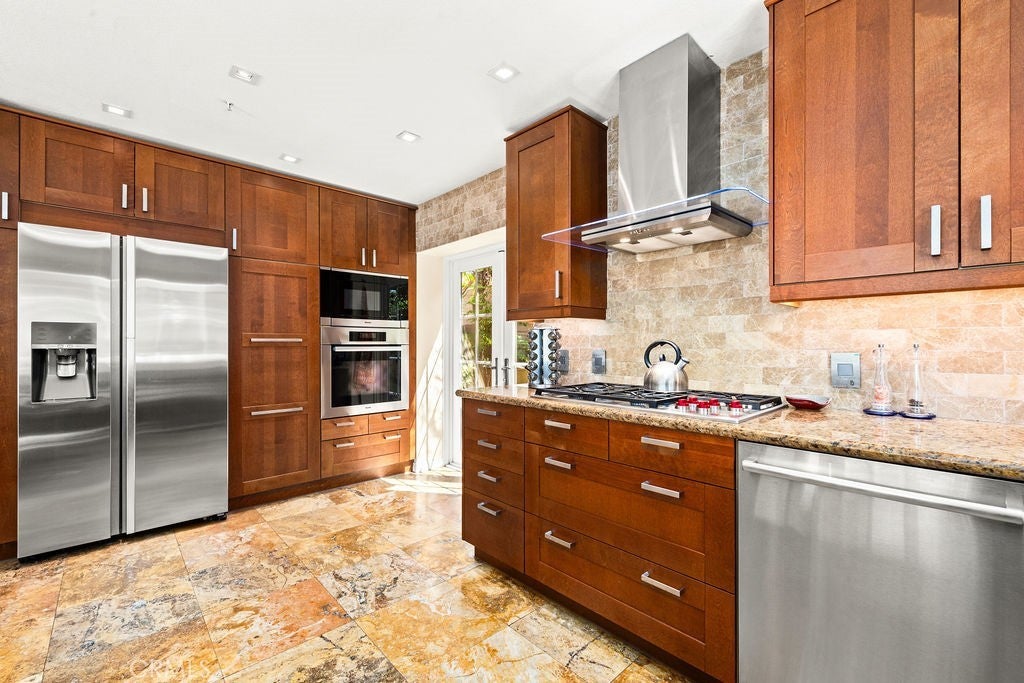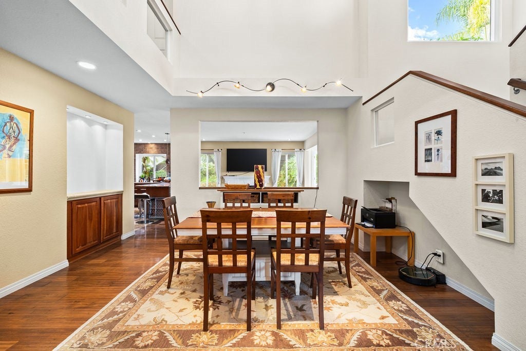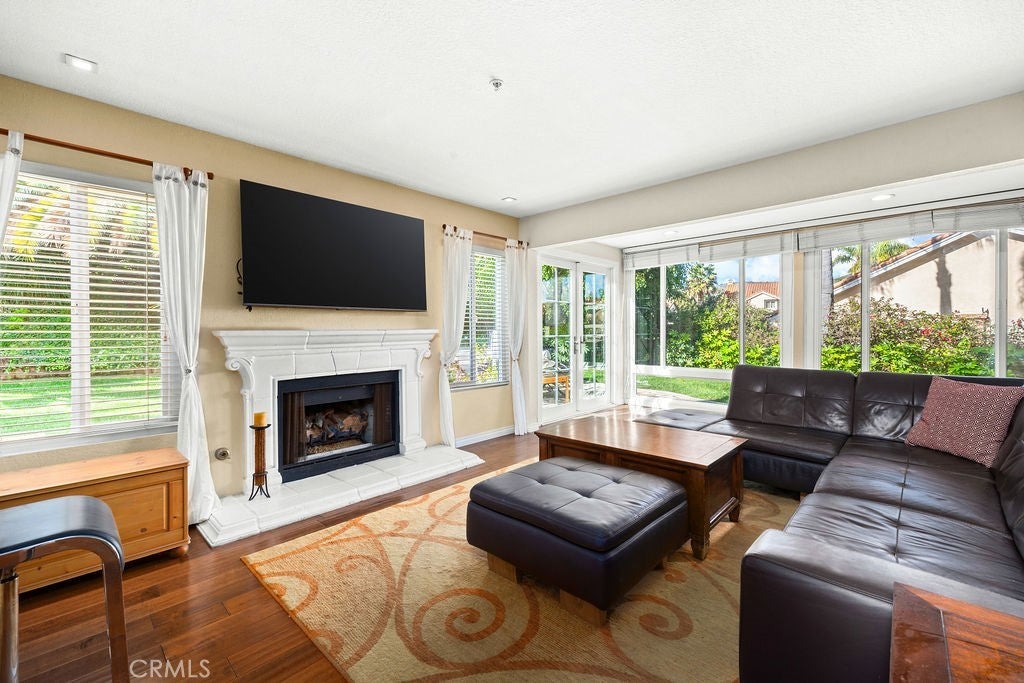 Gorgeous Forster Ranch home set on an expansive, oversized private lot. This spacious residence offers 4 bedrooms and 3 full baths, including a convenient main floor bedroom and bath. The remodeled kitchen features new cabinetry, stainless steel appliances, a wine refrigerator, and granite countertops. The kitchen opens seamlessly to the warm and inviting family room with a cozy fireplace. A formal living room with soaring vaulted ceilings and an open, light filled dining room create an ideal space for entertaining. Both guest baths have been beautifully updated, and the primary suite includes an ensuite bath and an oversized private balcony showcasing views of rolling hills and city lights. Additional highlights include hardwood floors, newer double paned windows and French doors leading to the backyard. The backyard is a true retreat, perfect for gatherings, with a beautiful flagstone patio, mature trees and exceptional privacy. Ideally located on a highly desirable street close to award-winning schools, shopping, neighborhood parks, San Clemente beaches and convenient freeway access.