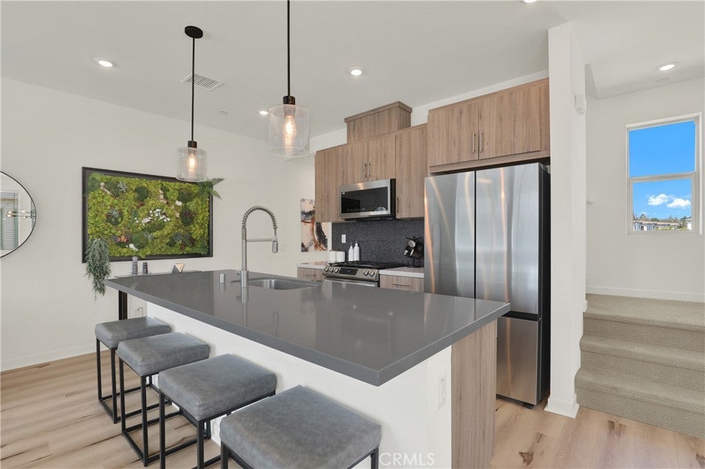 *** Special Financing Available for this unit! Includes 20,000 Credit and no PMI for financing over 80%***. Step into modern sophistication at this newly built 2023 end-unit townhome in the exclusive Hudson gated community of Placentia. With 3 spacious bedrooms, 2.5 bathrooms, and over 1,360 square feet of thoughtfully designed living space, The open-concept layout showcases warm wood flooring, high-end finishes, and $35,000 in upgrades over the base builder model. Additionally energy efficiency is focal point with paid-off solar, a tankless water heater, and smart-home features designed for comfort and cost savings. An oversized two-car garage provides ample storage, while the corner-lot south east facing location ensures abundant natural morning light. The gourmet kitchen and expansive living areas are ideal for both entertaining and quiet nights in. Upstairs, the primary suite offers a bath and a generous walk-in closet, delivering a private retreat you’ll look forward to at the end of every day. The Hudson community is designed with lifestyle in mind, featuring beautifully landscaped grounds and upcoming amenities including a recreation area, playground, basketball court, and dog park. With low HOA fees and a prime location near top schools, shopping, and dining, this property offers both value and distinction.