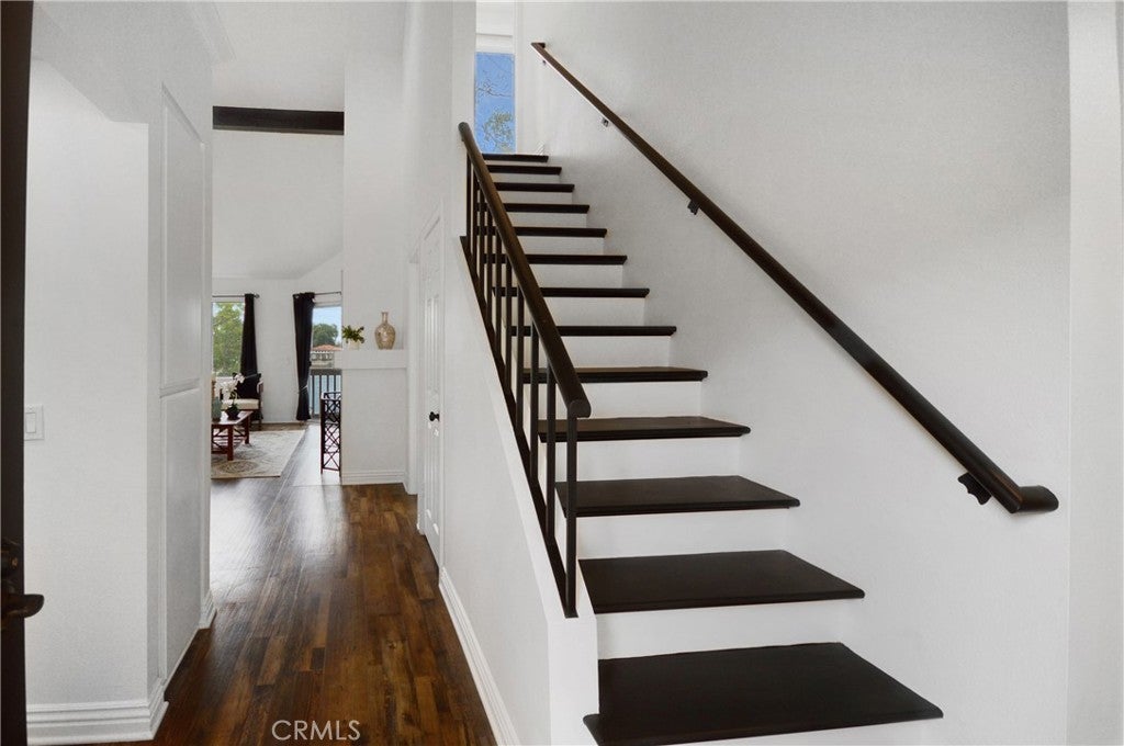Incredible new price! Beautiful lakefront condo offering the best location and views in all of Brisa del Lago! This light-filled and spacious two-bedroom home is move-in ready, featuring soaring ceilings and stunning new laminate wood flooring throughout. The inviting living room showcases a newly tiled fireplace and modern chandelier, while the remodeled kitchen boasts sleek quartz countertops with new backsplash, newer cabinetry, and new LG stainless steel appliances, including a new refrigerator. The open layout flows seamlessly into the dining and living areas, making it ideal for entertaining. Enjoy panoramic lake views and front-row seats to the RSM fireworks from the private balcony. The spacious primary suite offers direct balcony access, dual wardrobe closets, new LED lighting, and a luxurious remodeled en-suite bathroom with new dual sinks, new quartz counters, custom cabinetry, and a new walk-in shower with frameless glass doors and designer tile. The upstairs bedroom is bright and versatile with its own balcony, perfect as a guest room or home office. Additional upgrades include a newer A/C and furnace, newer water heater, newer garage door and opener, interior doors, baseboards, blinds, new switches. Convenient in-unit laundry with washer and dryer included. Parking is easy with a detached one-car garage plus a covered carport just steps from your door. As a resident of Rancho Santa Margarita, you’ll enjoy access to the Lago RSM Beach Club, scenic trails, parks, tennis and pickleball courts, multiple pools, and a variety of dining and shopping options—all within minutes of top-rated schools and the 241 Toll Road. This is truly a rare opportunity—don’t miss it!