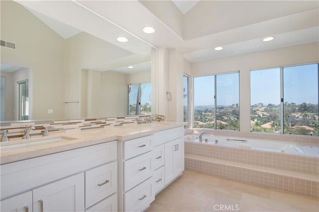 Gorgeous View Home on a single-loaded cul-de-sac street in the coveted coastal community of Marina Hills. This Spacious Home has 4 ensuite bedrooms, each with its own bath, plus an expansive Bonus Room! Stunning ceramic wood plank flooring throughout the first level. Soaring two story ceilings, a handsome fireplace and windows galore in the Living Room with a walk behind bar. Downstairs are a bedroom and bath and a separate Powder Room for guests. There is a formal Dining Room and the Family Room is open to the Kitchen and features a 2nd fireplace. The island Kitchen is updated with quartz countertops, subway tile backsplash, BOSCH appliances, Stainless Steel Built-in Fridge, white Shaker cabinetry and a sunny Nook! The Master Suite is enhanced by a 3rd fireplace, a generous walk-in closet and a luxurious bath! All the bathrooms have been upgraded quartz countertops, and designer faucets. Stainmaster carpet in the bedrooms, the bonus room, and on the staircase. A laundry room with convenient utility sink provides access to the 3 car garage with both remote and keypad access. The serene backyard offers privacy and panoramic views that fill this Home with light! Enjoy the fabulous amenities of the Marina Hills Community Center which includes a clubhouse, Olympic size pool, tennis courts, parks, and more! This is an exceptional property in a premier community!