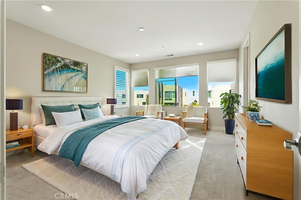 Experience modern luxury living in the heart of Irvine’s sought-after Great Park community of Obsidian at Parasol Park. This contemporary, light-filled home offers 4 spacious bedrooms and 4 bathrooms including one bedroom/bathroom on the first level, A highly desirable downstairs bedroom with a full en-suite bath is ideal for multigenerational living, a private guest retreat, or a home office with added convenience. . Appointed with luxury finishes. convenience. Upstairs, the gourmet kitchen is appointed with a Wolf 6 burner and griddle gas stove, Moen faucets, subzero refrigerator, which seamlessly connects to the expansive great room and a covered balcony, creating effortless indoor-outdoor living. Designer details include upgraded flooring, and a private elevator to enhance both comfort and style. The generous primary suite boasts two walk-in closets, offering ample storage and sophistication. Step outside your door to resort-inspired amenities including multiple sparkling pools, scenic parks, sports courts, dog park and much more and access to award-winning Irvine schools. This is Great Park living at its finest.