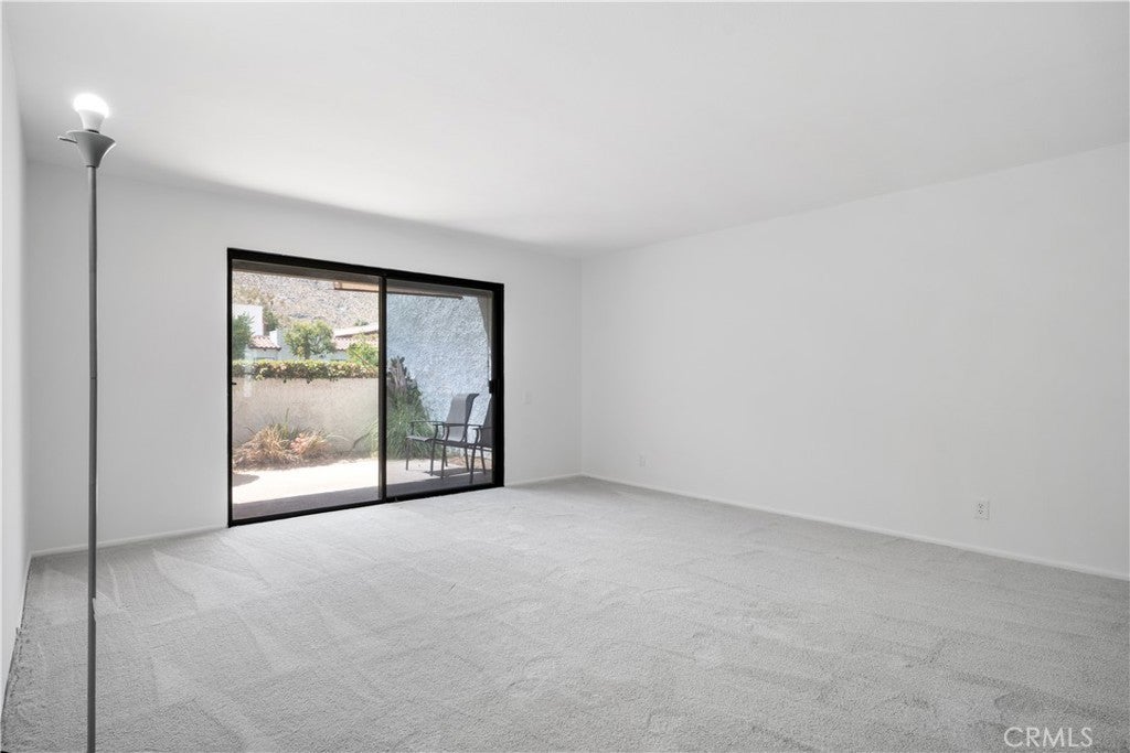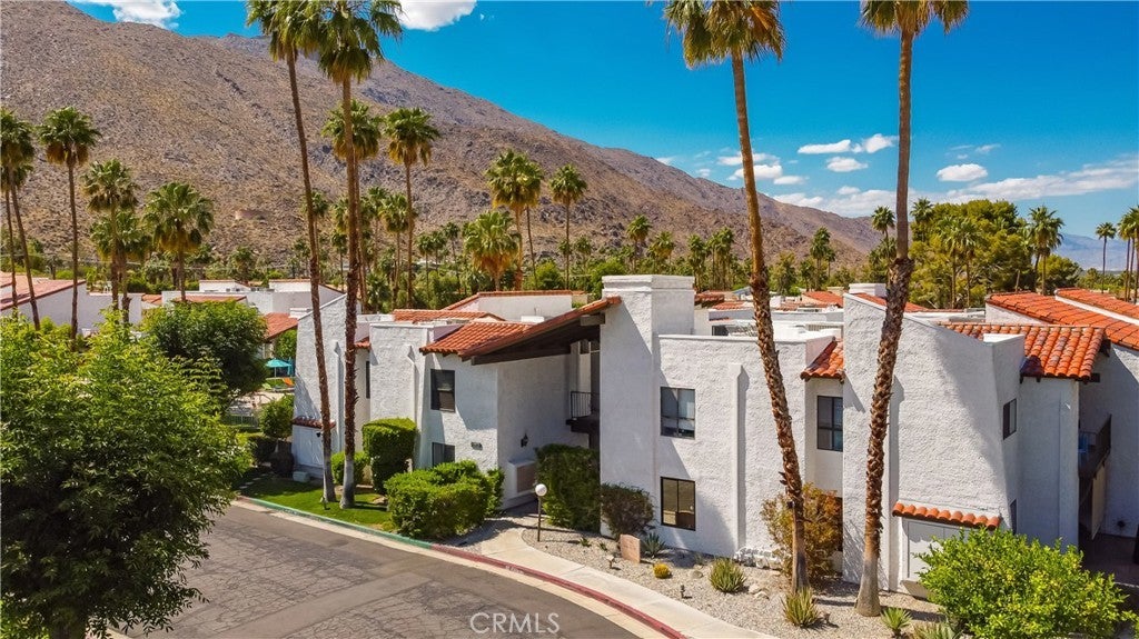 Welcome to resort-style living. This is a turnkey condominium in the heart of South Palm Springs in a quiet relaxing community with pools, spas, tennis courts and incredible weather, mountain views and serenity. Being an end unit, it has the benefit of one common wall as well as extra sun light. This turnkey condo has freash interior paint throughout. NEW CARPET, and flooring in the bathrooms, foyer. New ceiling fan, door handles and accessories, and more. Bedrooms have an abundance of closet space and ample storage. Both bedrooms offer their own full bathrooms, shower and shower/bath. NEW DUAL PANE, ENERGY STAR EMISSIVITY WINDOWS. The high end refrigerator is included. NEW DISHWASHER AND MICROWAVE. As you enter the foyer of this gem of a condo, you are drawn to the living room and the sliding door to the private backyard. Once you are in the backyard, you can experience a desert oasis with the breathtaking views of the mountains and open sky for the perfect balance of excitement and peaceful serenity of nature. There is a dedicated parking (carport) and extra storage as well as lots of visitor parking. This desirable complex is just minutes from shopping, downtown, and amazing golf courses, dining, biking, walking and the excitement the famous Palm Springs has to offer. This can be your stylish desert retreat. It is waiting for you to start living your dreams.