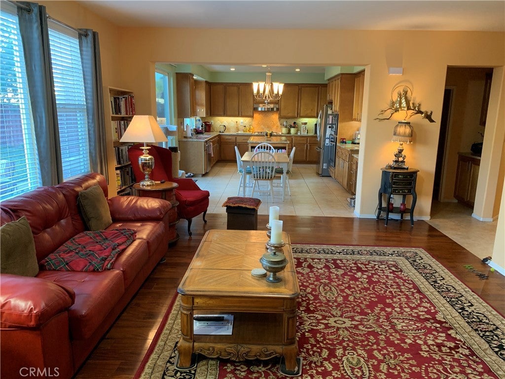 Move in ready gorgeous home in Murrieta with no HOA fees….walk thru a vine covered archway w/shrubbery to your front door into over 3000 square feet of well laid out living space with high vaulted ceilings, natural lighting throughout, starting with a library/sitting room and a dining room enhanced with custom paint throughout the house. Kitchen is graced with custom designer granite with custom travertine tile backsplash throughout kitchen and butler’s pantry, stainless steel appliances, Electrolux cook top with 5 gas burners, stove hood, Whirlpool oven, microwave and dishwasher, oversized stainless steel one piece sink with satin nickel goose neck faucet, stainless steel drawer pulls, walk-in pantry, center island, chandelier in eating area, family room warmed by wood burning fireplace, half bath w/vanity, custom Acacia hardwood flooring in family room, dining room and library/sitting room. Upstairs is a large loft area ideal for home office on one end and game room on the other end all overlooking main floor, w/ spacious master bedroom w/walk in-closet, large well-appointed bathroom, laundry room w/sink and storage cabinets, three other large bedrooms with two other full bathrooms, all four full bathrooms have 18” ceramic tiles, all five toilets are one piece toilets, new 75 gallon gas water heater, three car garage with insulated interior garage doors, back yard well landscaped w/ 3 olive trees, one lemon and one orange tree w/full automatic sprinklers for front and back yards. Close to 215 freeway, several hospitals and a full assortment of restaurants and shopping including Costco.